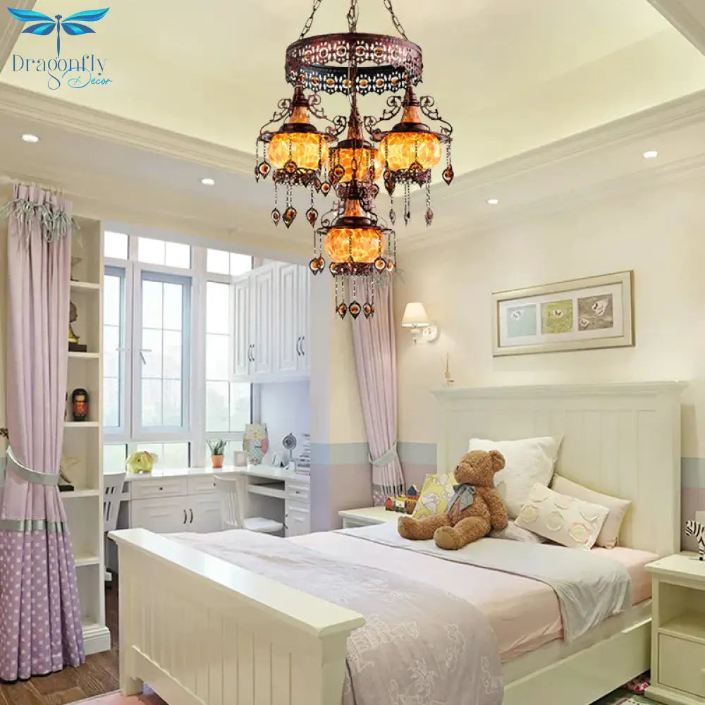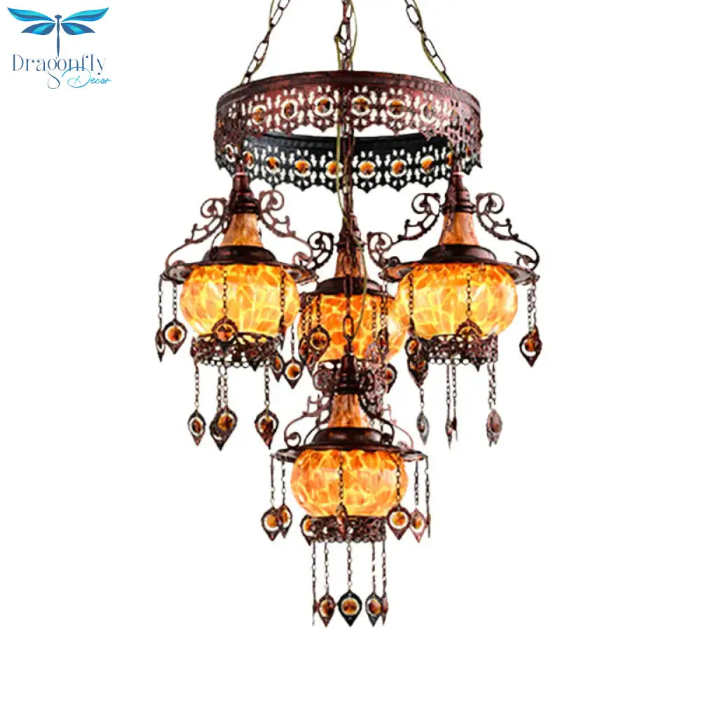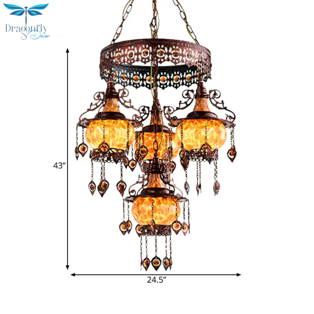4 Heads Stained Glass Chandelier Bohemia Orange Lantern Living Room Pendant Lighting