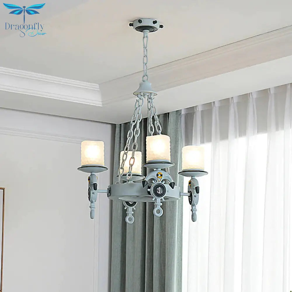 4 Lights Bedroom Pendant Lighting Nautical Blue/Black Chandelier Lamp