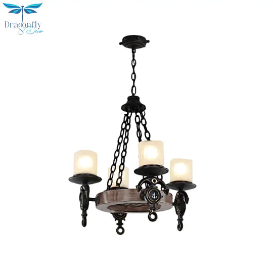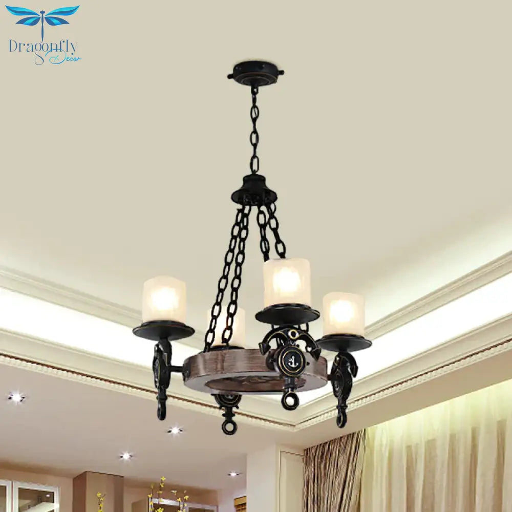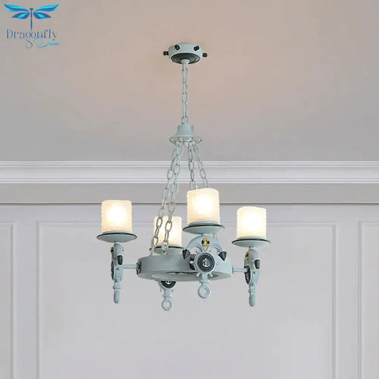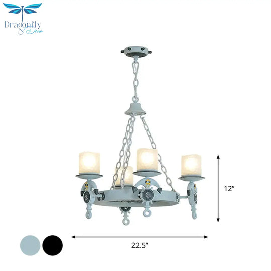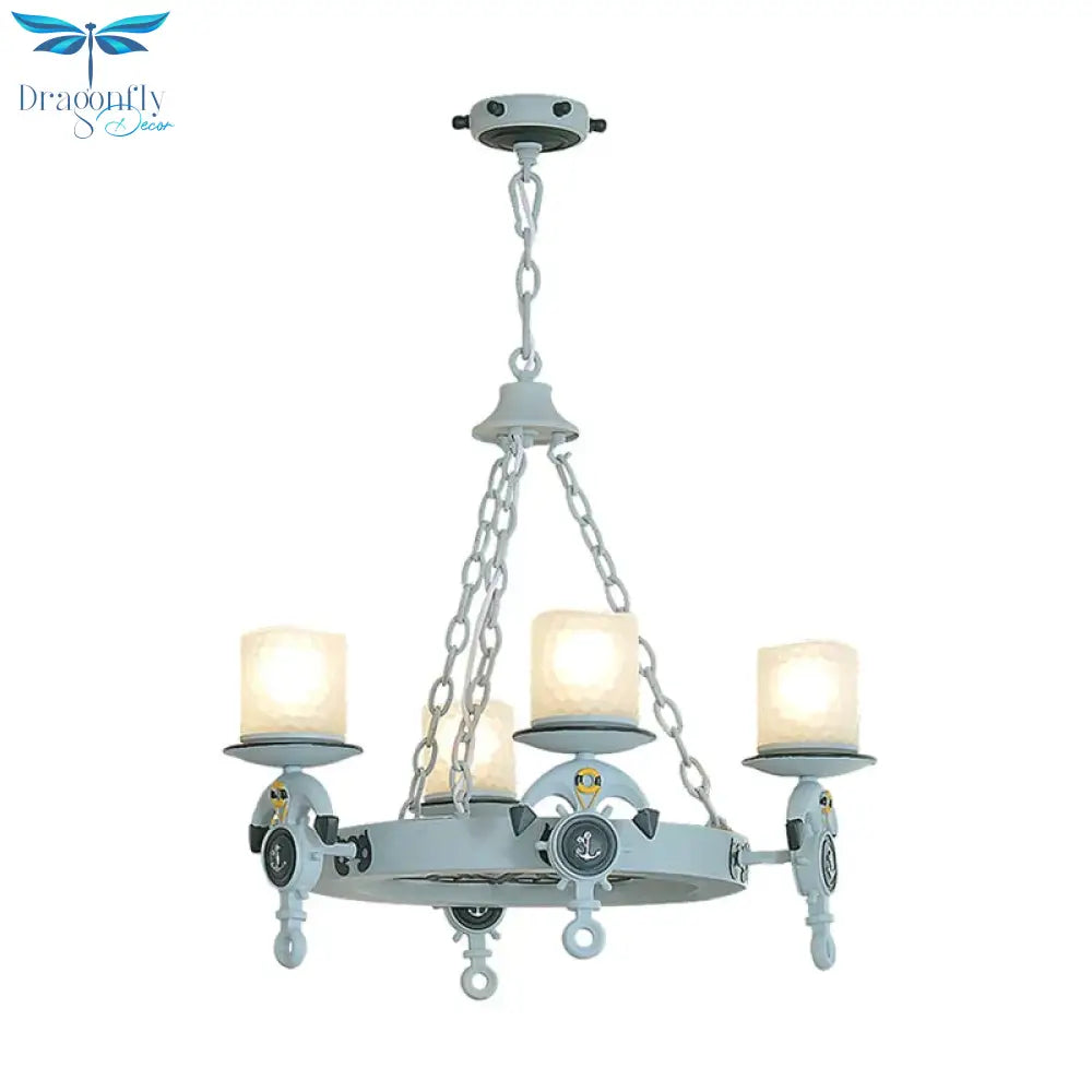 4 Lights Bedroom Pendant Lighting Nautical Blue/Black Chandelier Lamp with Cylinder Dimpled Glass Shade