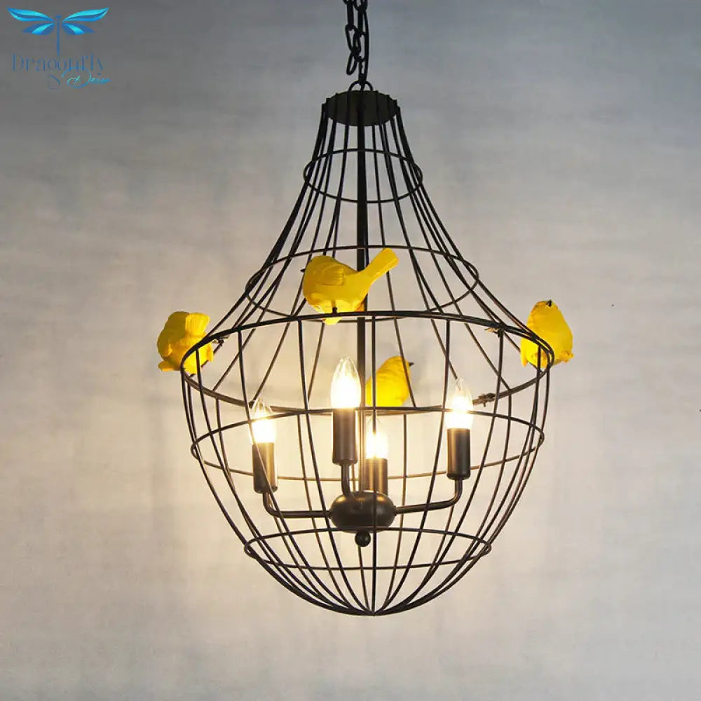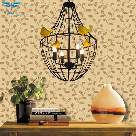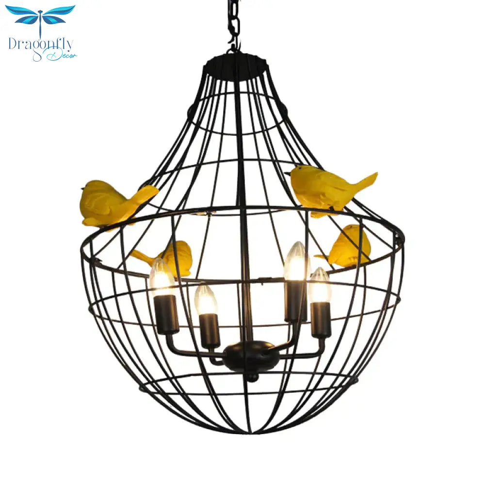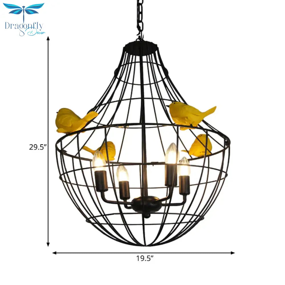 4 Lights Candelabra Suspended Lighting Fixture Traditional Black Metal Chandelier with Cage