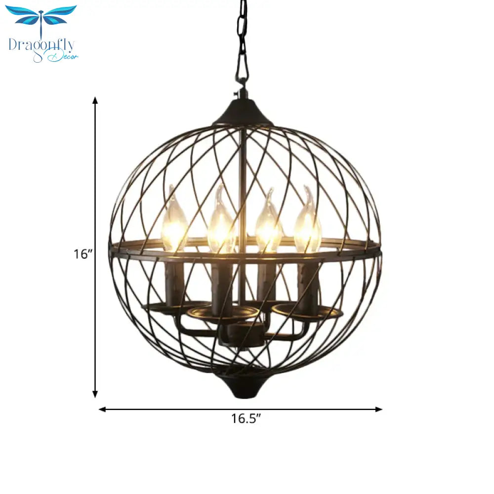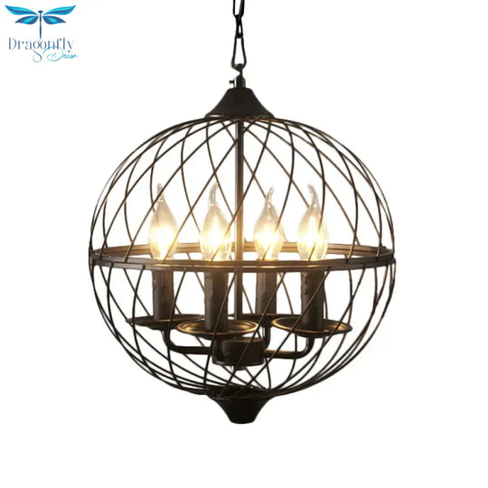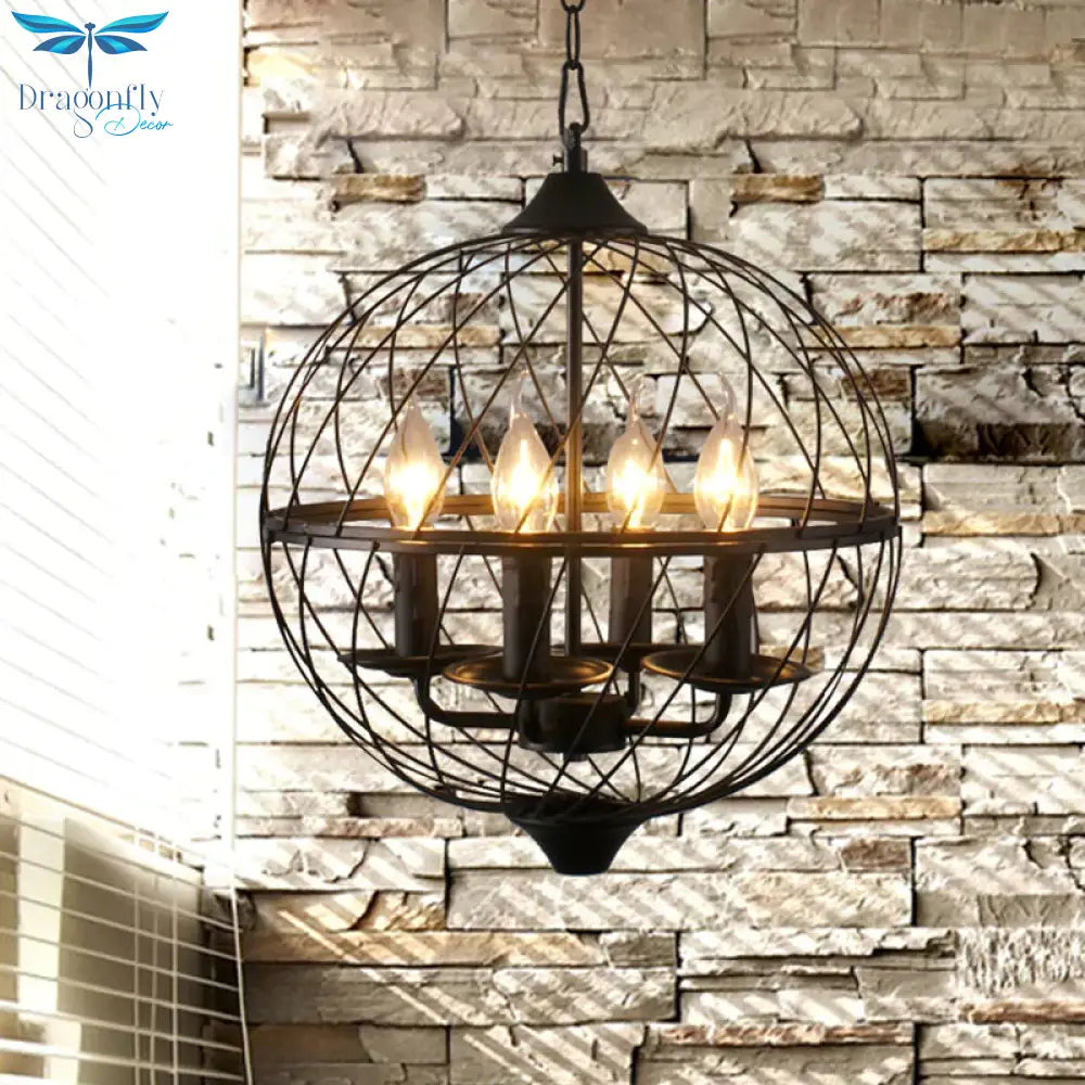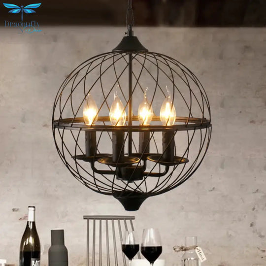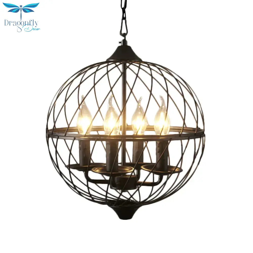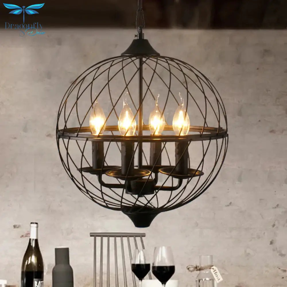 4 Lights Metal Pendant Chandelier Classic Black Candle Dining Room Hanging Ceiling Fixture with Globe Cage