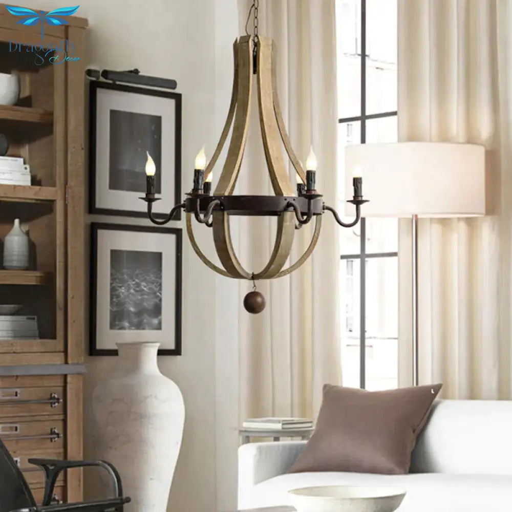 5/6 Lights Chandelier Lighting Fixture Rustic Wine Barrel Wood Hanging