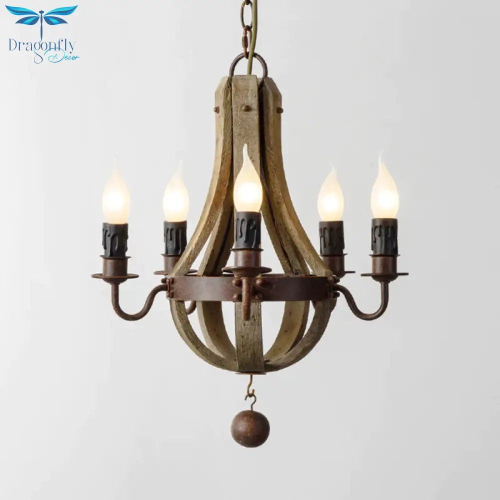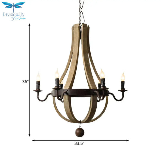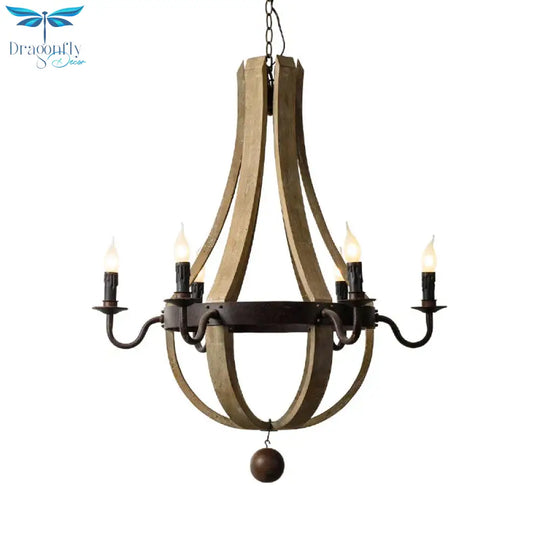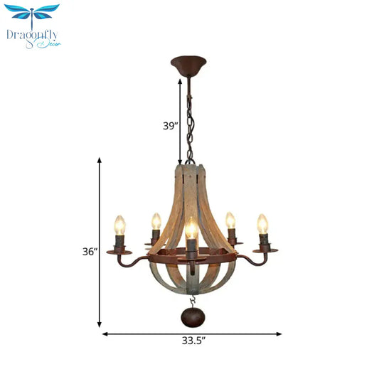 5/6 Lights Chandelier Lighting Fixture Rustic Wine Barrel Wood Hanging Light in Brown for Bedroom
