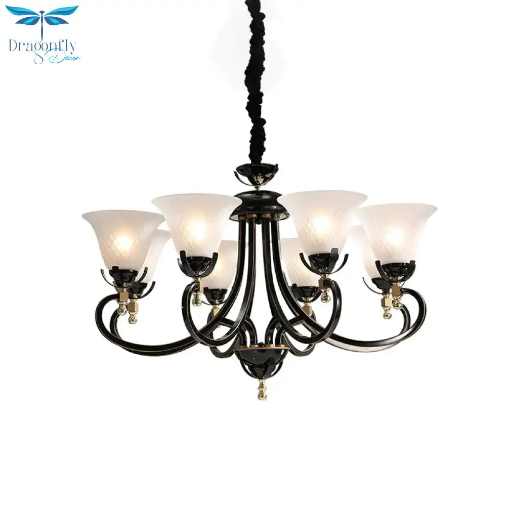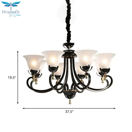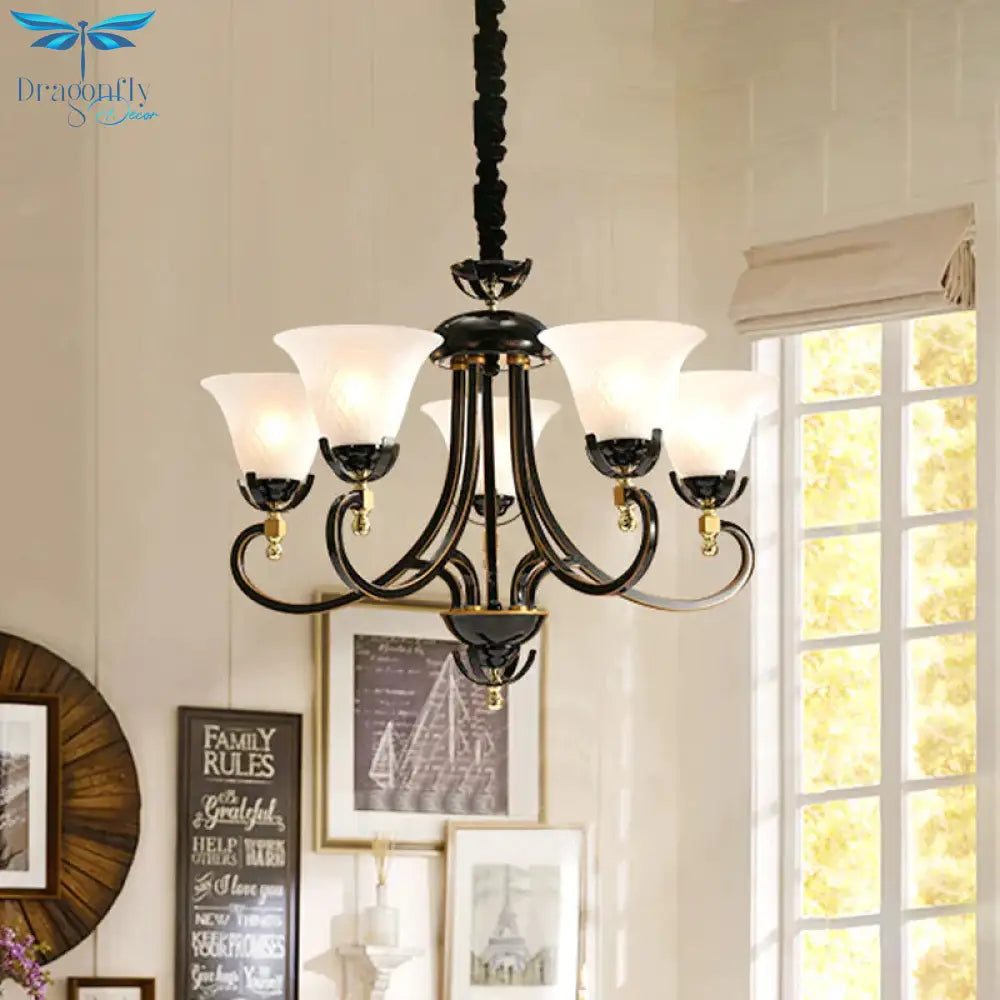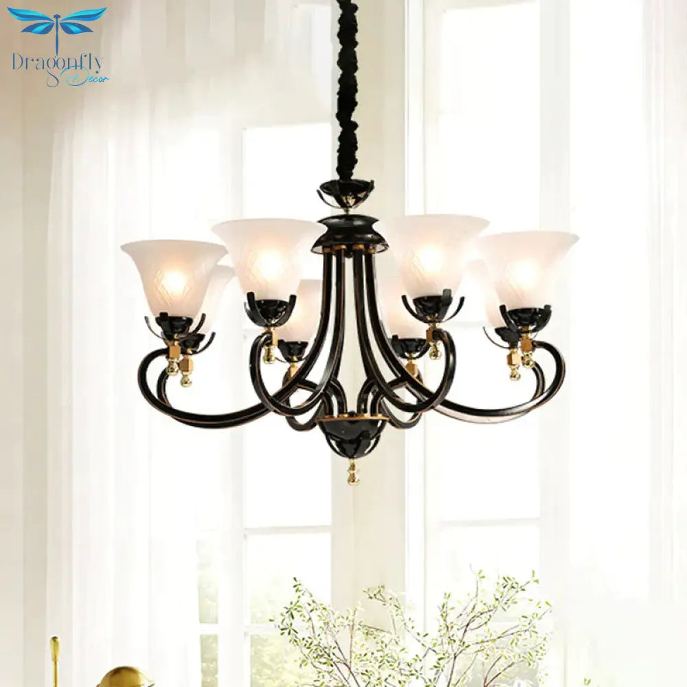 5/8 - Bulb Flared Ceiling Chandelier Retro Black Cream Glass Pendant Lighting Fixture For Restaurant
