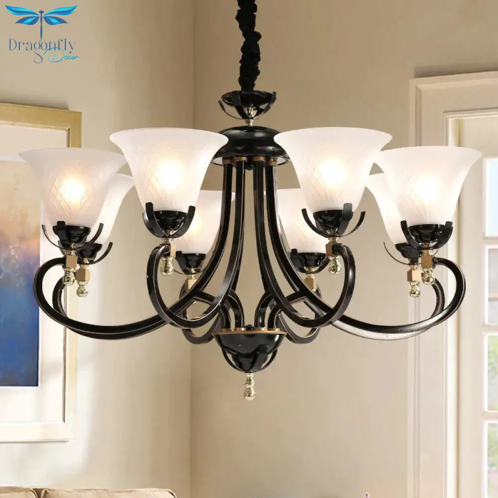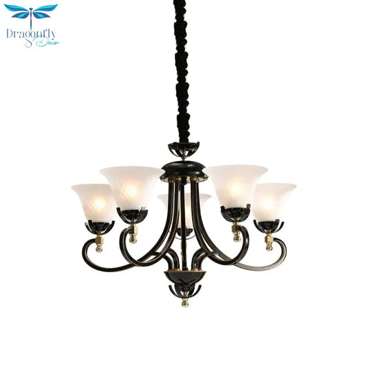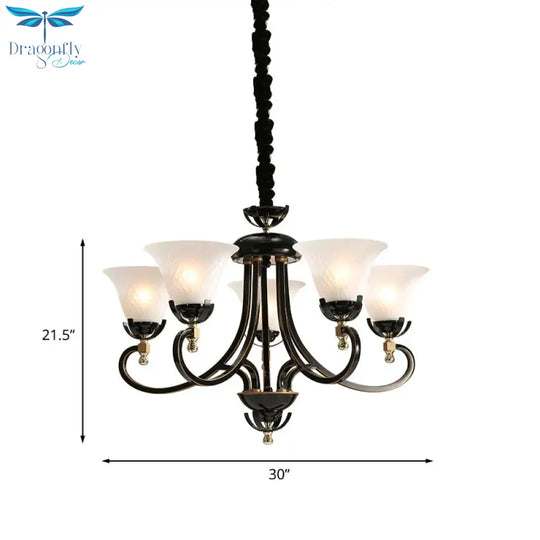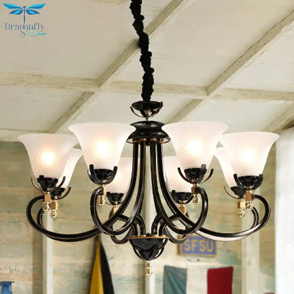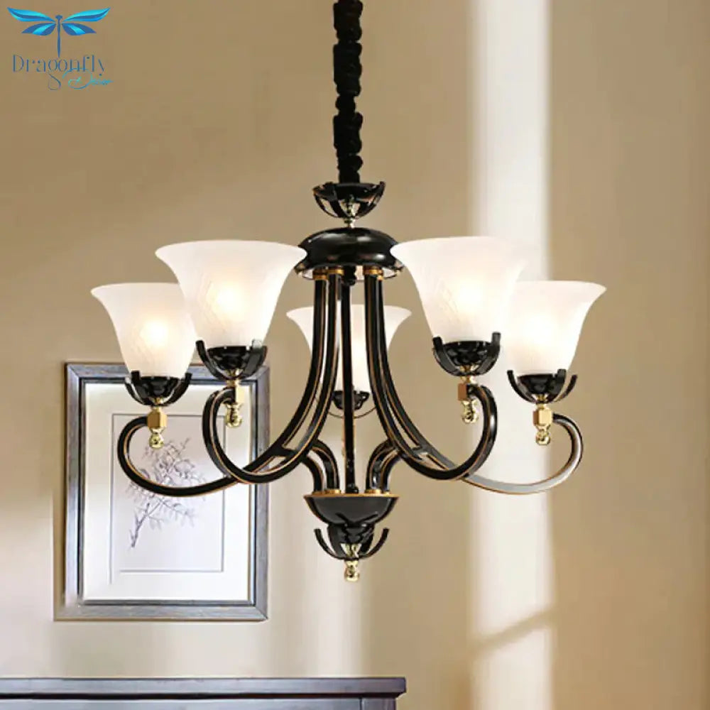5/8 - Bulb Flared Ceiling Chandelier Retro Black Cream Glass Pendant Lighting Fixture For Restaurant