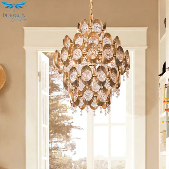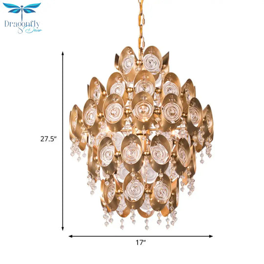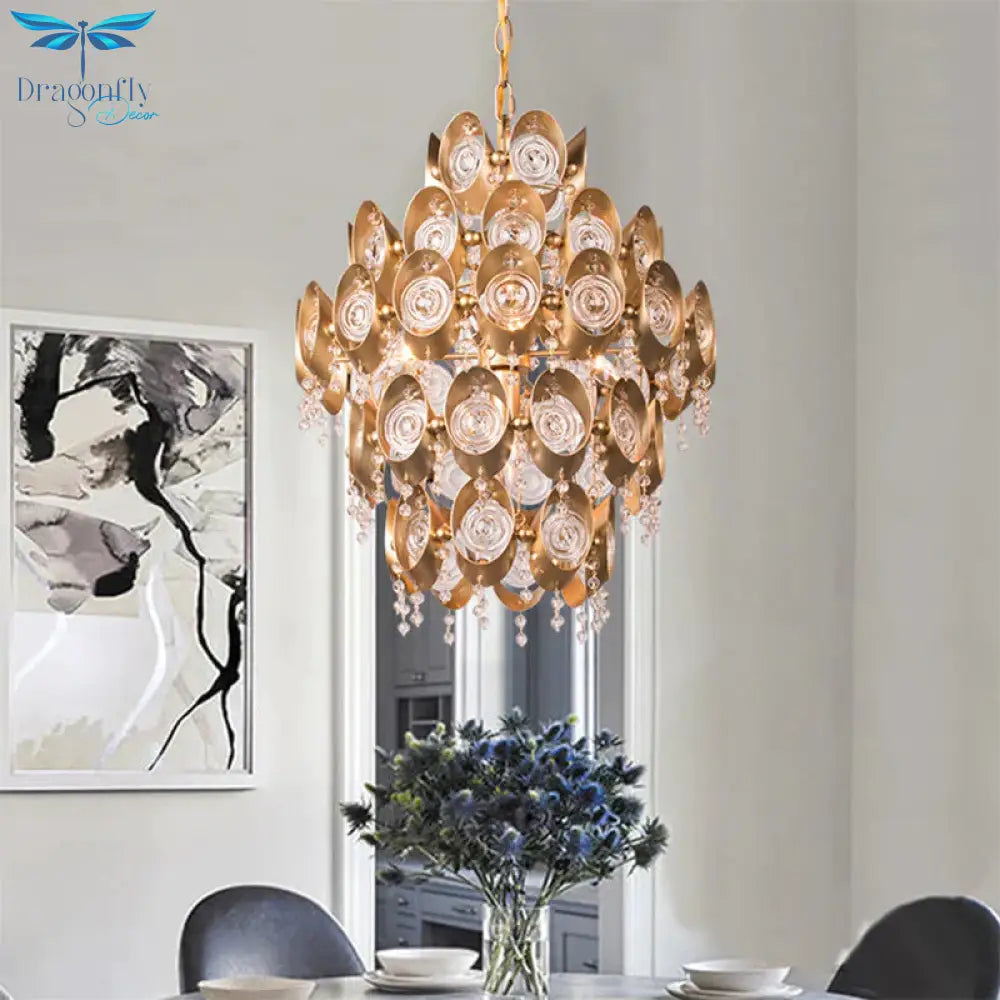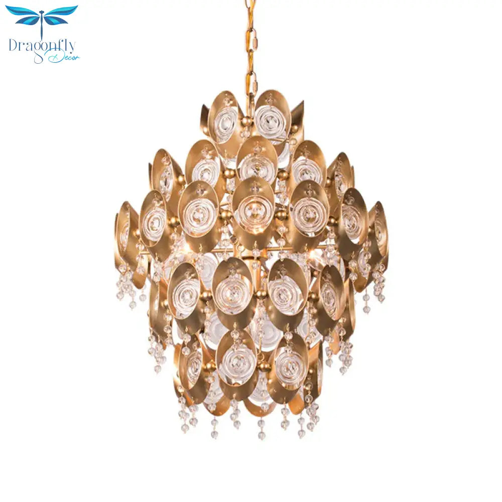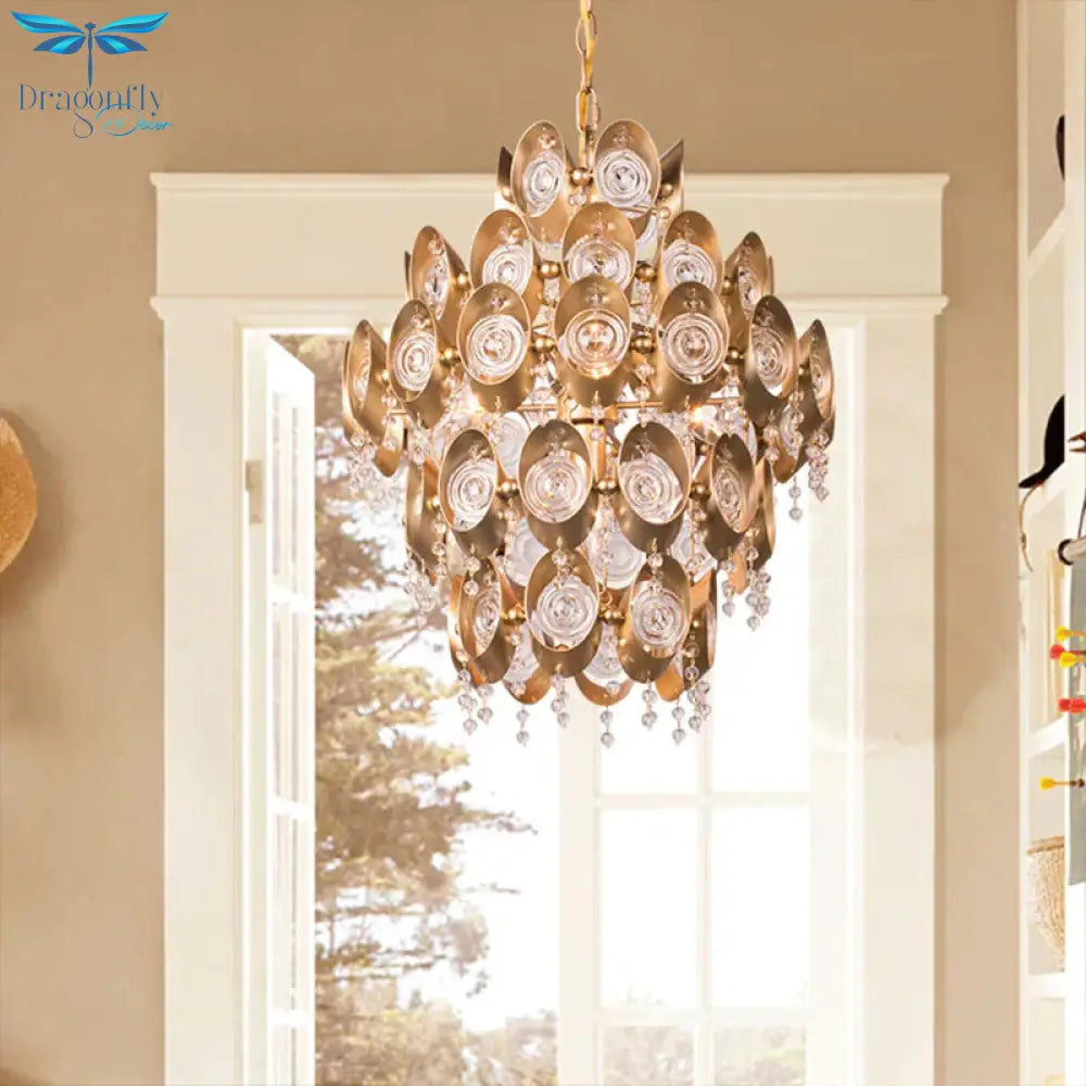 5 Lights Chandelier Traditional-Style Round Crystal Hanging Pendant Light in Gold