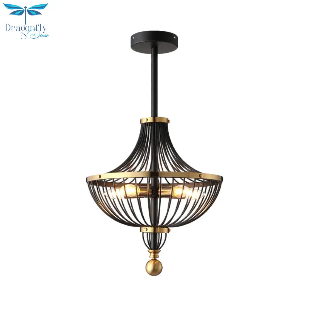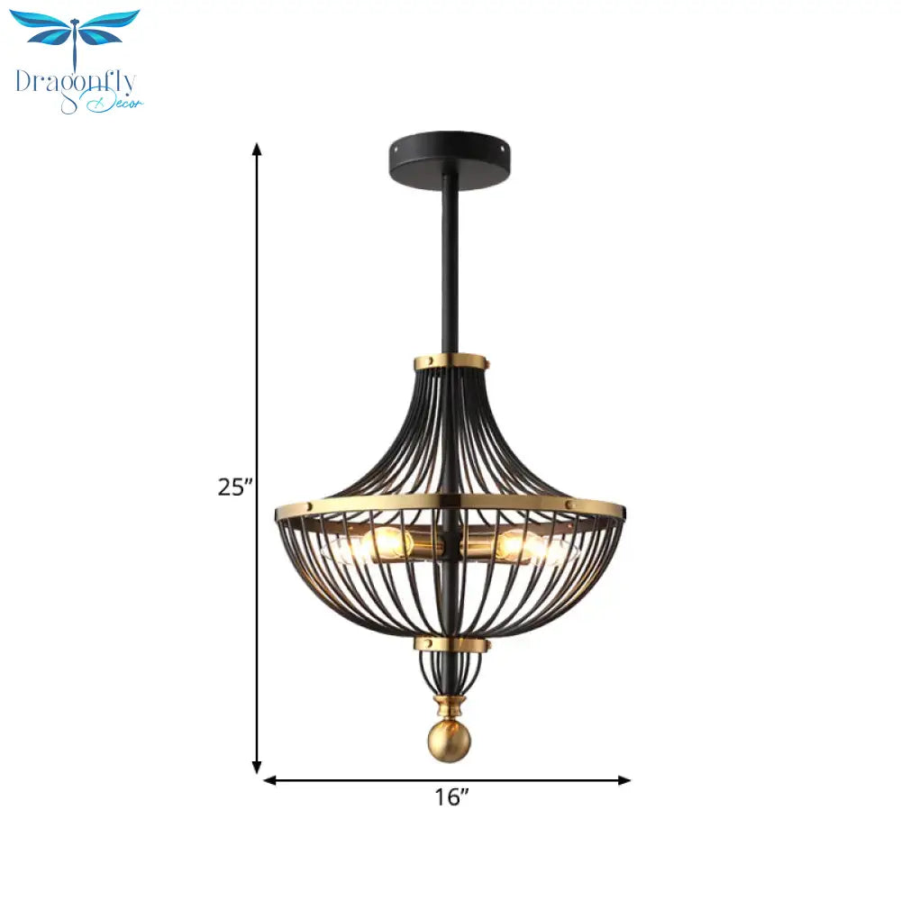 5 Lights Iron Ceiling Basket Cage Chandelier in Vintage Black Finish