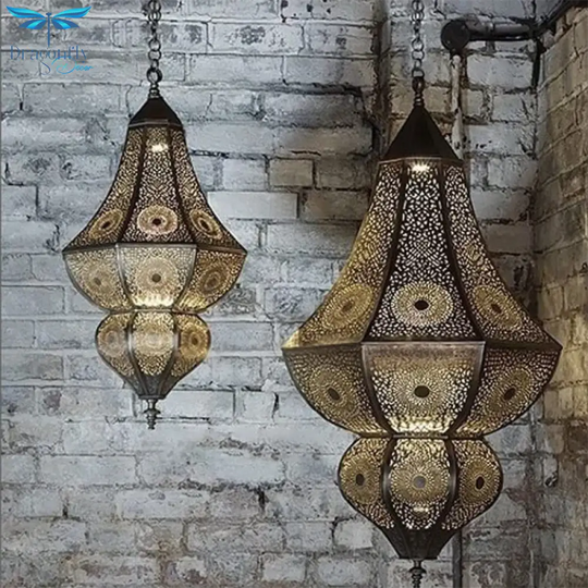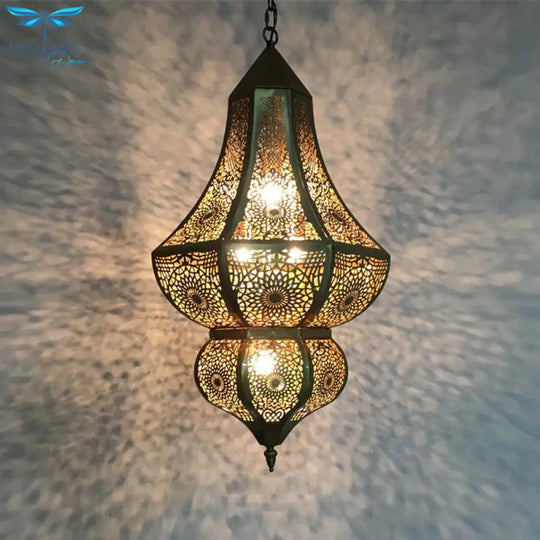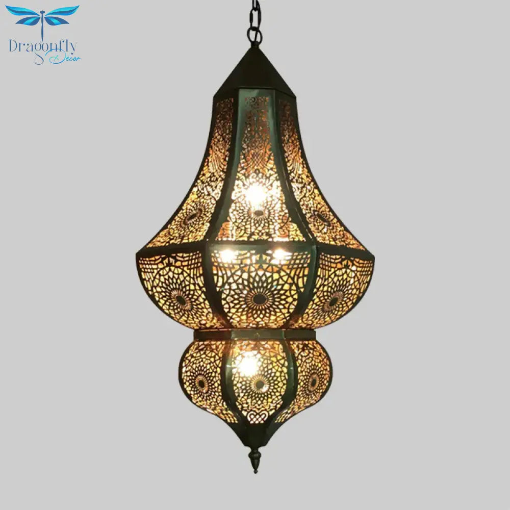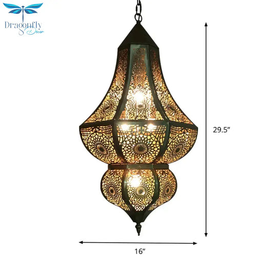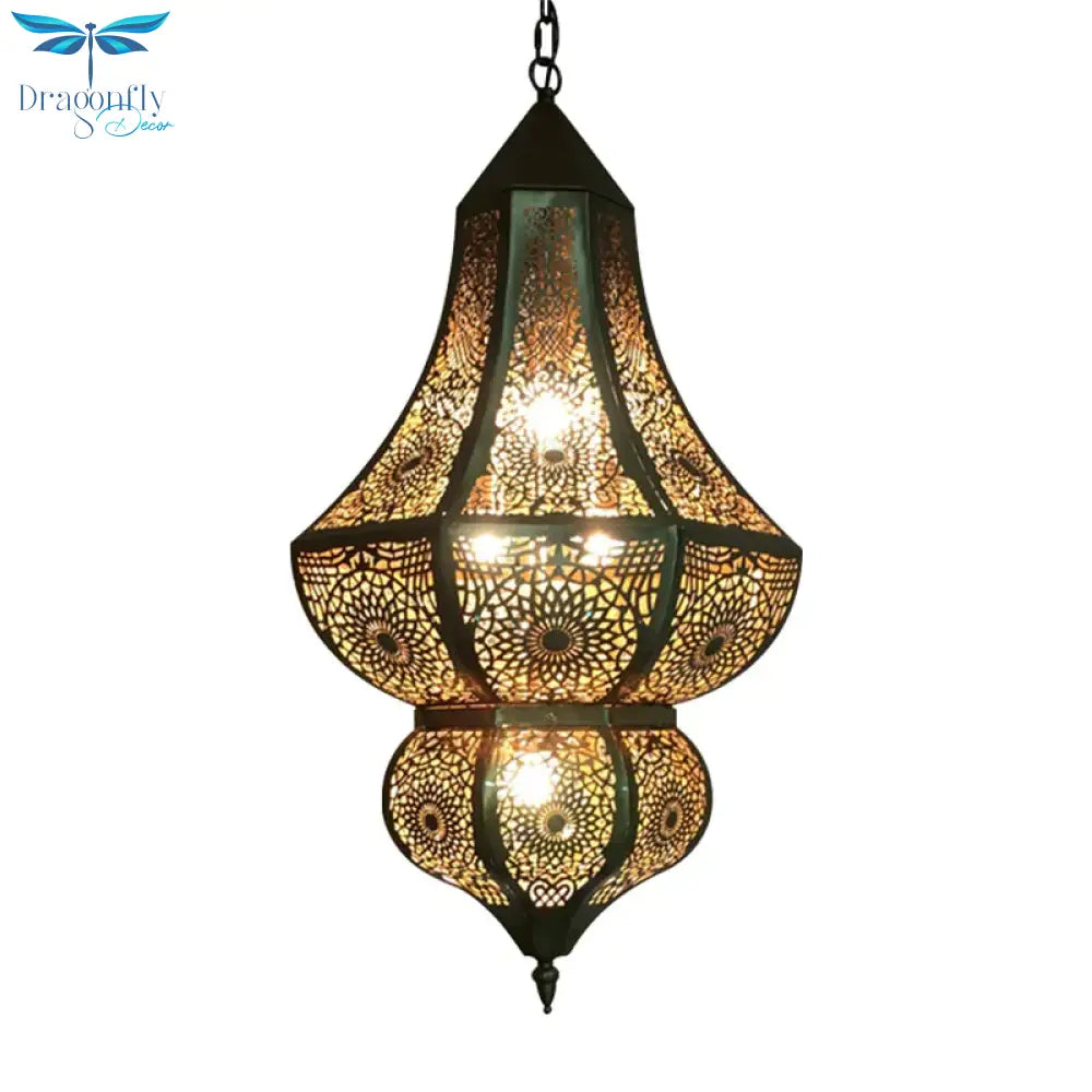 5 Lights Urn Pendant Chandelier Vintage Brass Metal Arab Hanging Lamp with Hollow Out Design