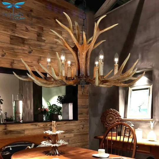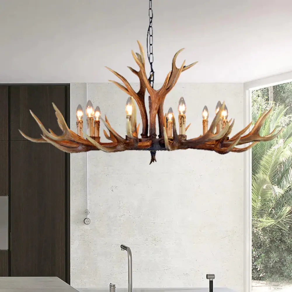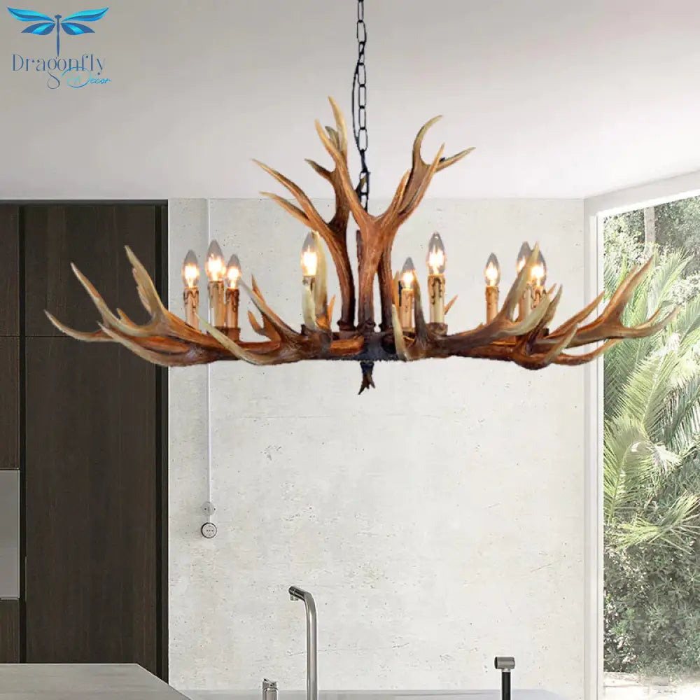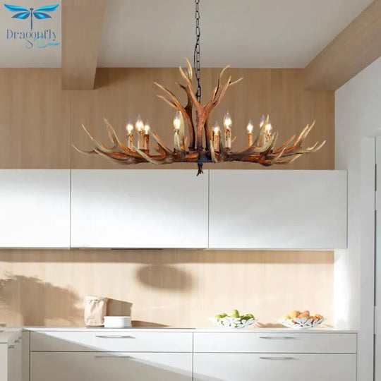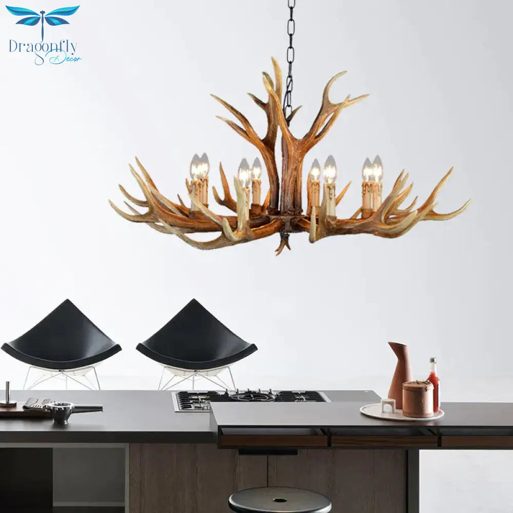 6/8/10 Lights Resin Chandelier Lamp Farmhouse Brown Deer Antler Kitchen Down Lighting Pendant