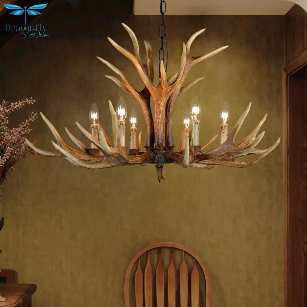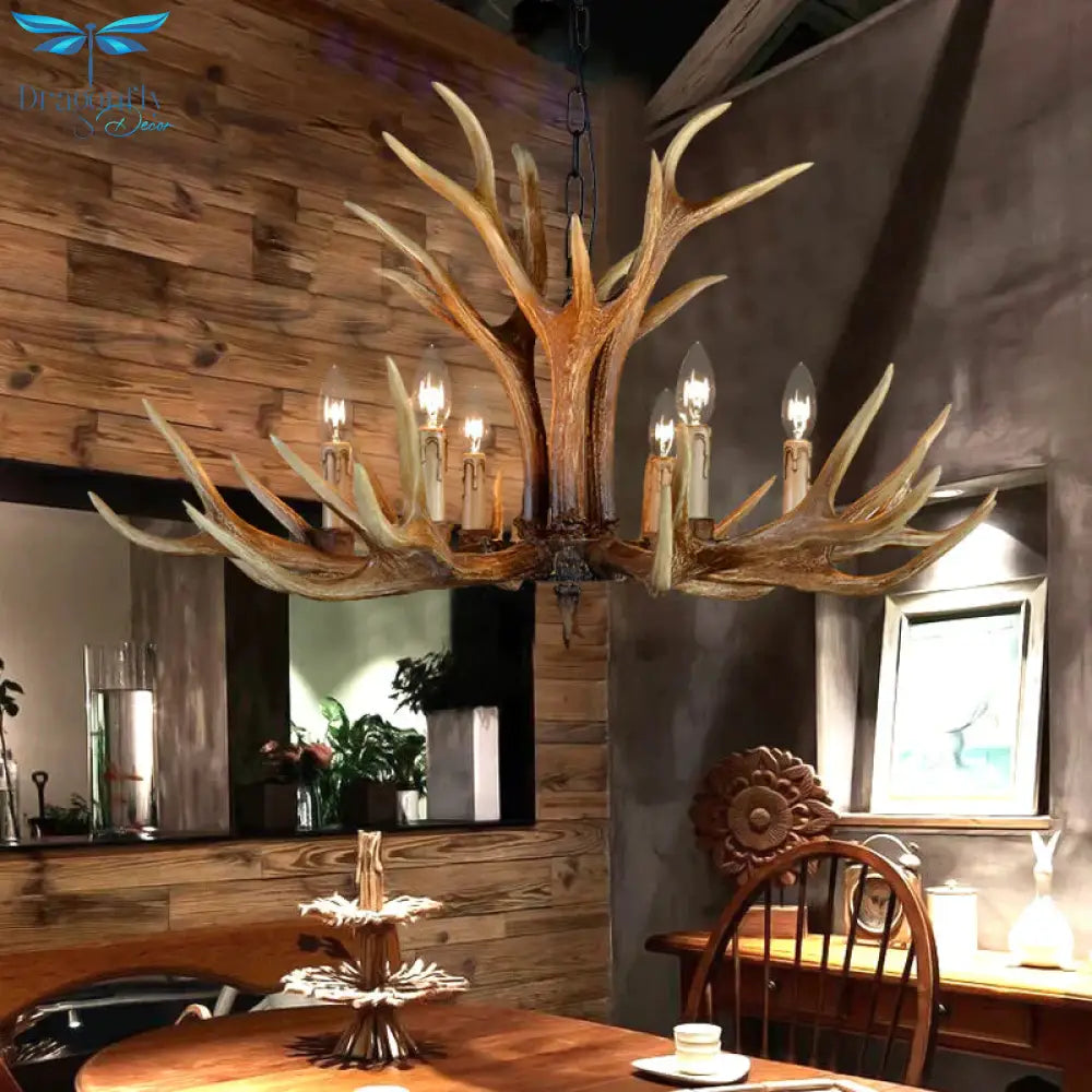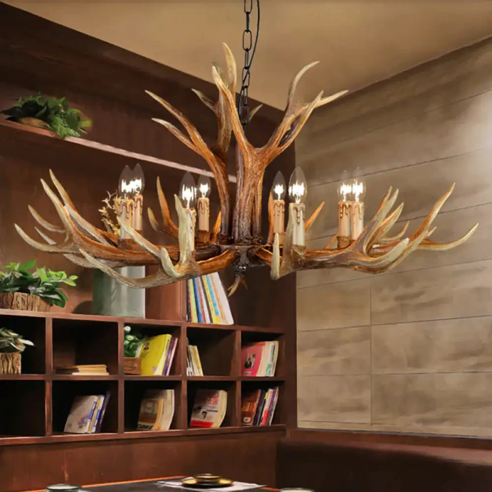 6/8/10 Lights Resin Chandelier Lamp Farmhouse Brown Deer Antler Kitche