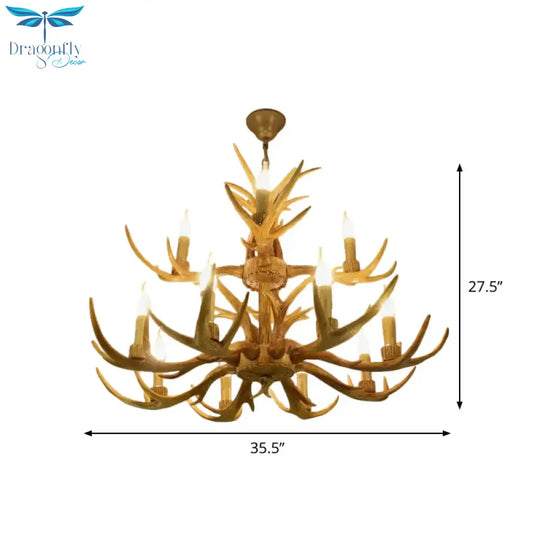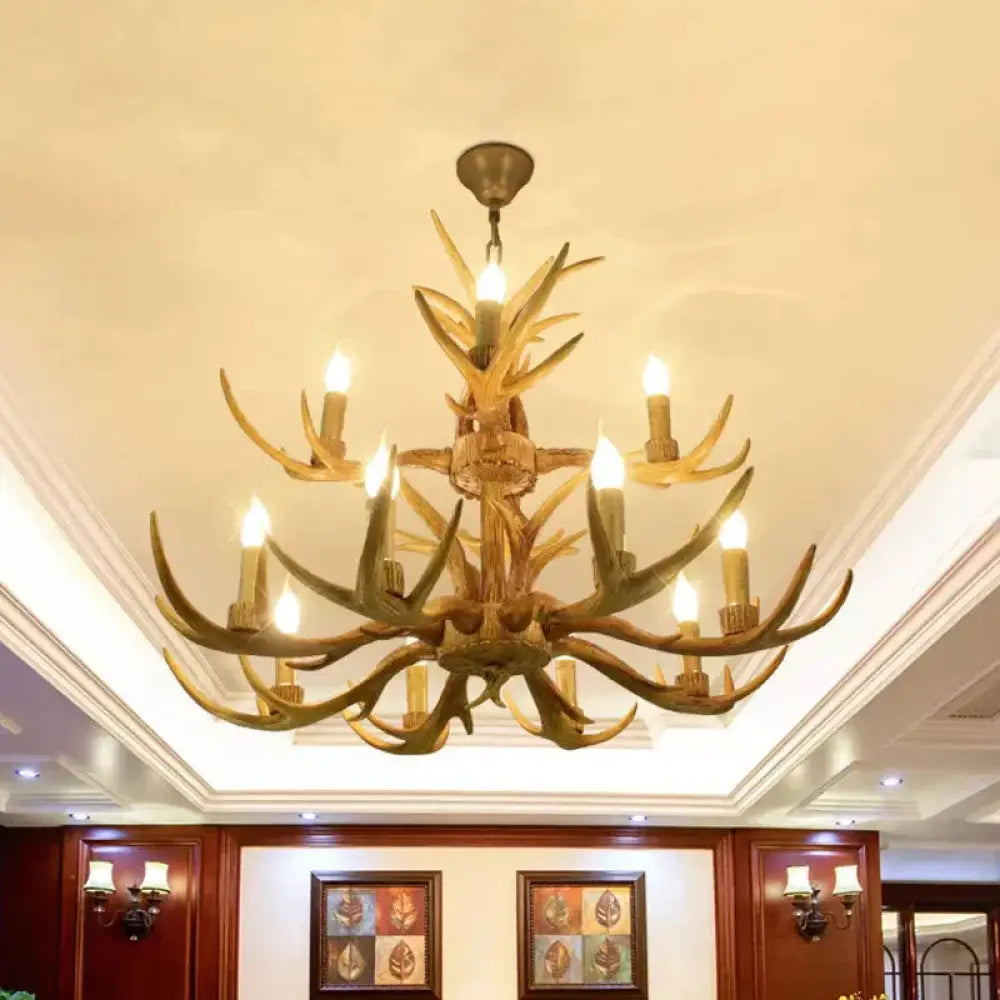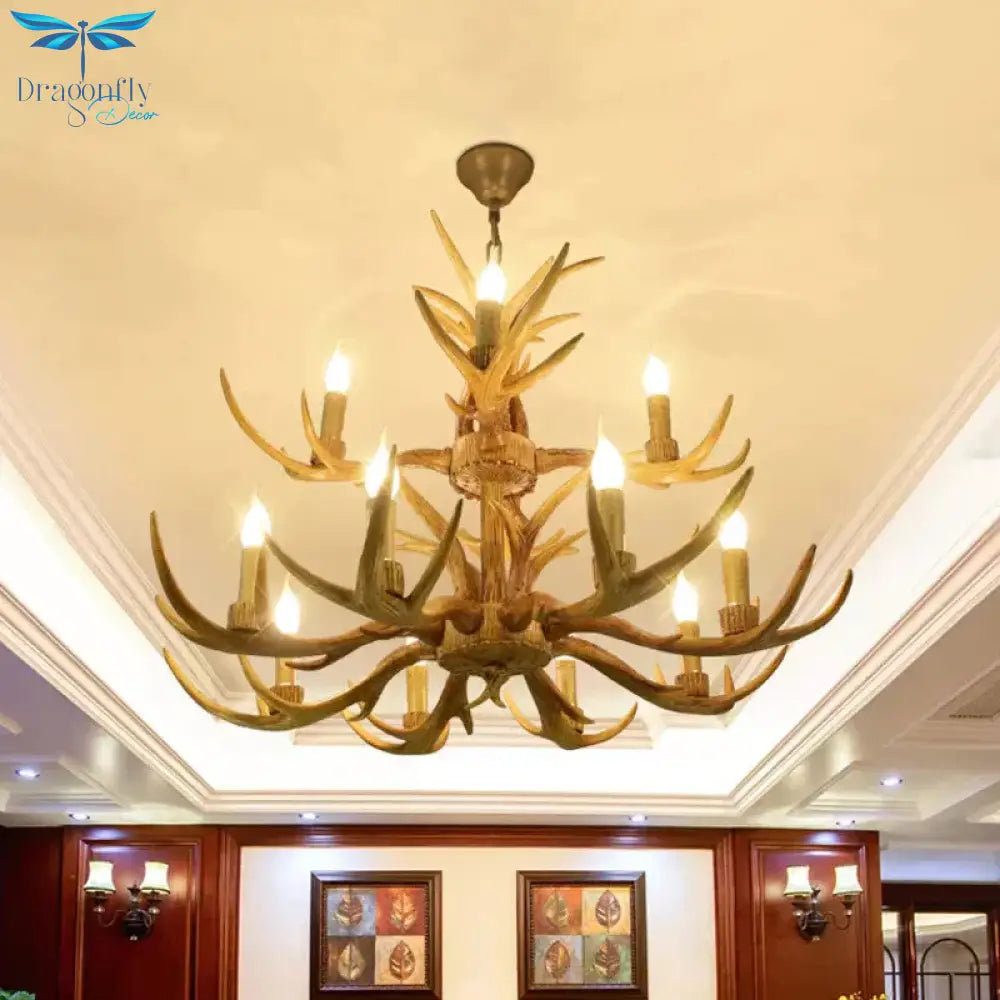 6/8/12 Bulbs Chandelier Lodge 1/2-Layered Antler Resin Ceiling Suspens