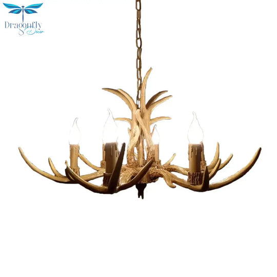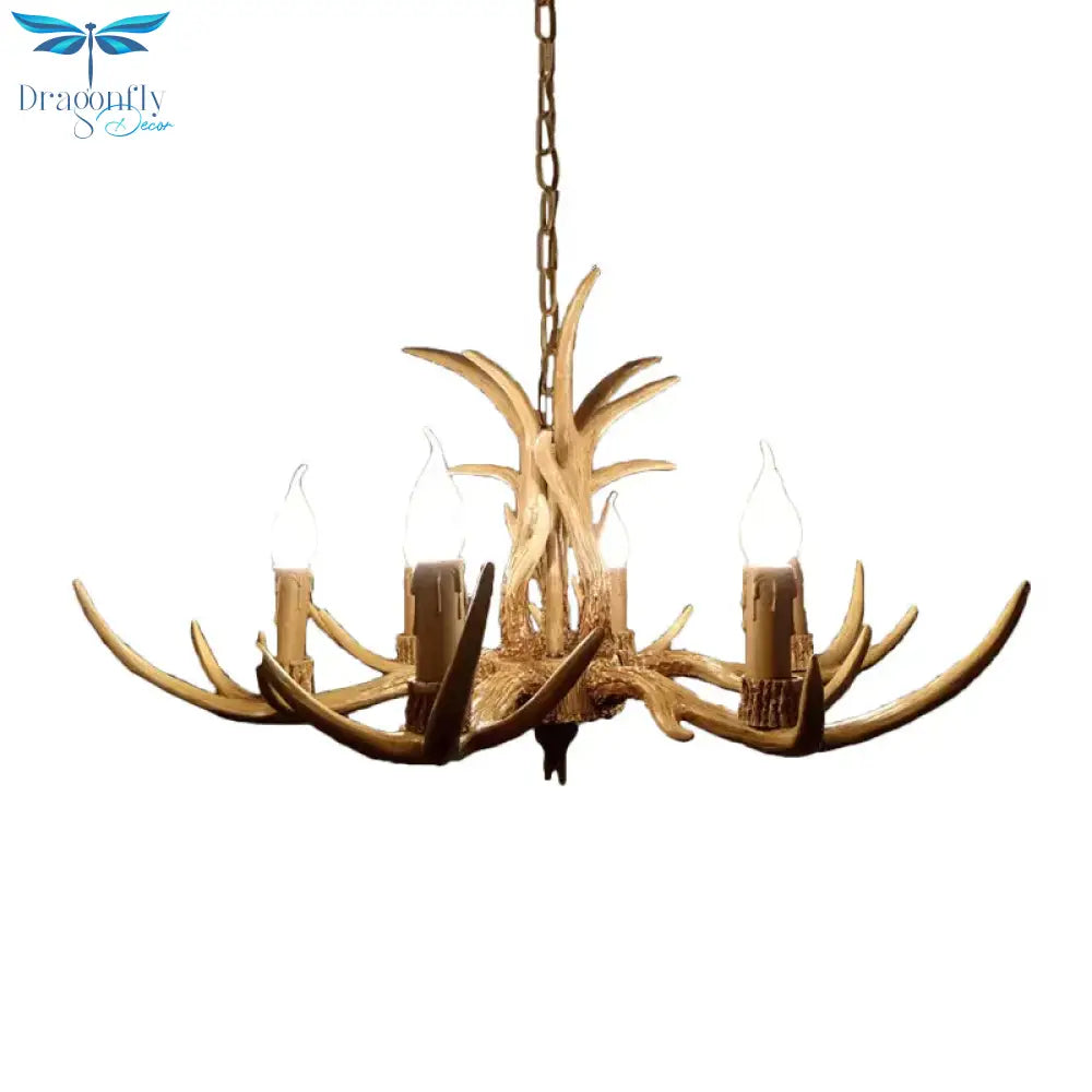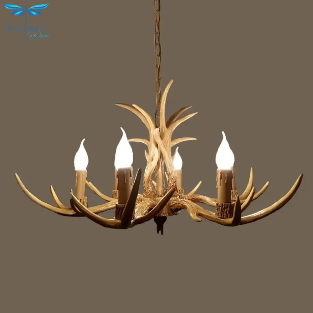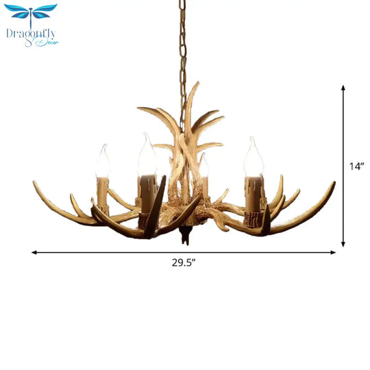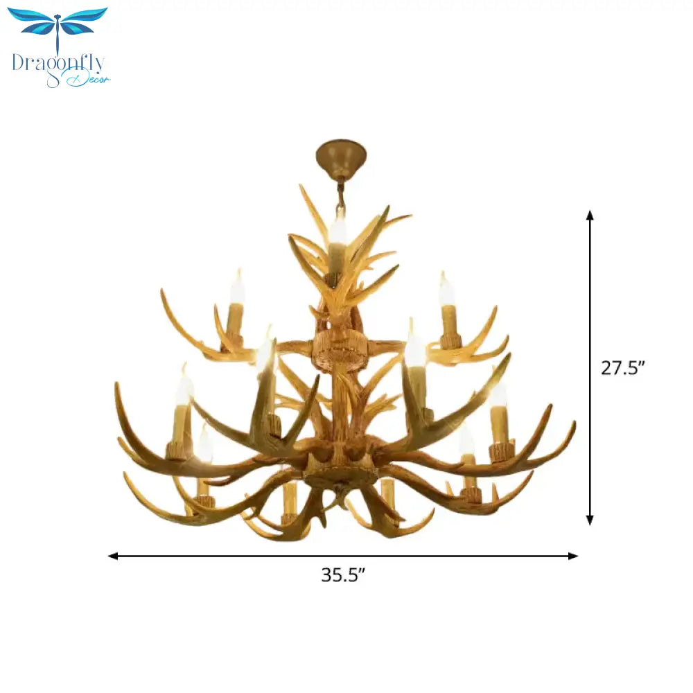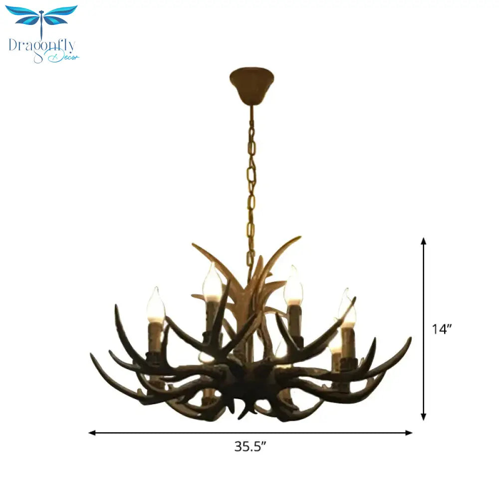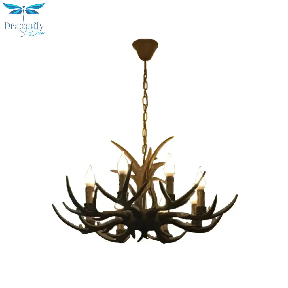6/8/12 Bulbs Chandelier Lodge 1/2-Layered Antler Resin Ceiling Suspension Lamp in Brown