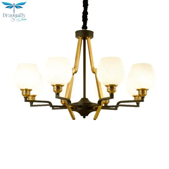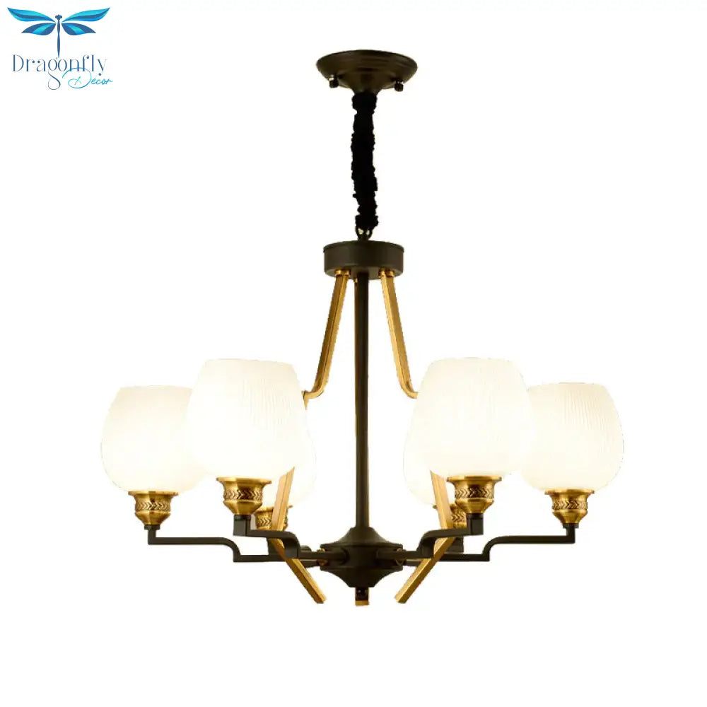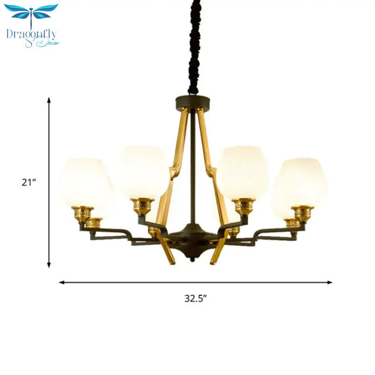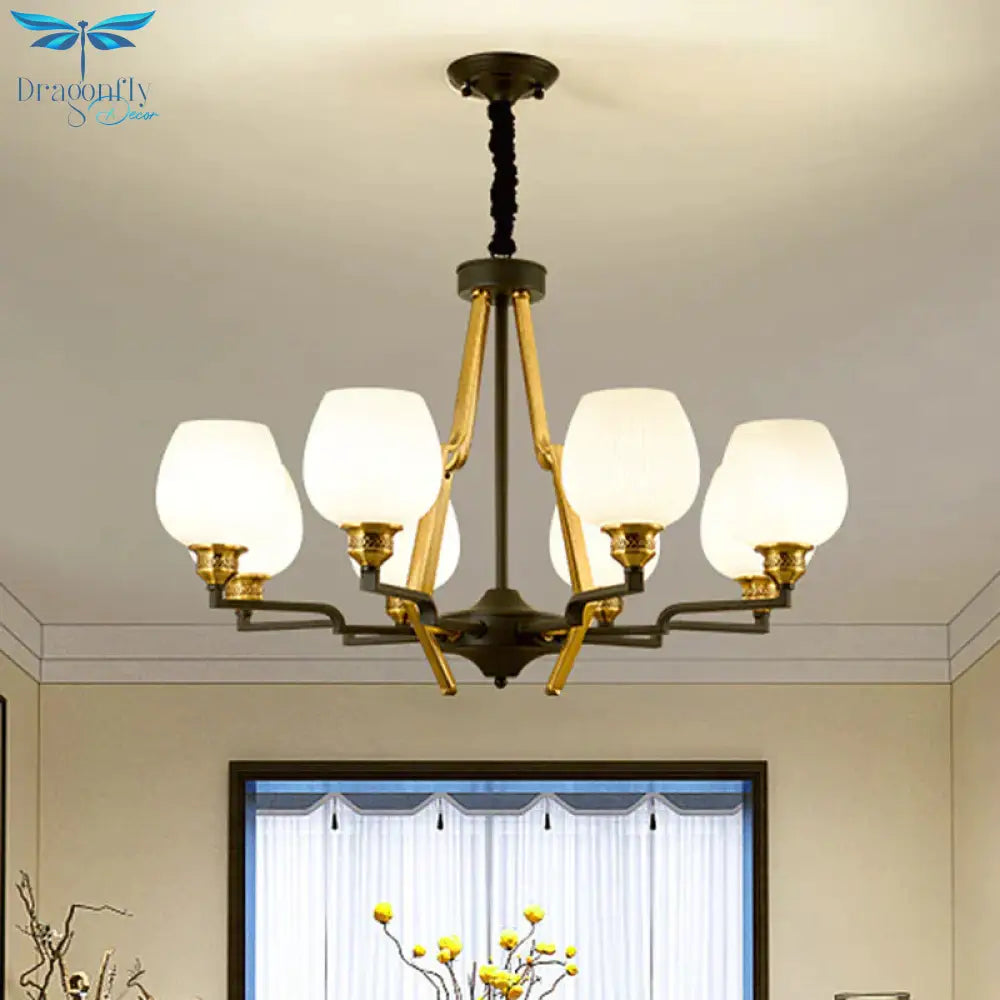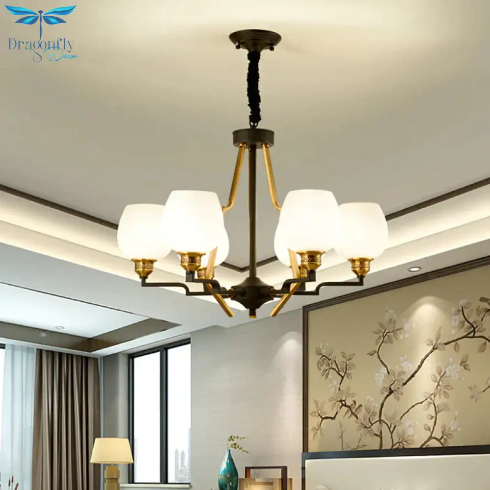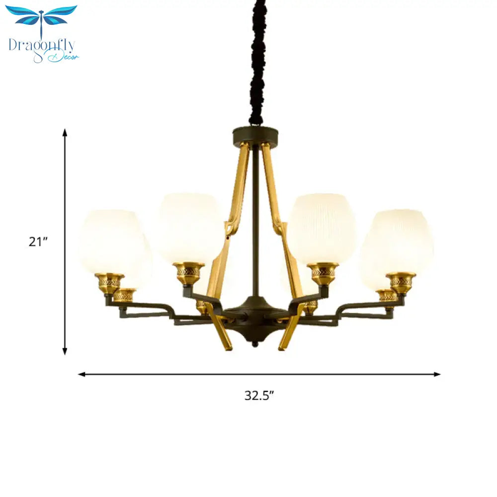 6/8/15 Lights Frosted Glass Pendant Chandelier Traditional Brass Cup Living Room Hanging Ceiling Fixture
