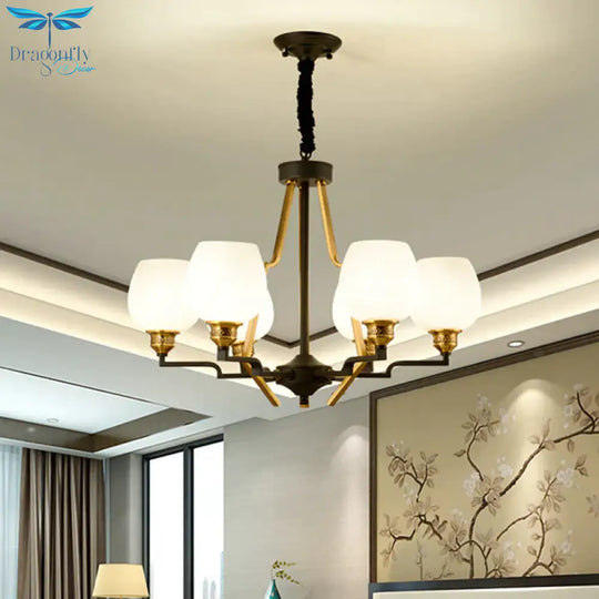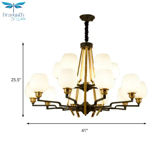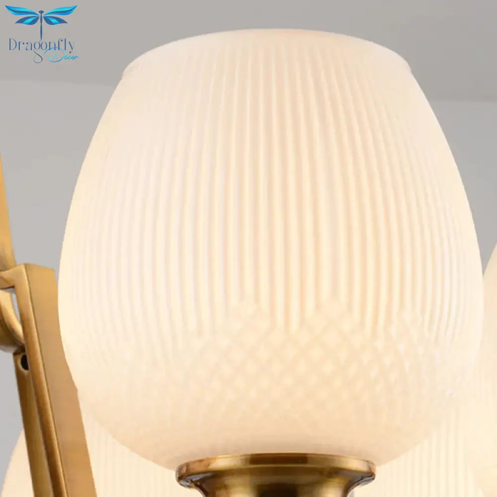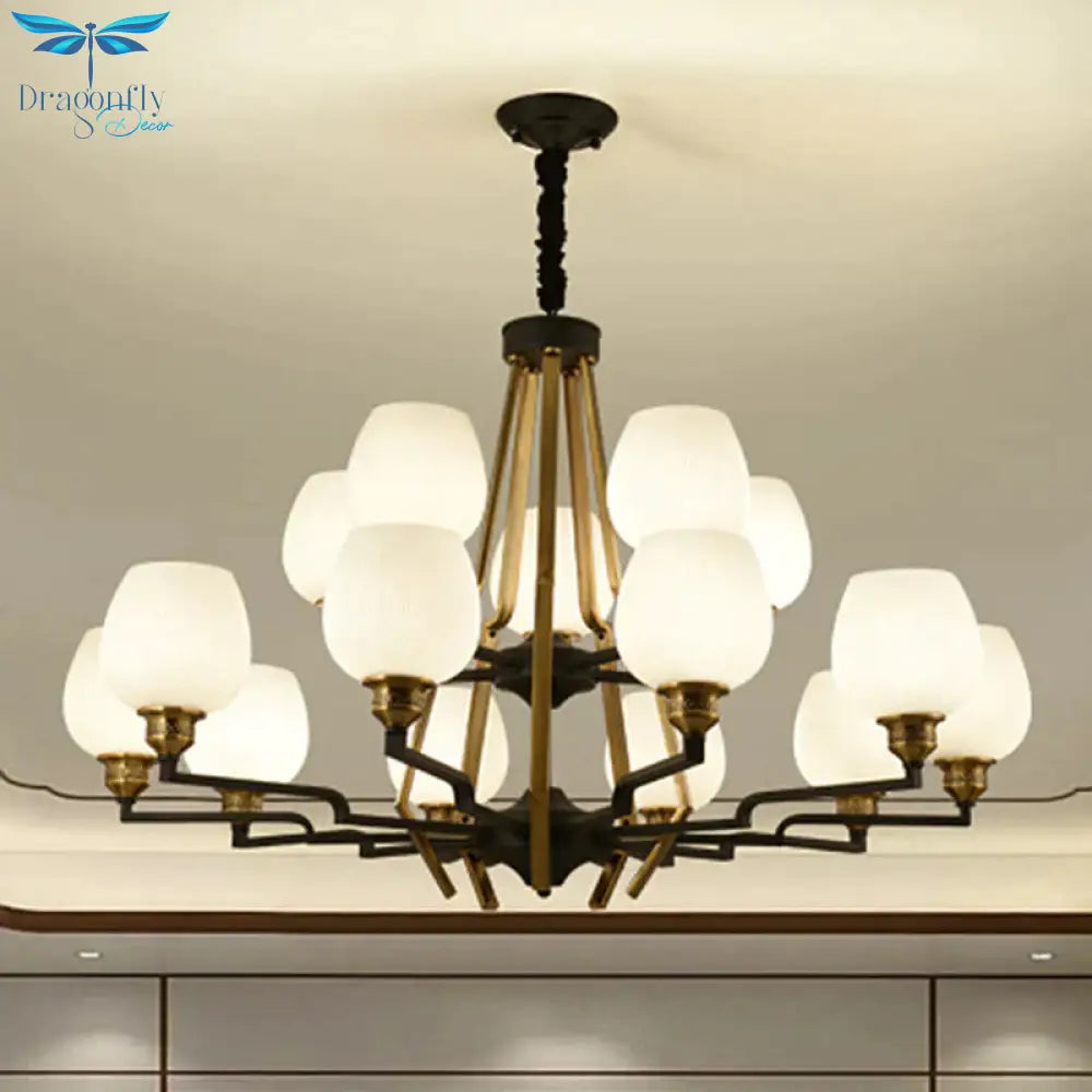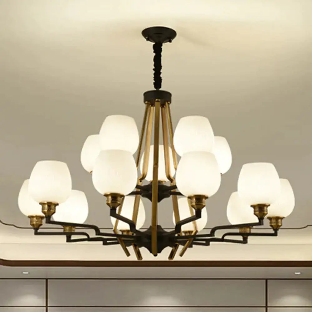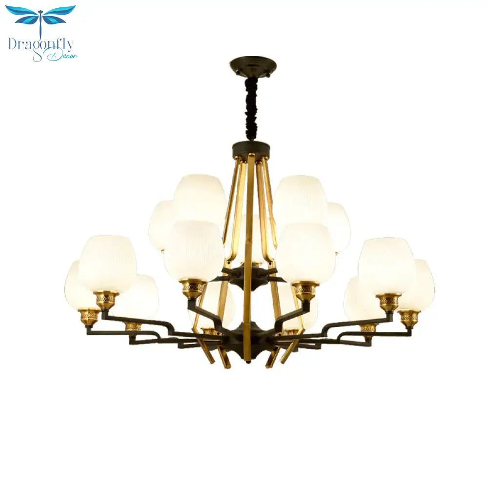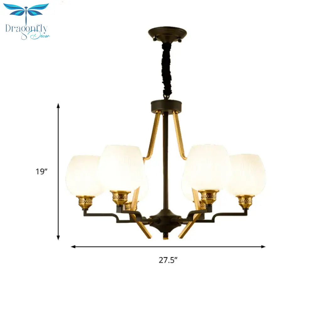 6/8/15 Lights Frosted Glass Pendant Chandelier Traditional Brass Cup Living Room Hanging Ceiling Fixture