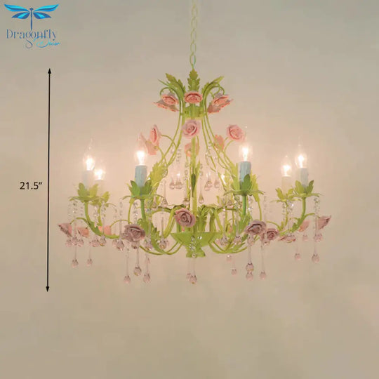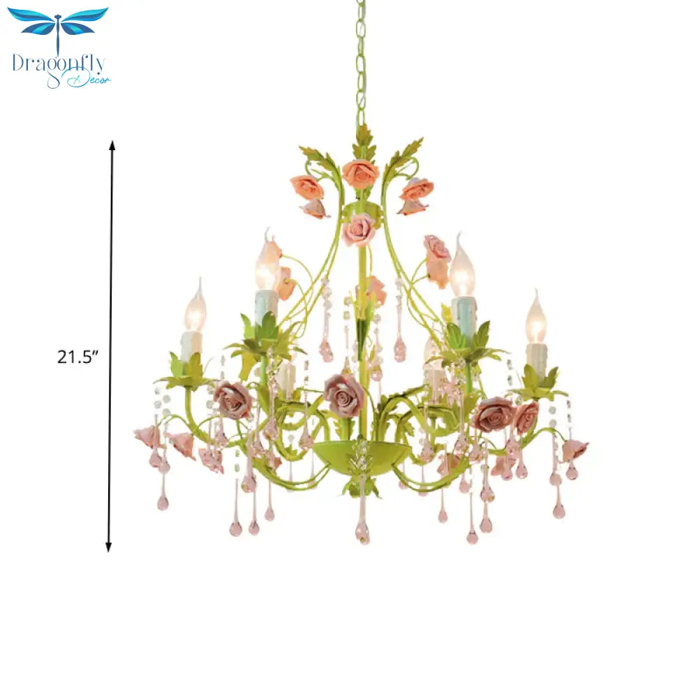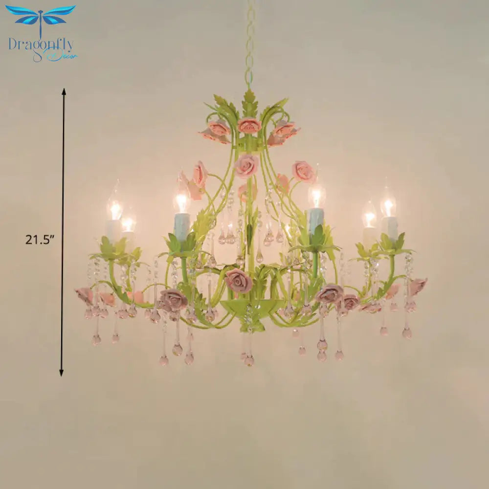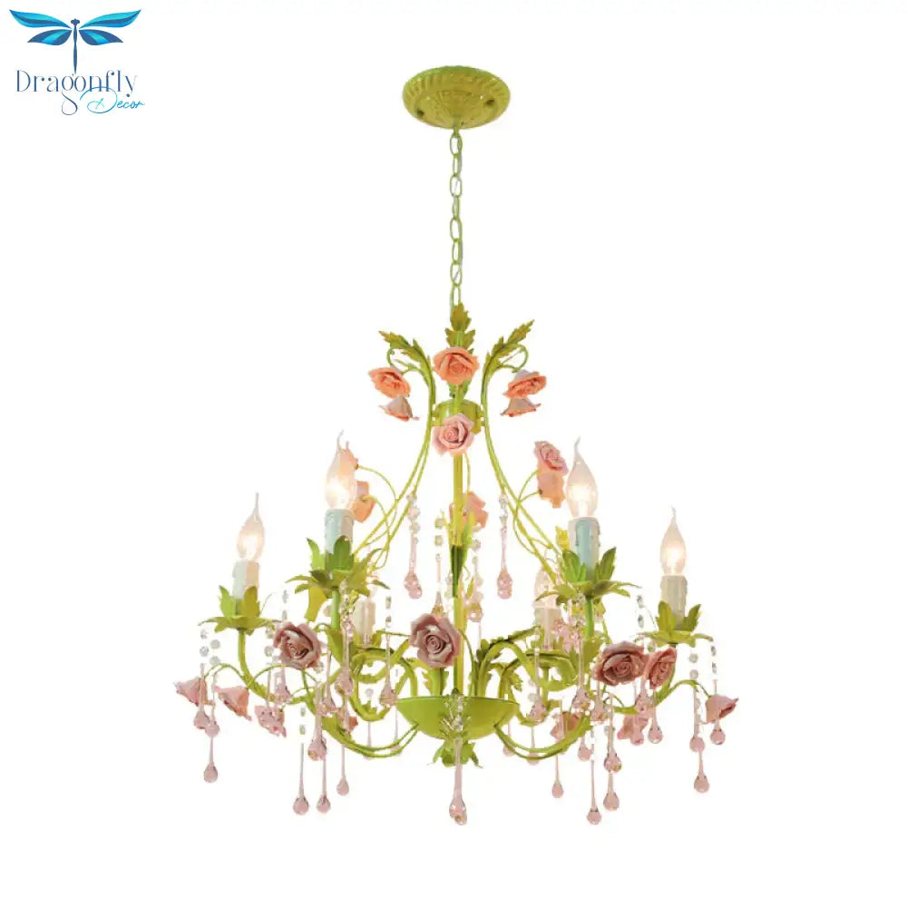 6/8 Bulbs Candle Pendant Lamp Traditionalism Green Crystal Chandelier
