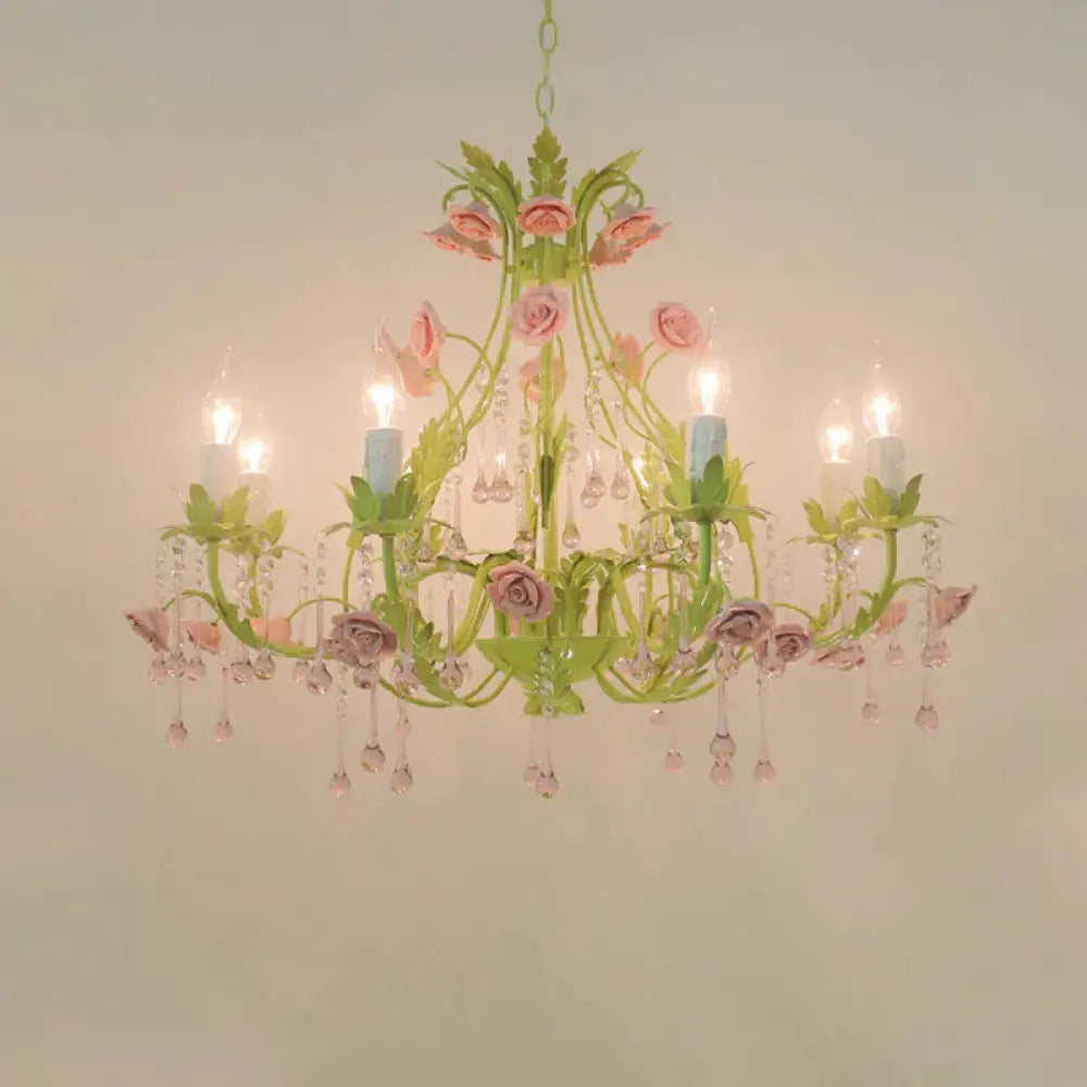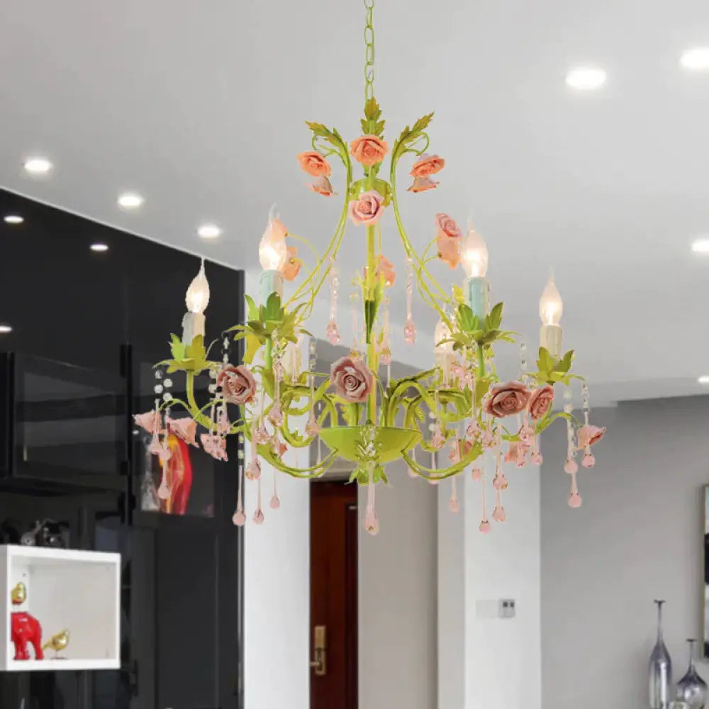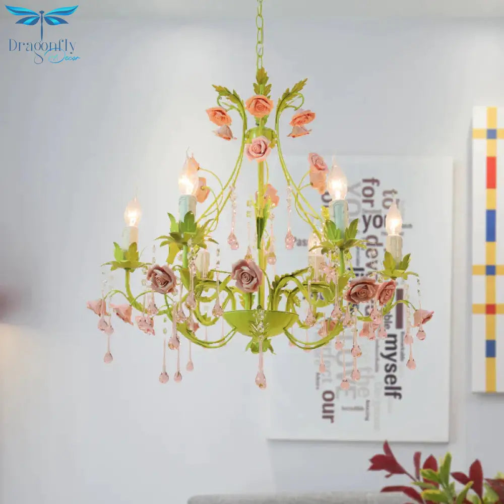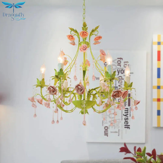 6/8 Bulbs Candle Pendant Lamp Traditionalism Green Crystal Chandelier