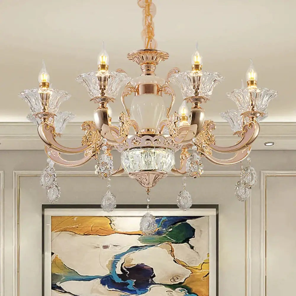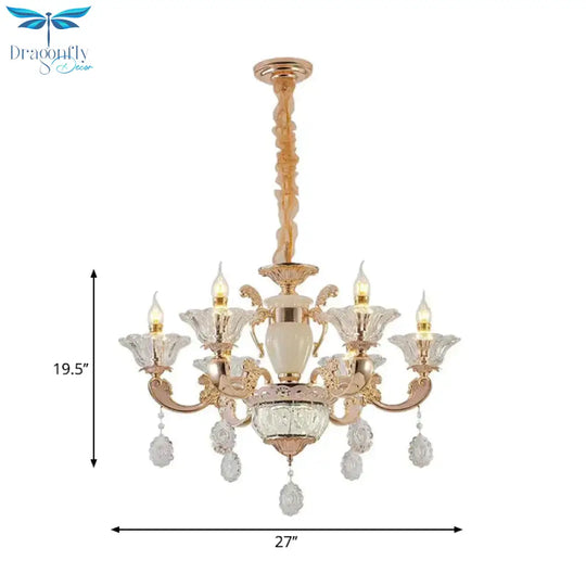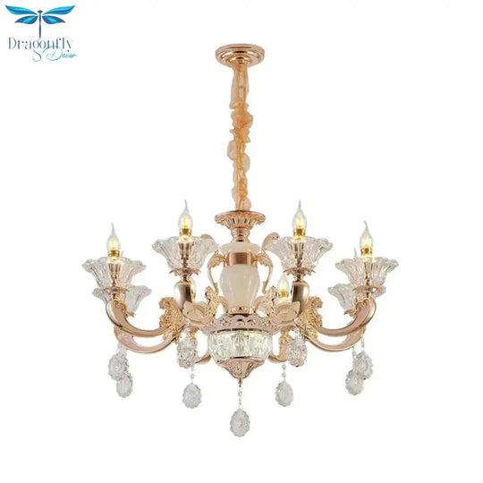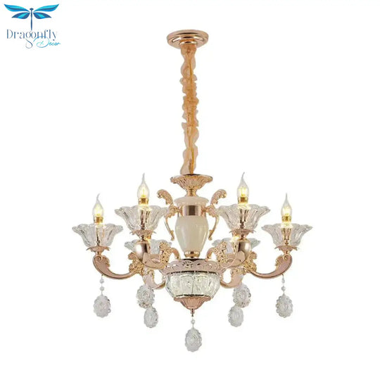 6/8 Bulbs Suspension Lighting Traditional Flower Clear Crystal Shade C
