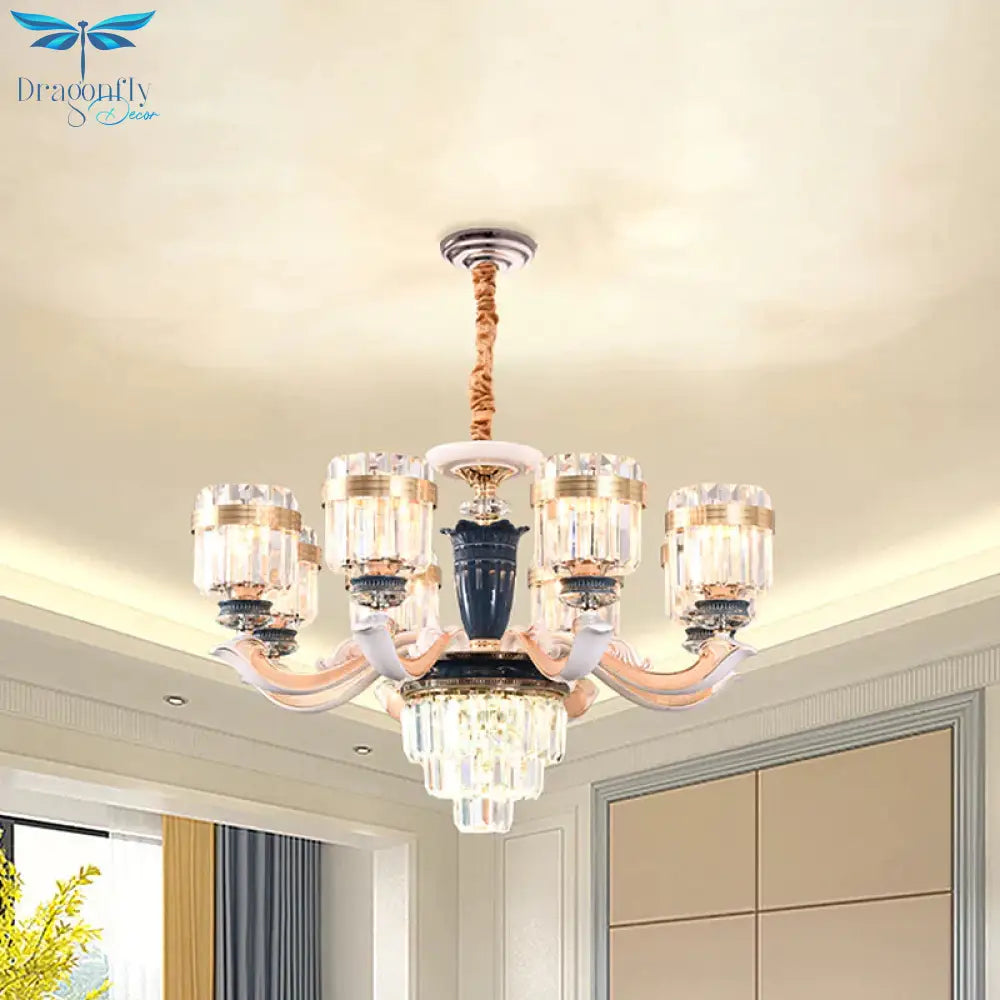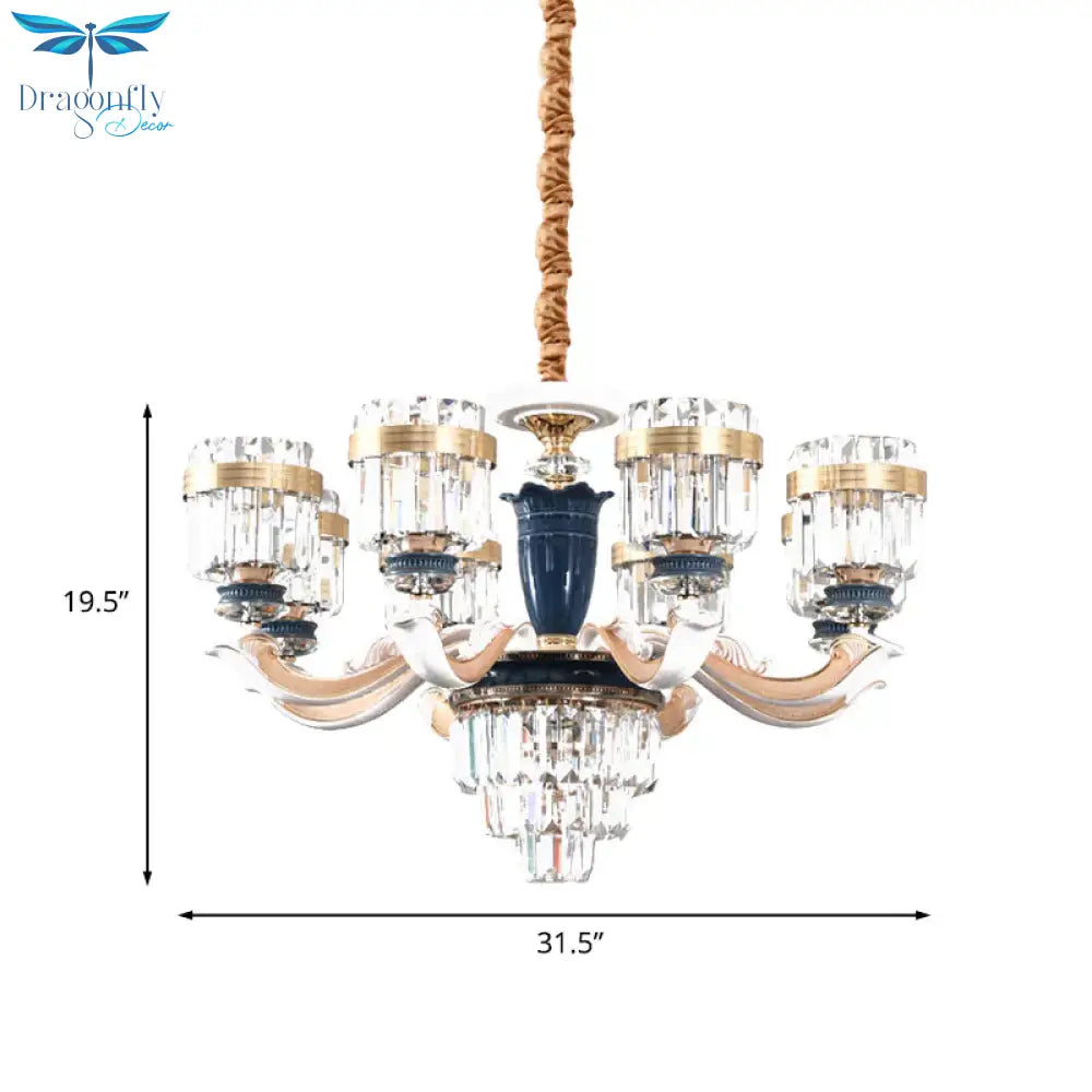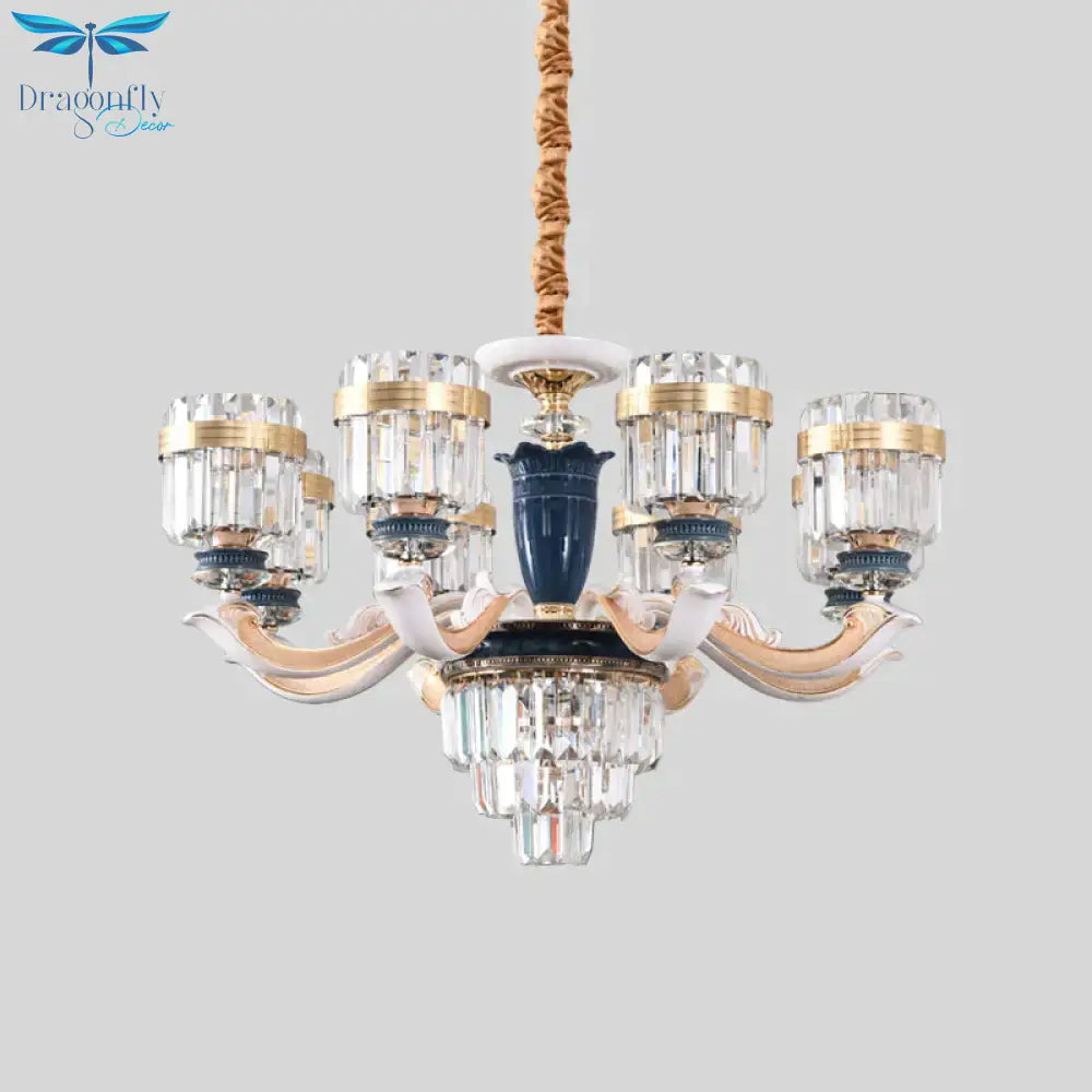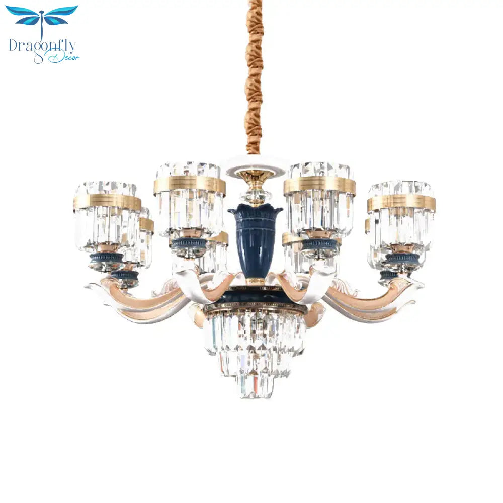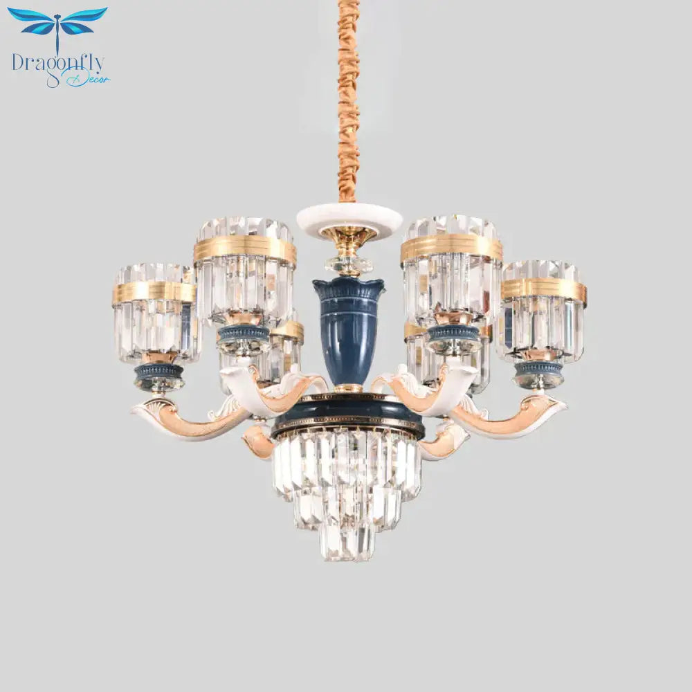 6/8 Heads Chandelier Lighting Traditional Cylindrical Clear Crystal Block Ceiling Hang Fixture