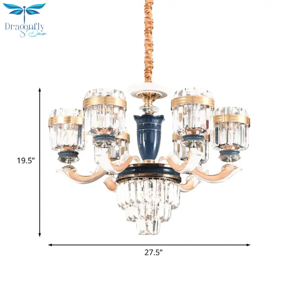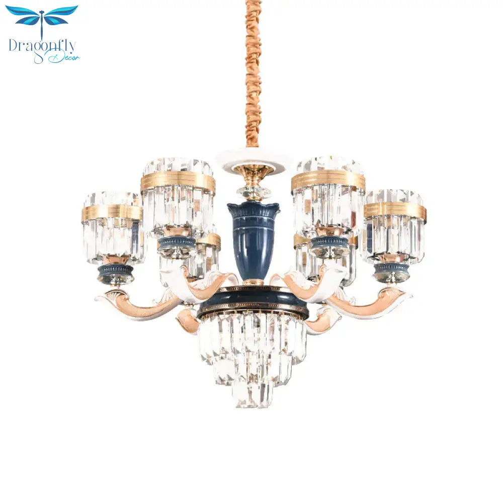 6/8 Heads Chandelier Lighting Traditional Cylindrical Clear Crystal Bl