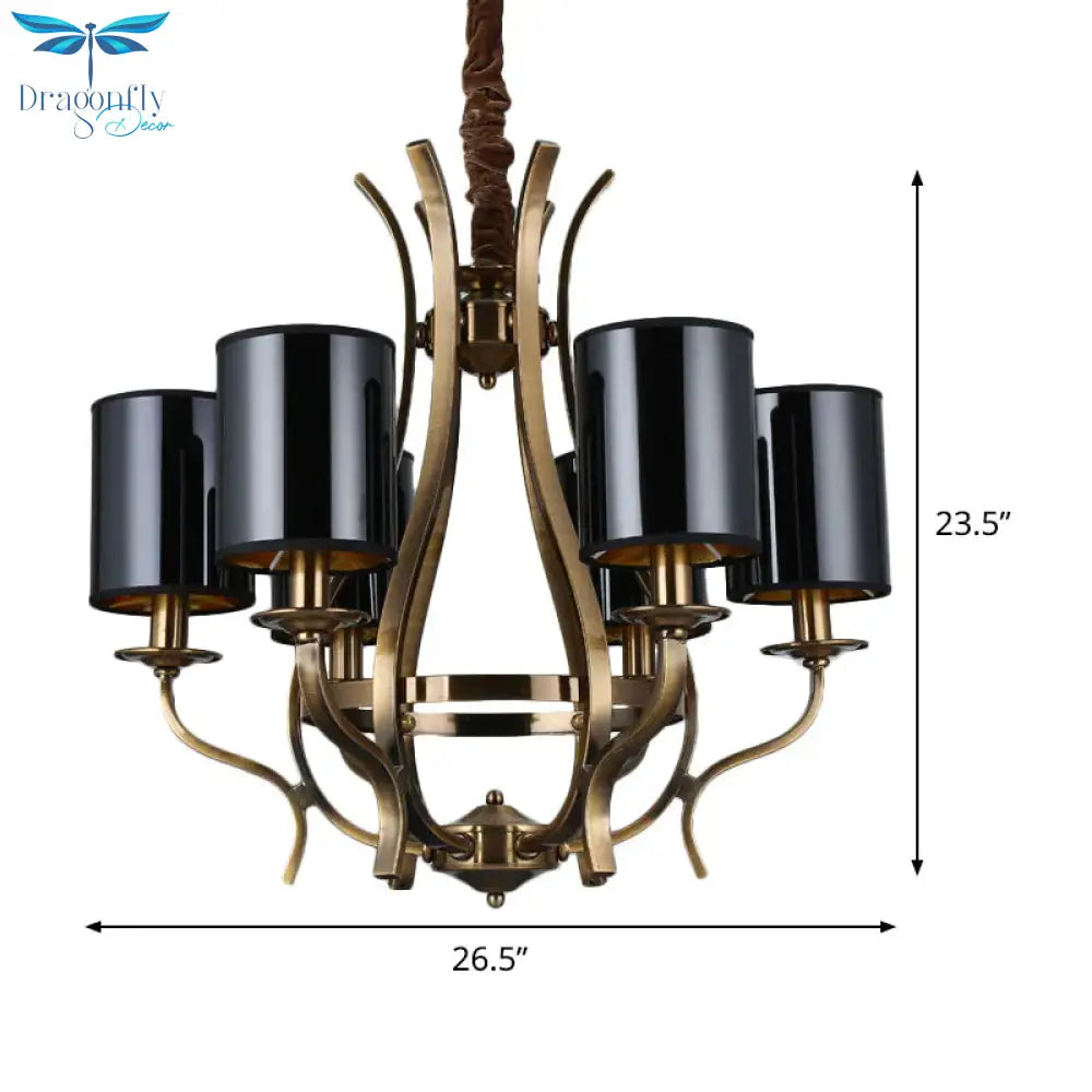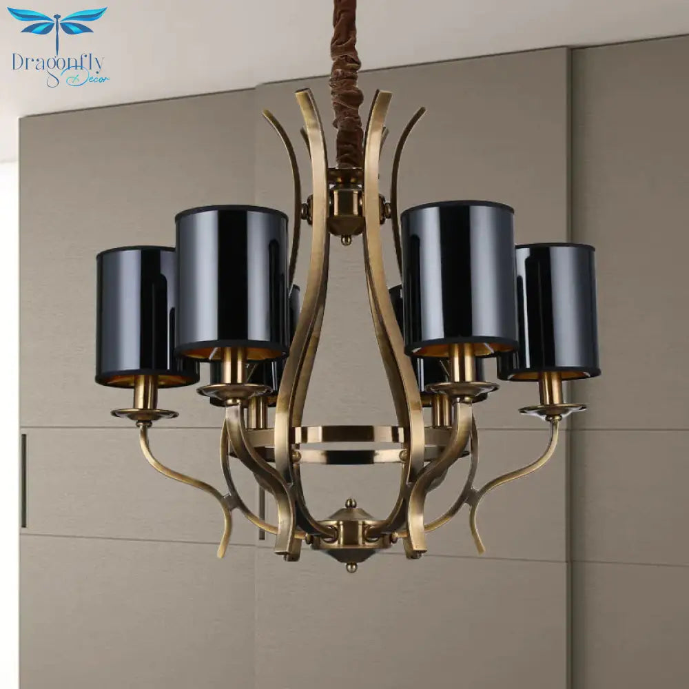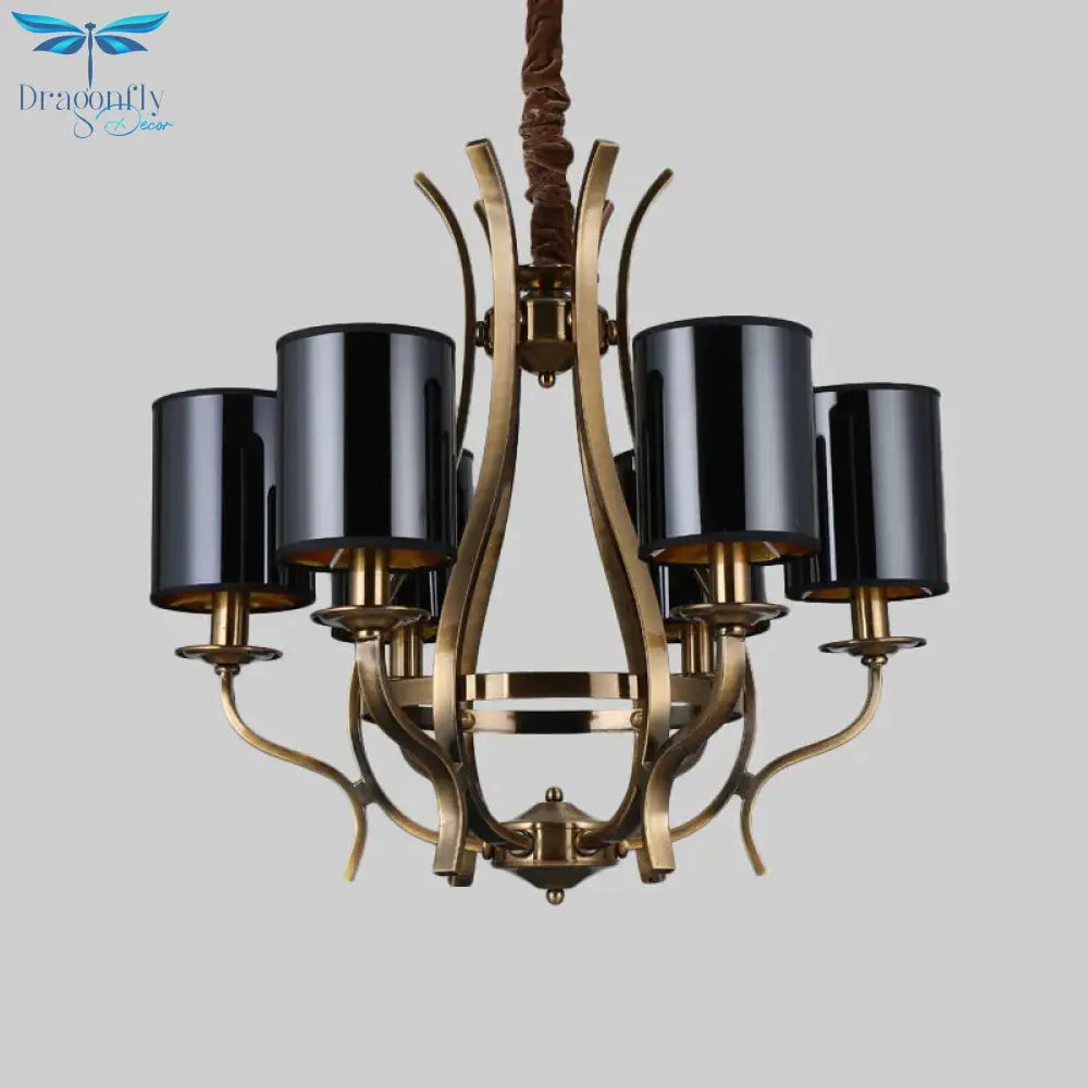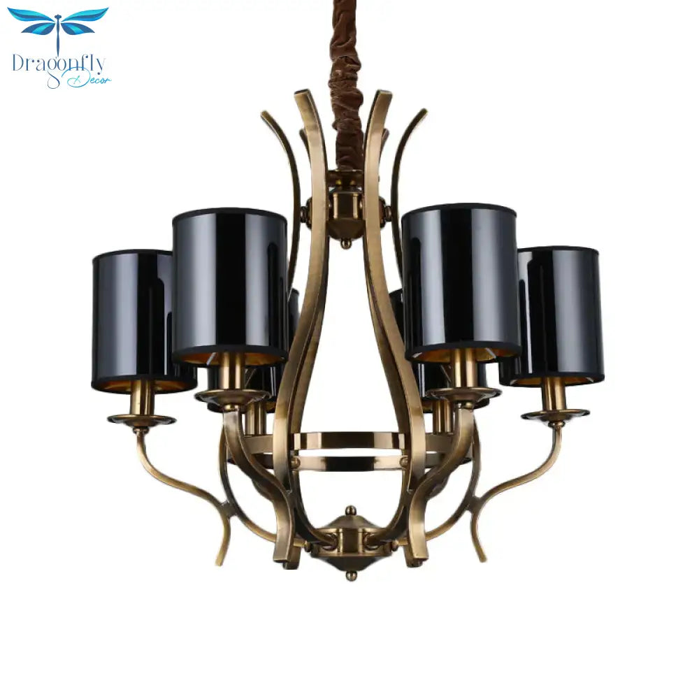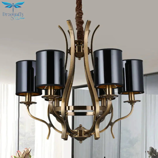 6/8 Heads Pendant Chandelier Countryside Bedroom Metal Hanging Light Fixture with Cylinder PVC Shade in Black