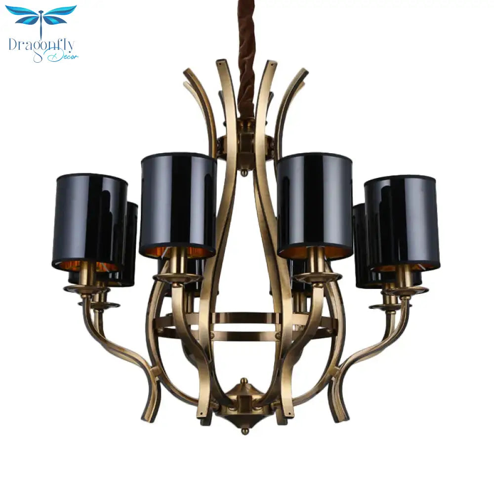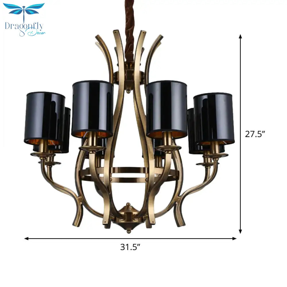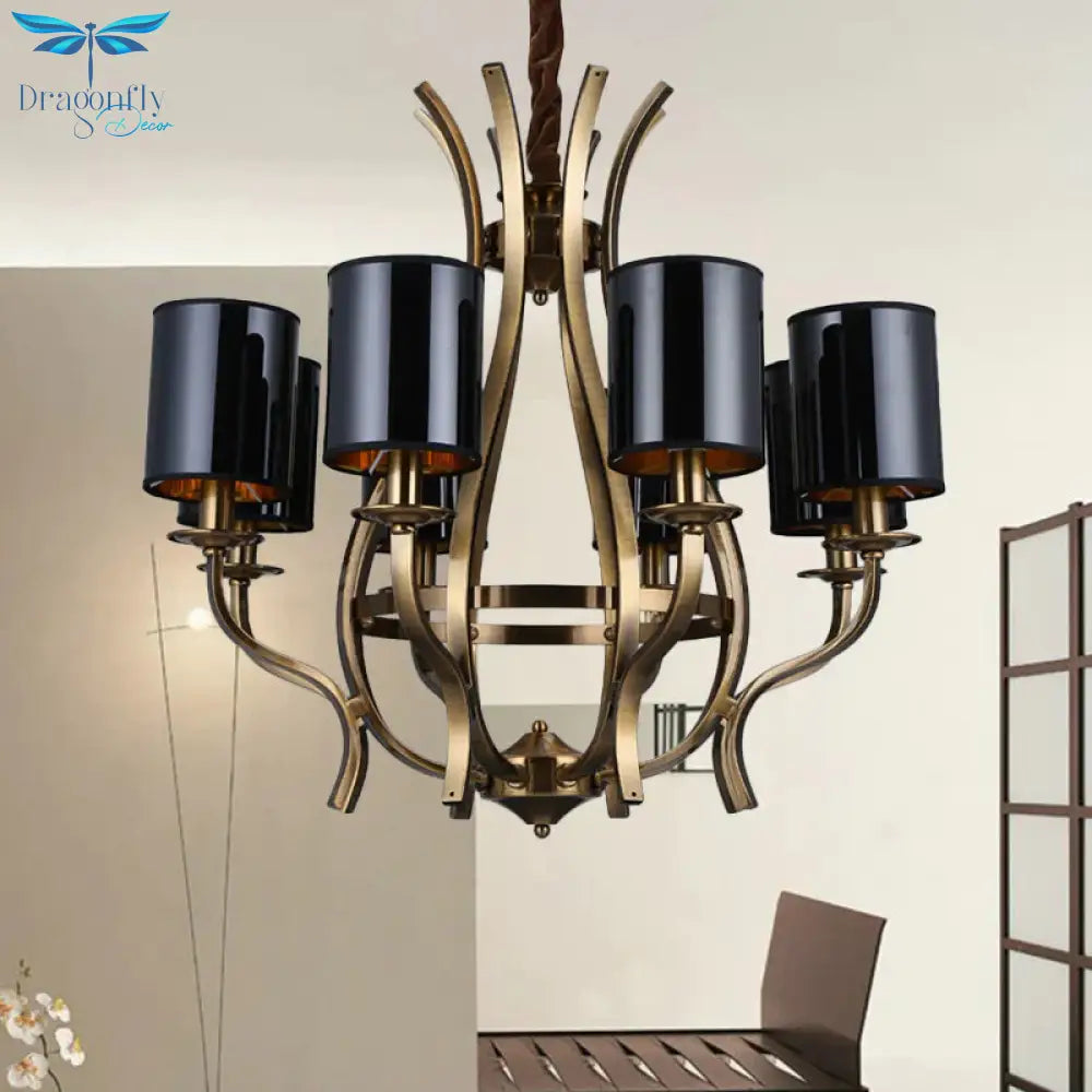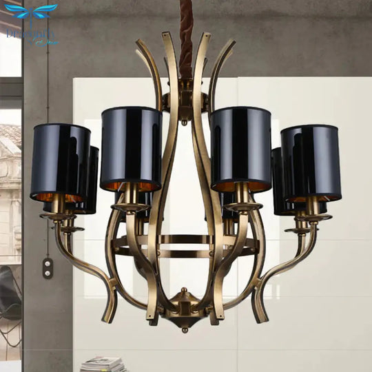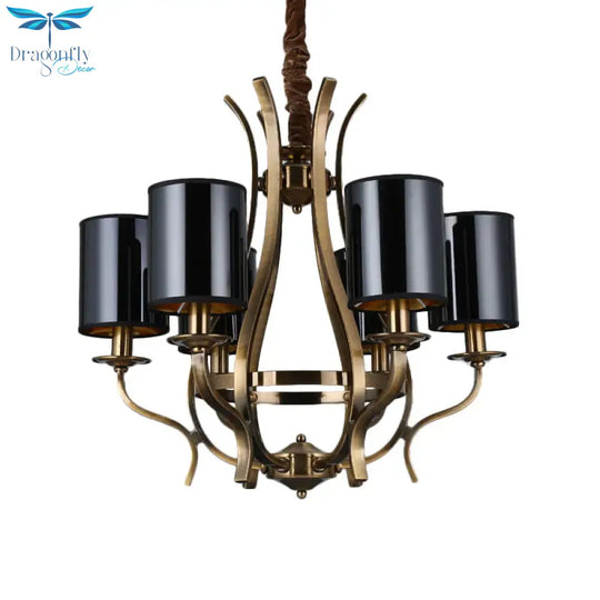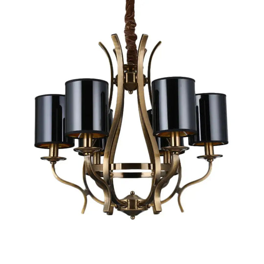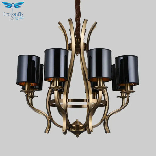 6/8 Heads Pendant Chandelier Countryside Bedroom Metal Hanging Light Fixture with Cylinder PVC Shade in Black
