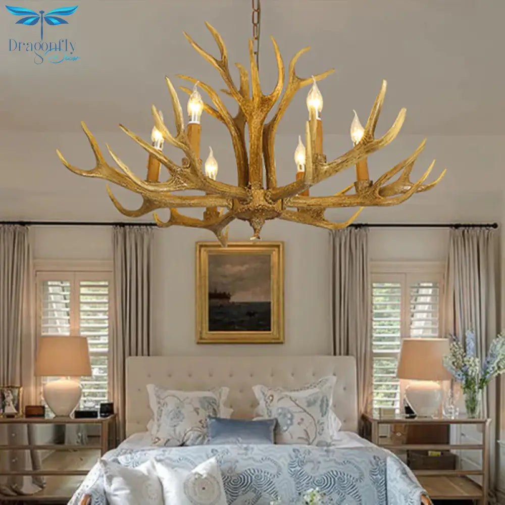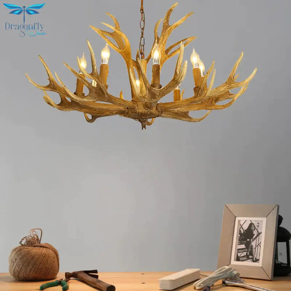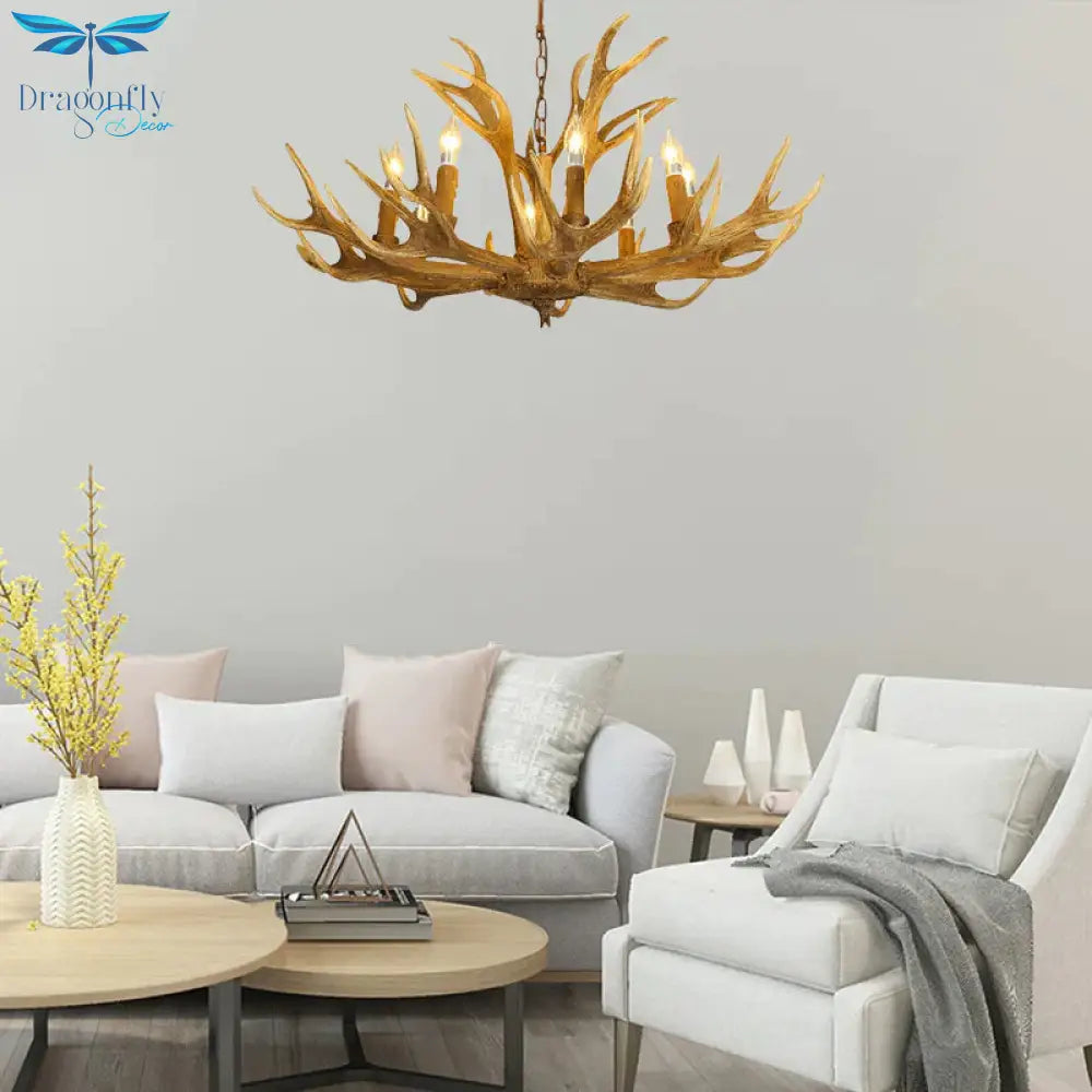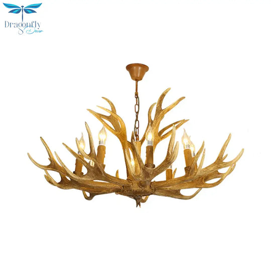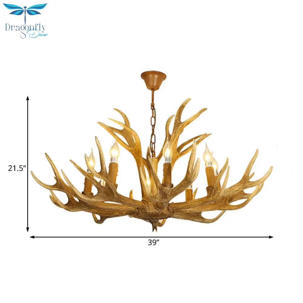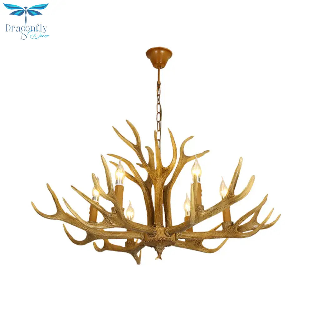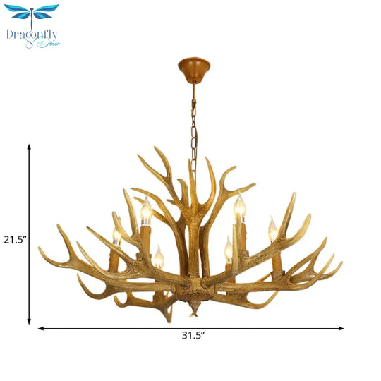 6/8-Light Resin Chandelier Lamp Rural Brown Antlered Shape Living Room