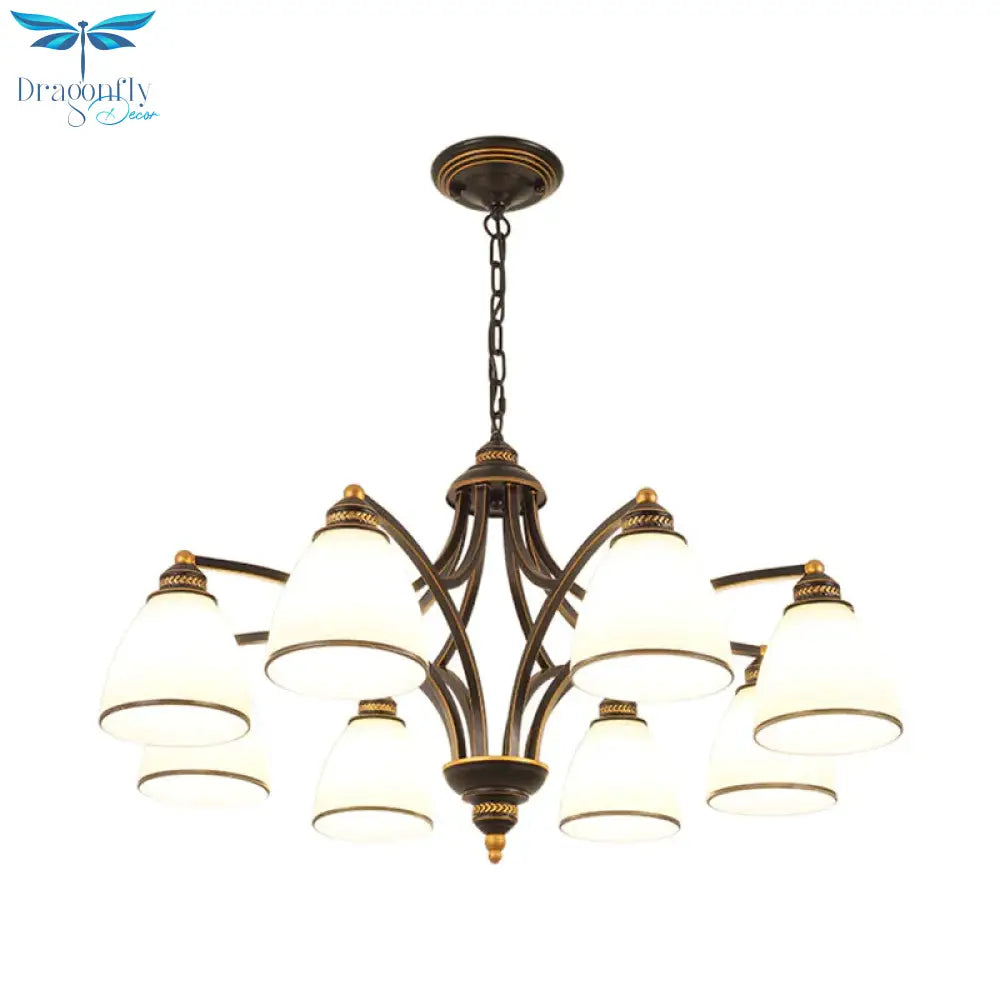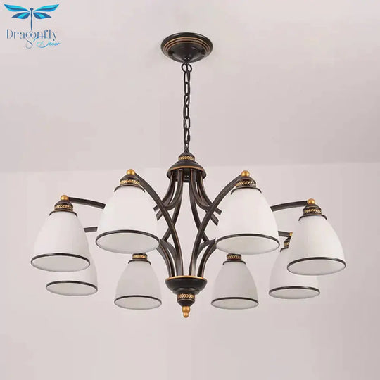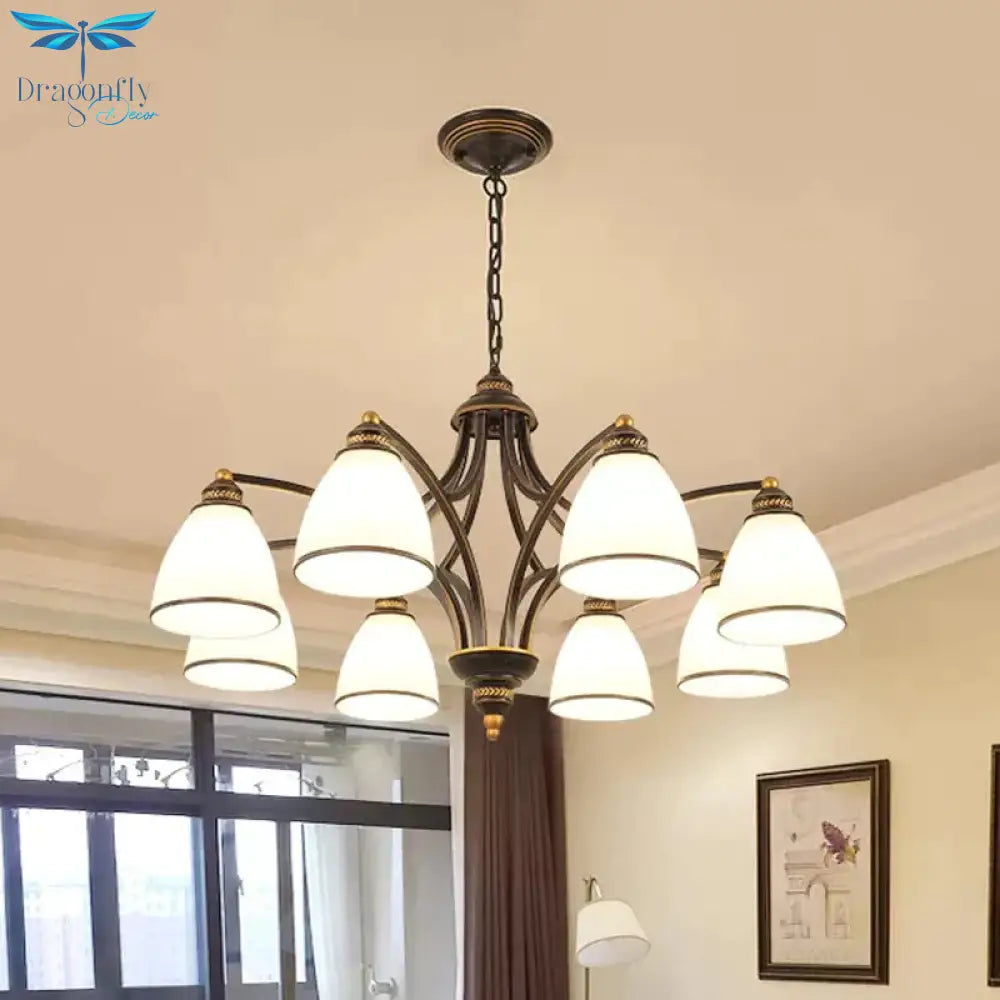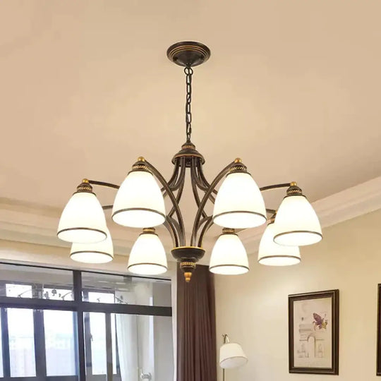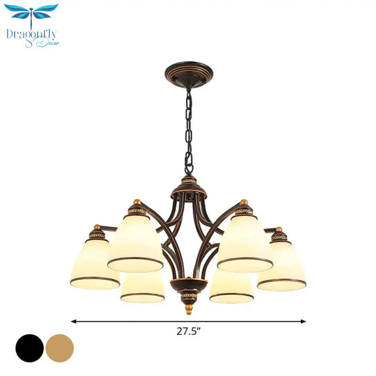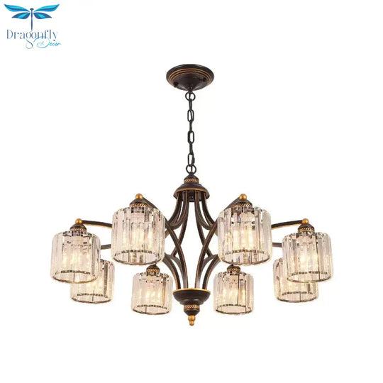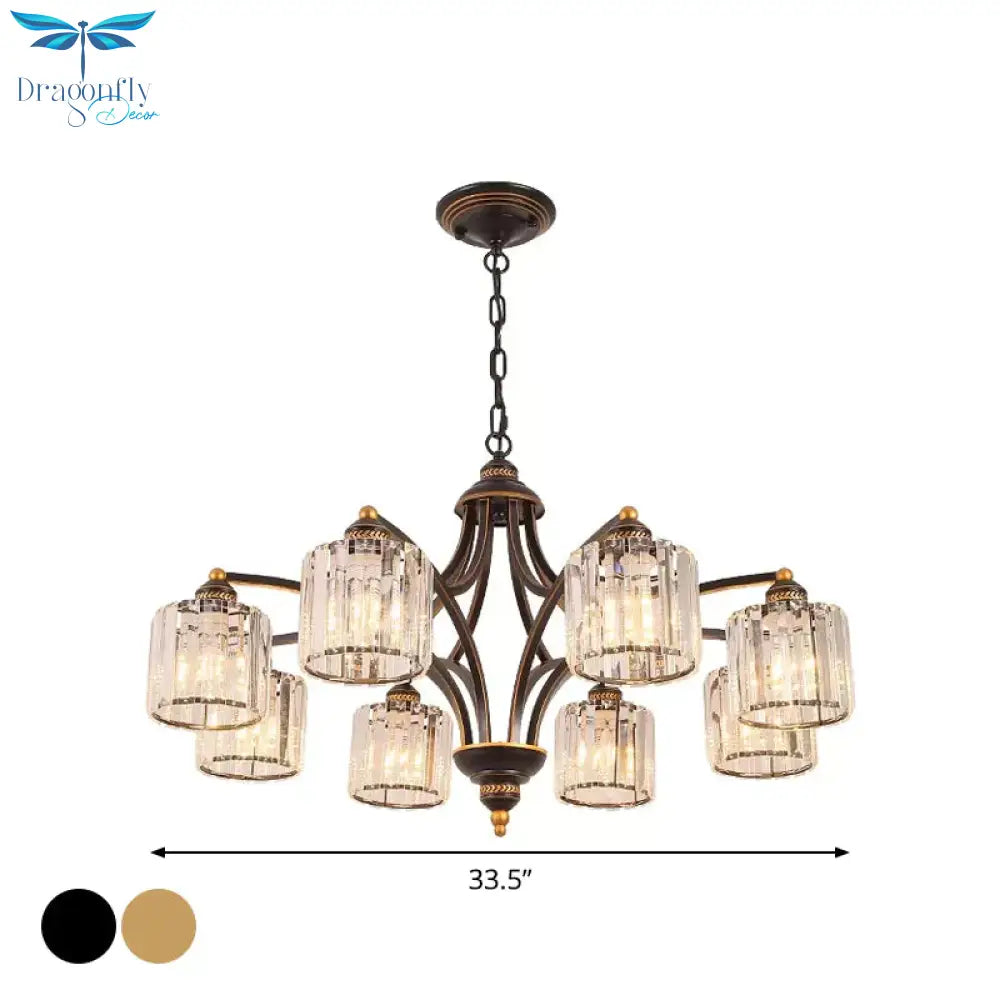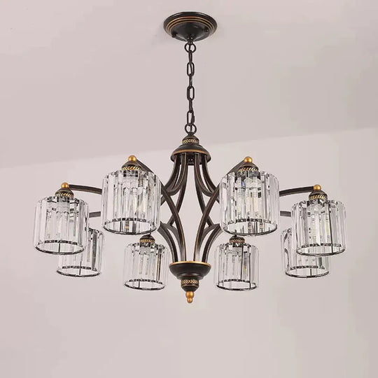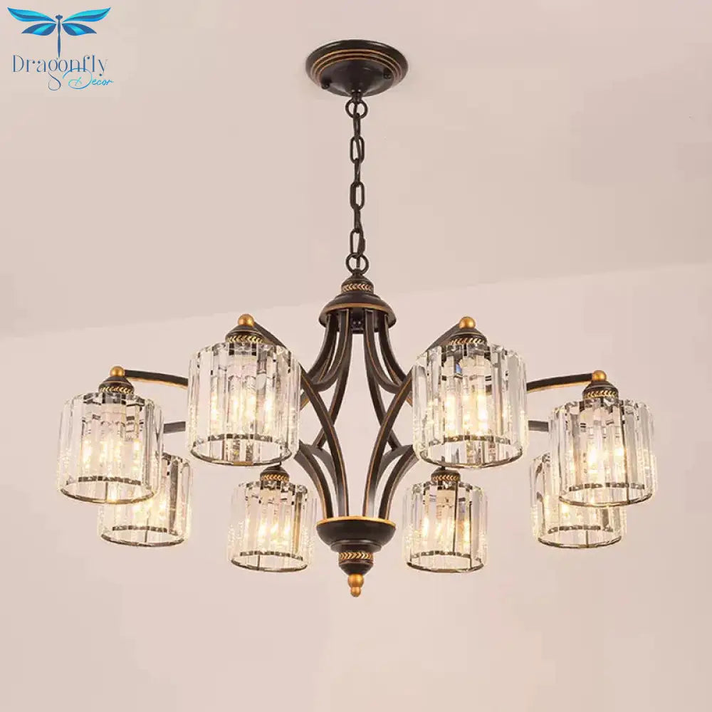 6/8 Lights Chandelier Retro Cylinder/Bell Clear Crystal/White Glass Hanging Pendant in Black/Gold for Living Room