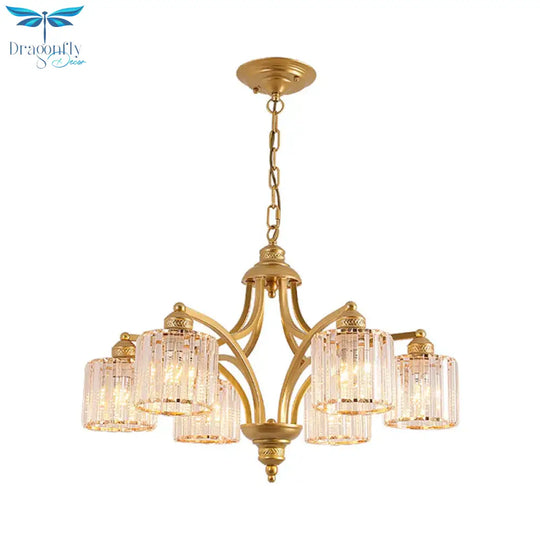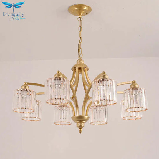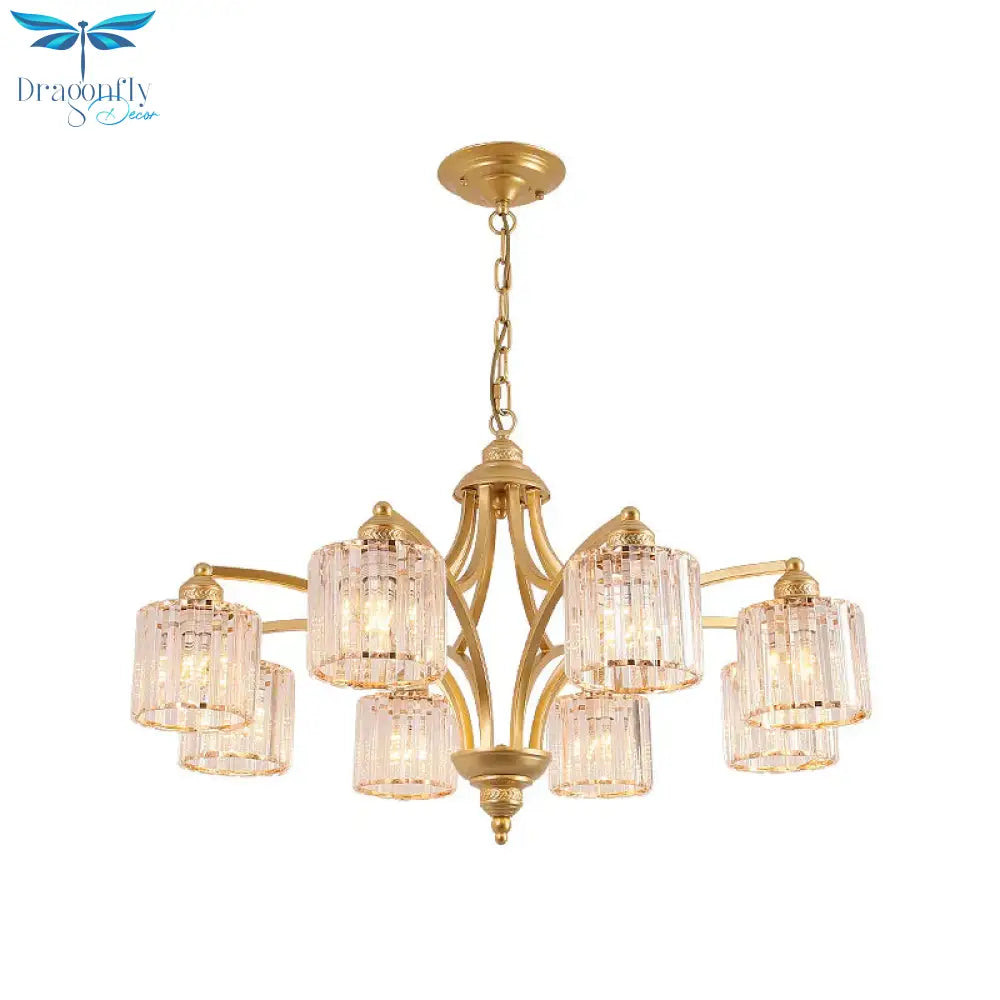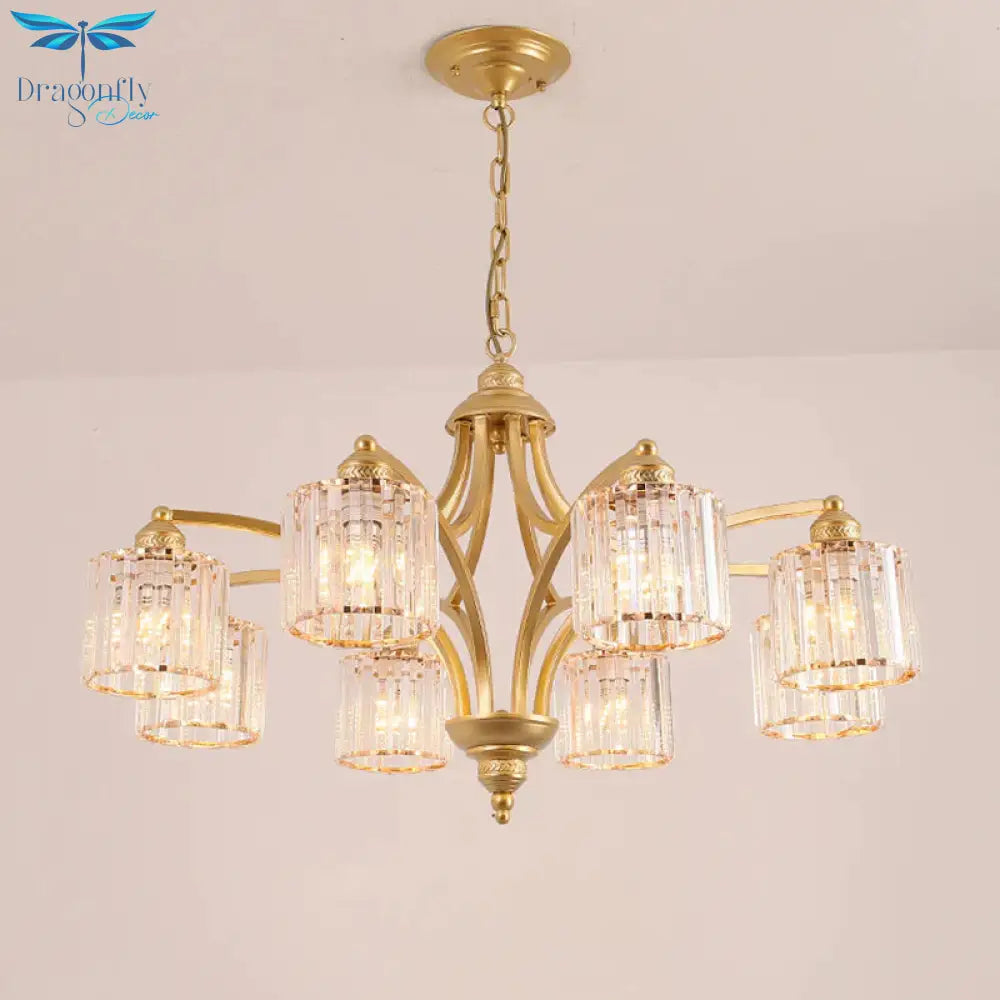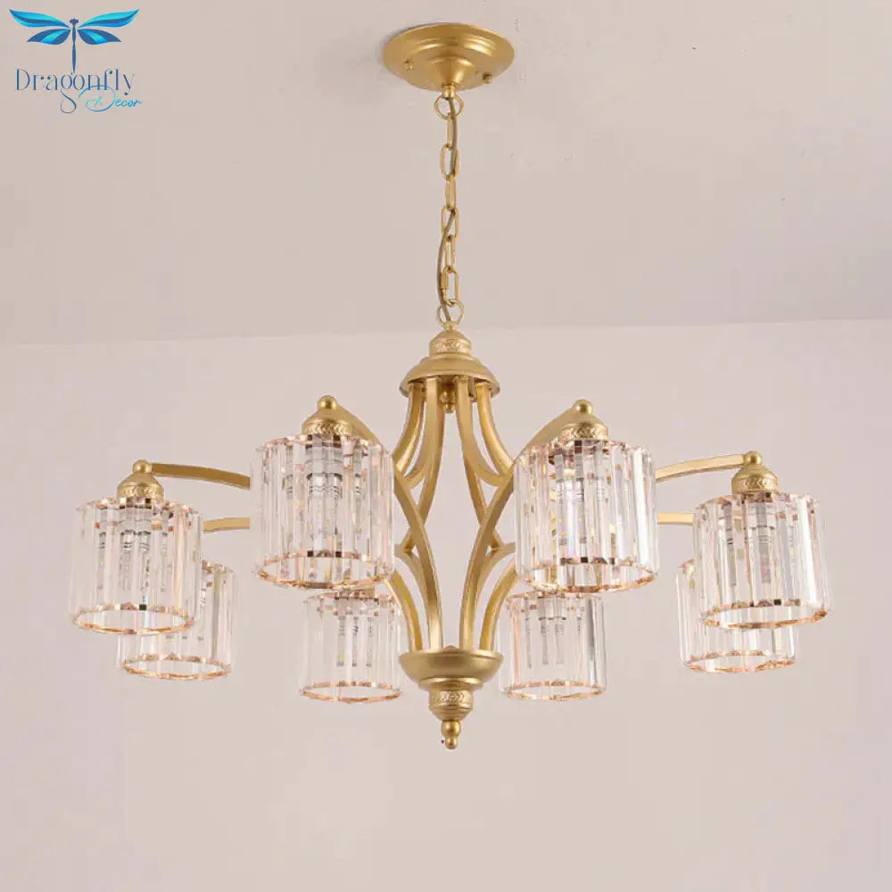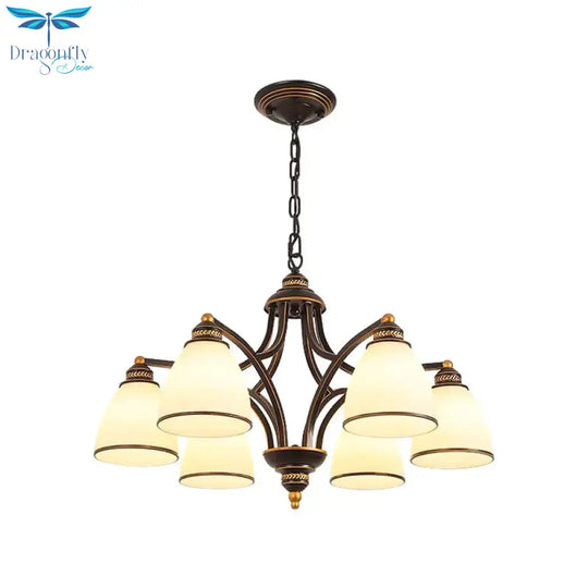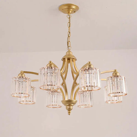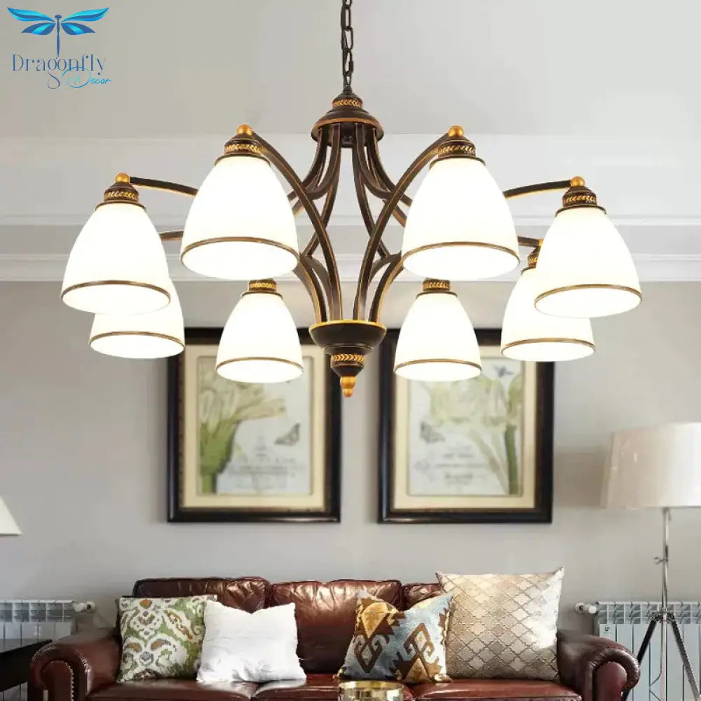 6/8 Lights Chandelier Retro Cylinder/Bell Clear Crystal/White Glass Hanging Pendant in Black/Gold for Living Room