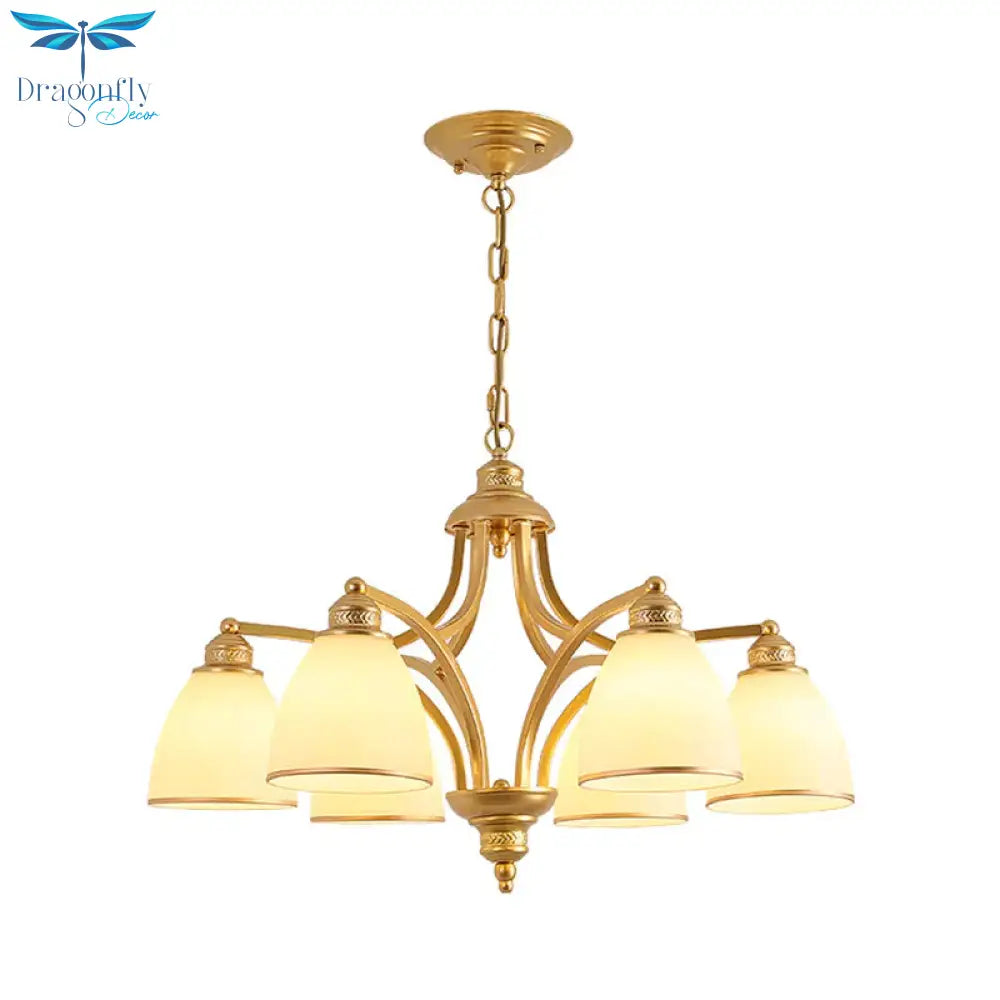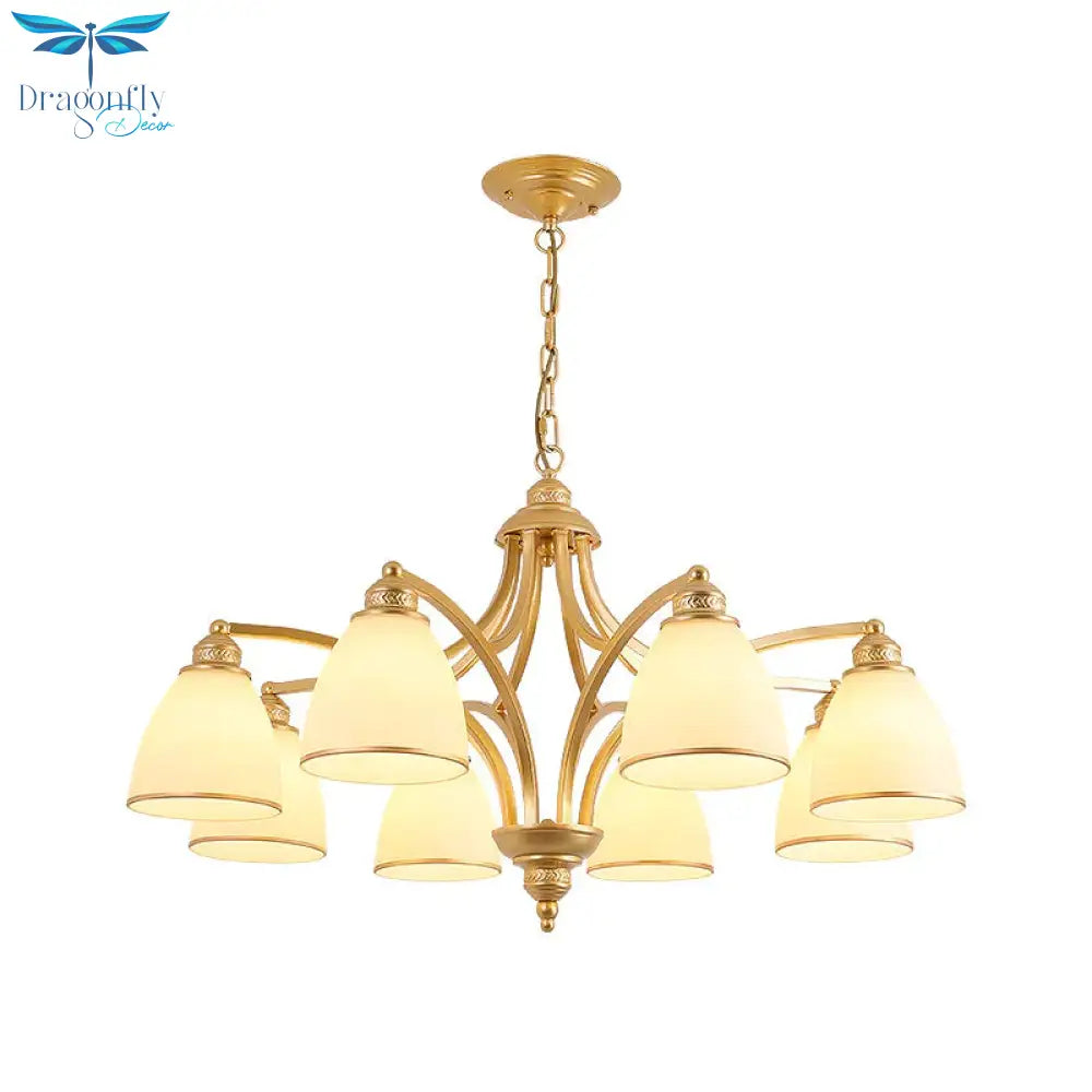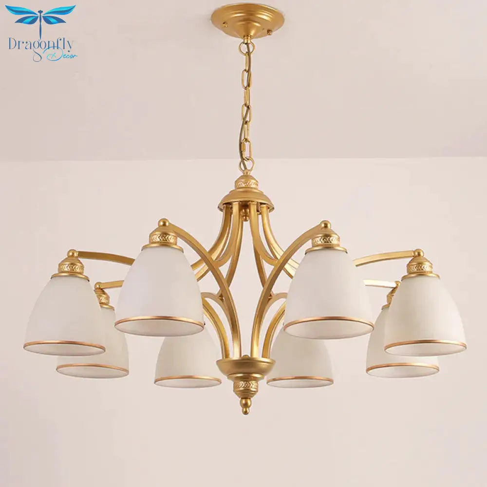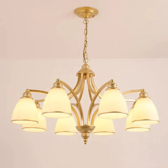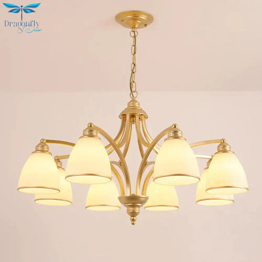 6/8 Lights Chandelier Retro Cylinder/Bell Clear Crystal/White Glass Ha