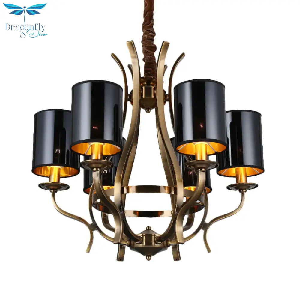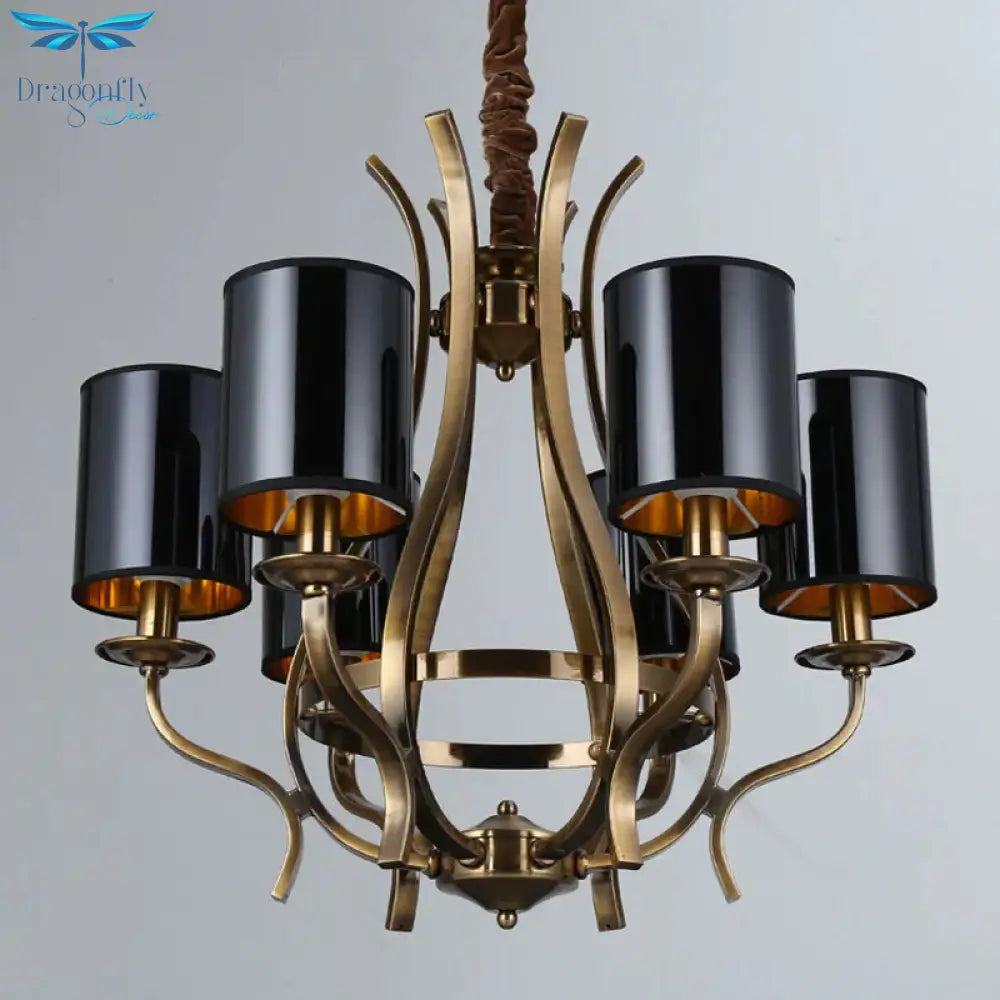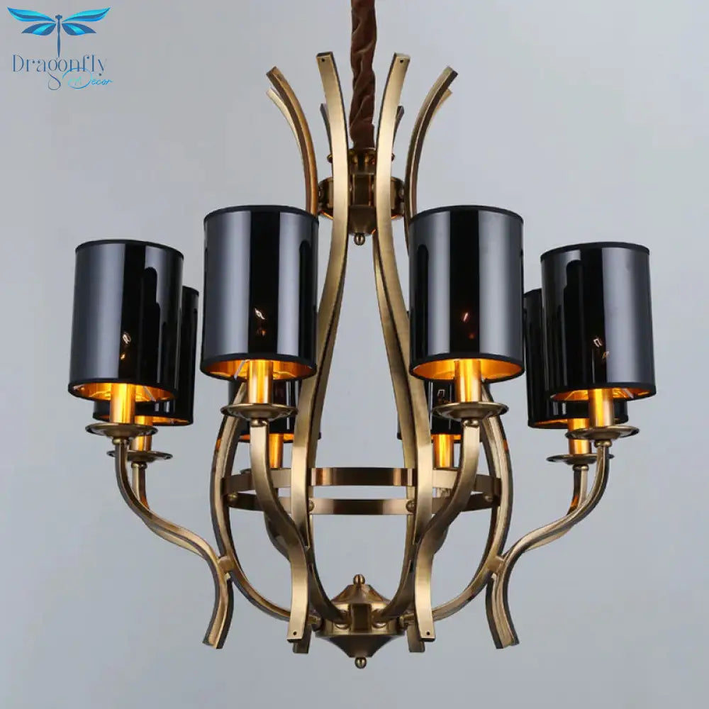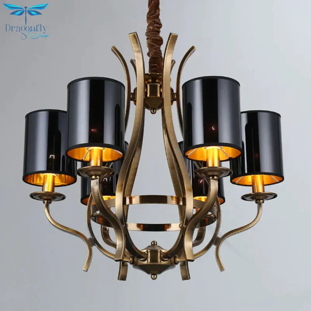 6/8 Lights Cylinder Chandelier Farmhouse Black Fabric Hanging Ceiling