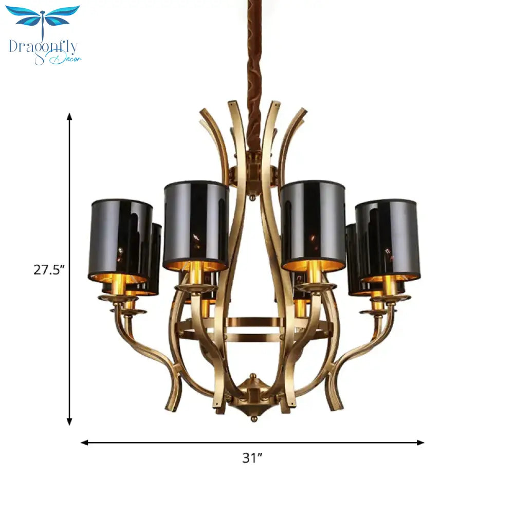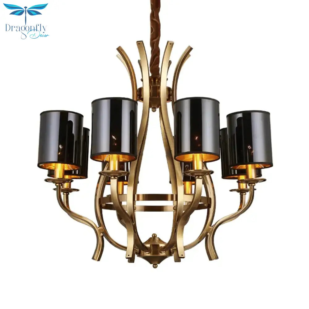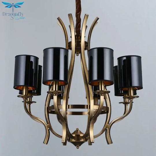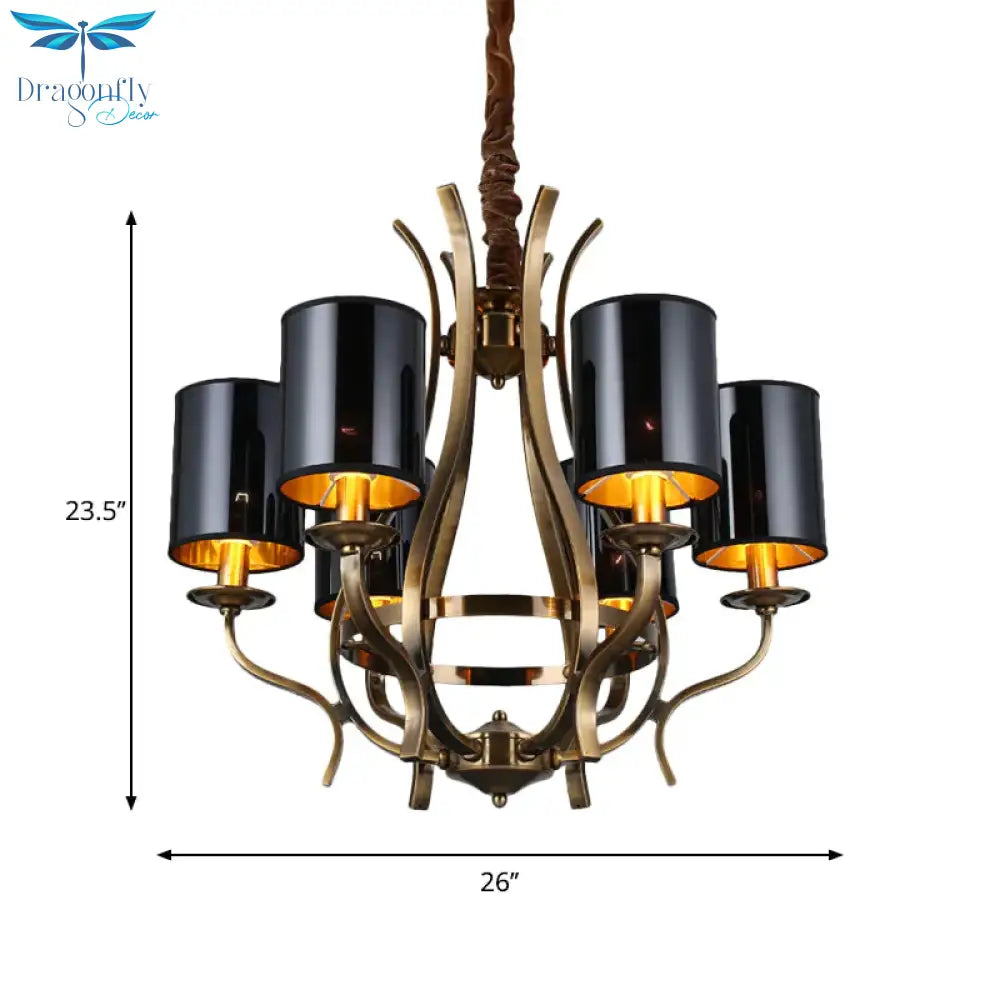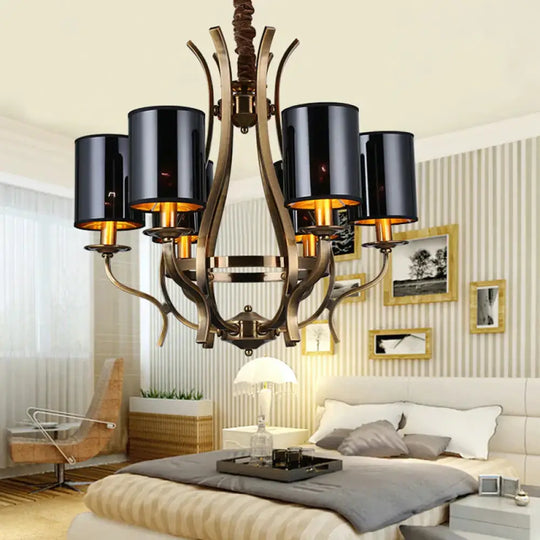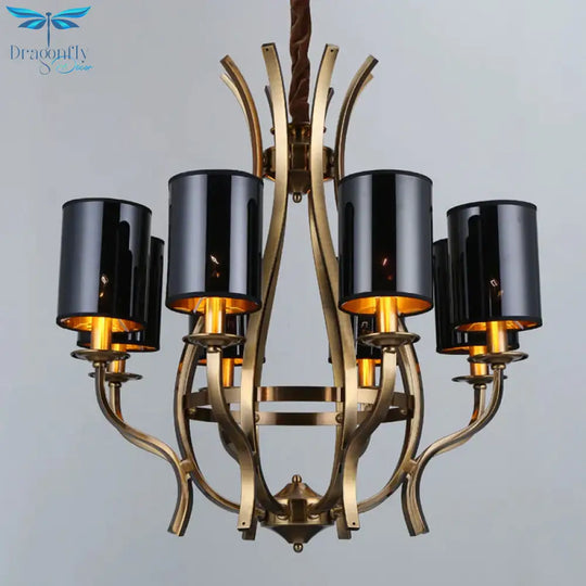 6/8 Lights Cylinder Chandelier Farmhouse Black Fabric Hanging Ceiling