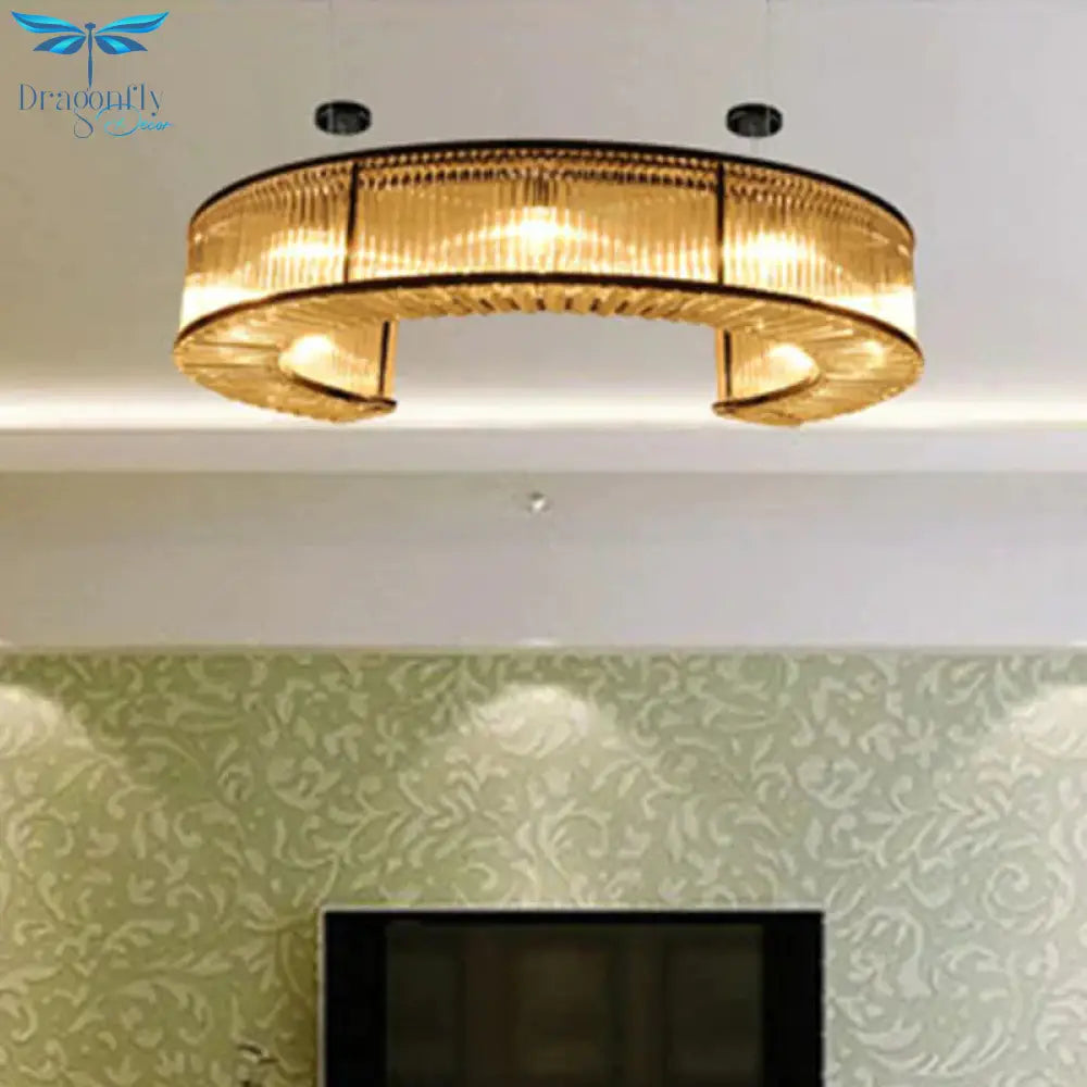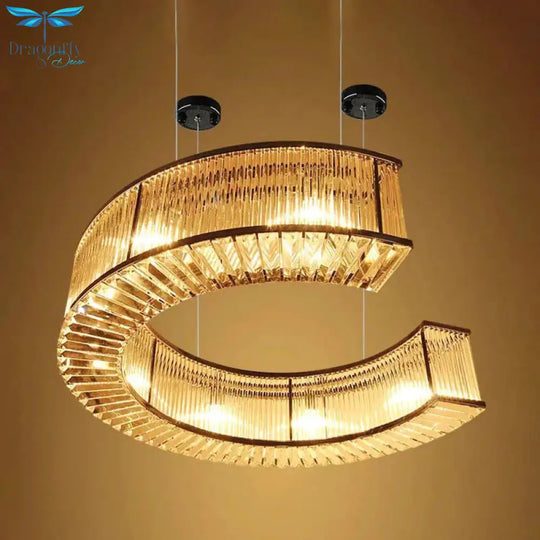 6 Bulbs Crystal Block Hanging Chandelier Vintage Gold C-Shaped Living