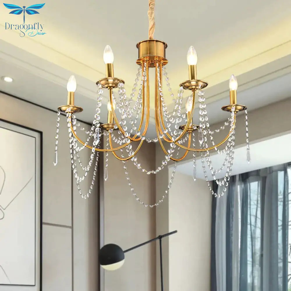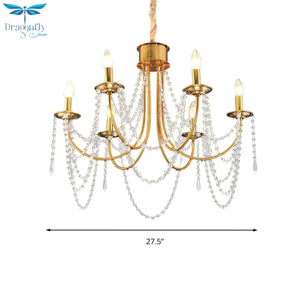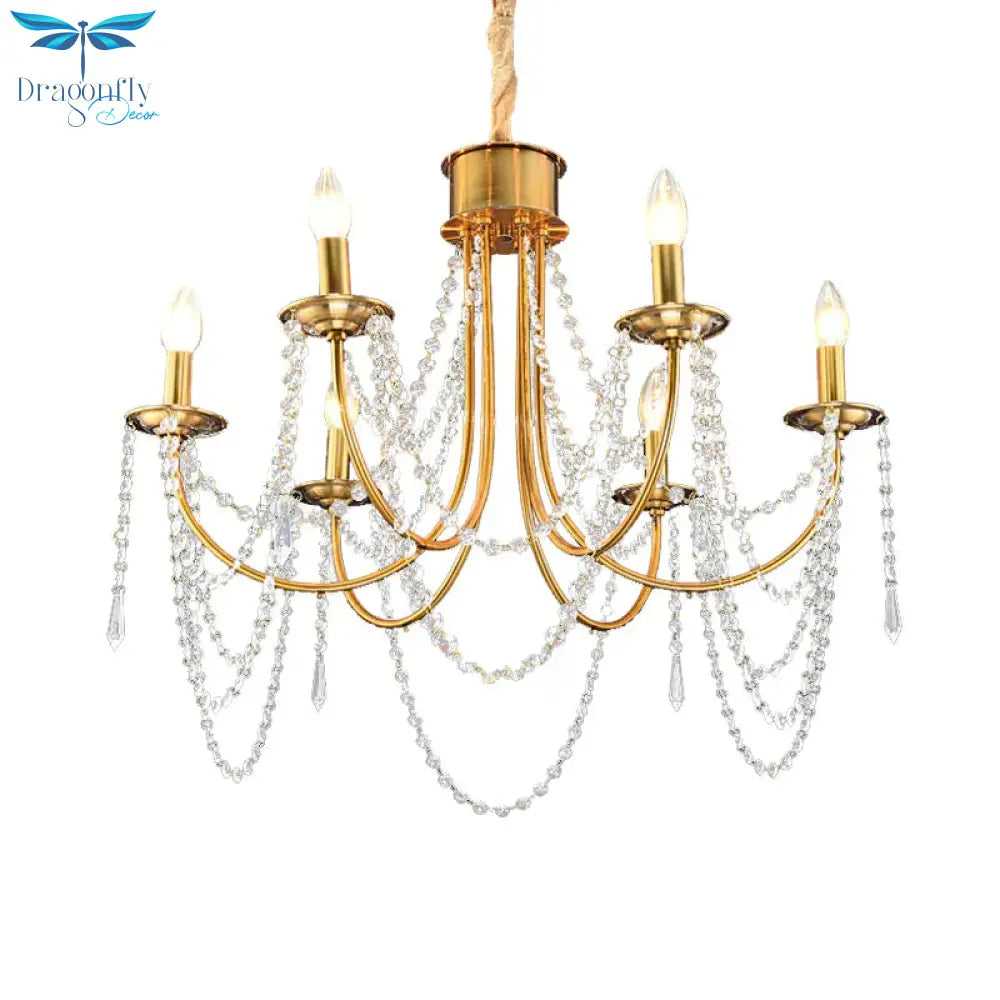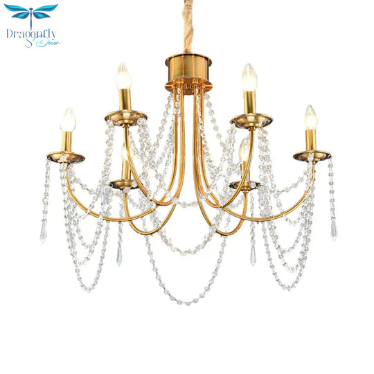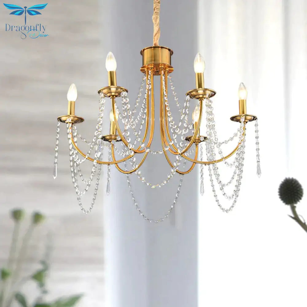 6 Heads Candle Style Ceiling Pendant Light Modern Gold Crystal Beaded Ceiling Chandelier