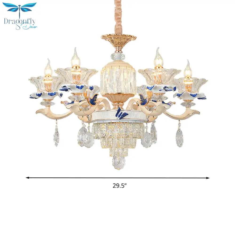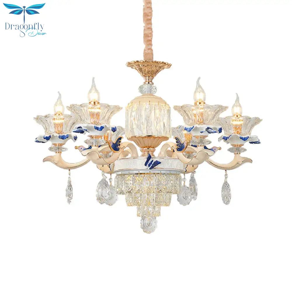 6 Heads Dining Room Chandelier Lamp Tradition Gold Hanging Light Fixtu
