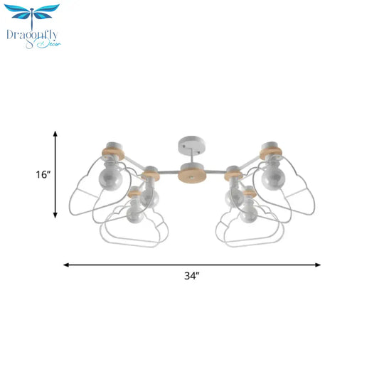 6-Light Bedroom Hanging Chandelier Cartoon White Pendant Lamp with Clo