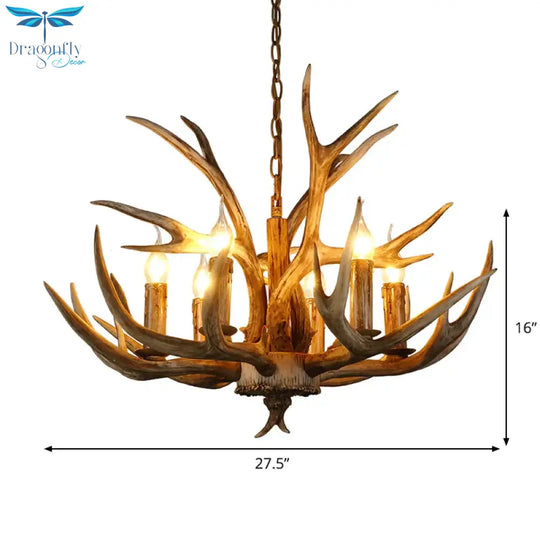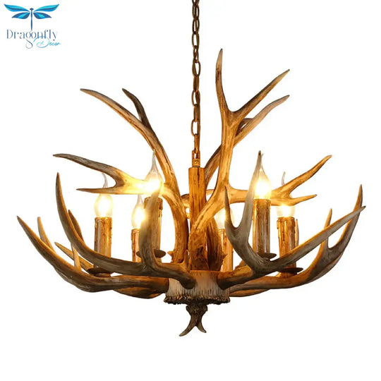 6 Lights Deer Horn Ceiling Pendant Rural Brown Resin Chandelier Lamp for Living Room