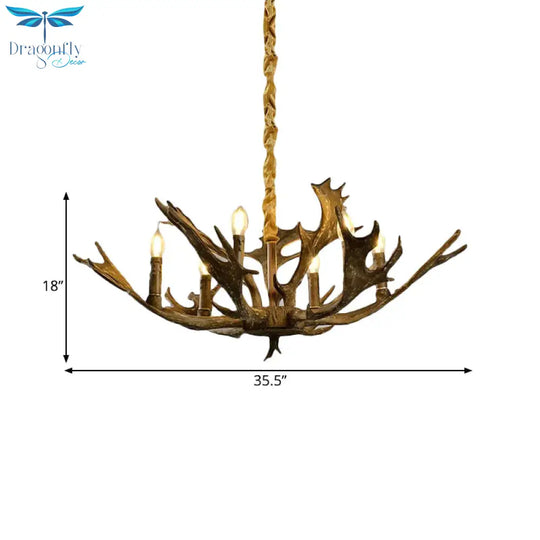 6 Lights Resin Chandelier Lamp Farmhouse Brown Candle Shape Living Roo