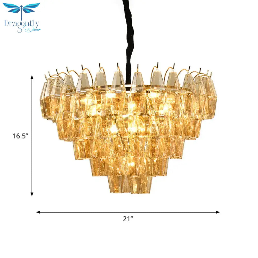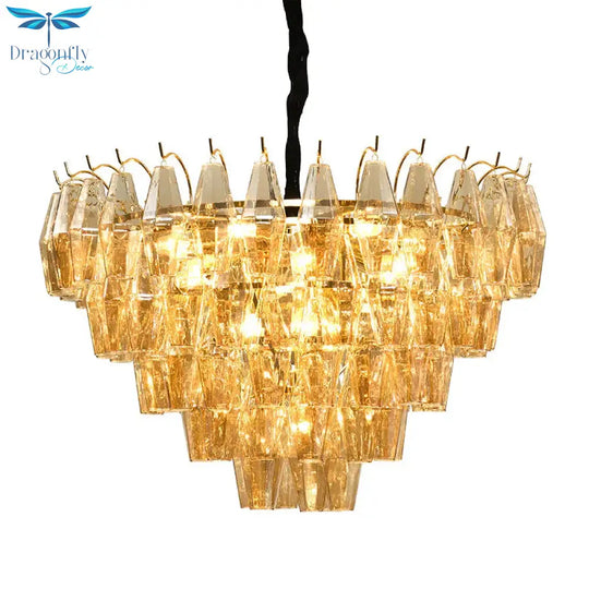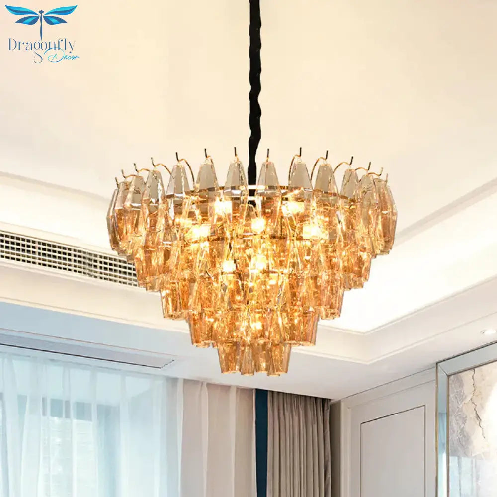 7 Lights Chandelier Traditional Living Room Pendant Lamp with Conical Amber Glass Shade
