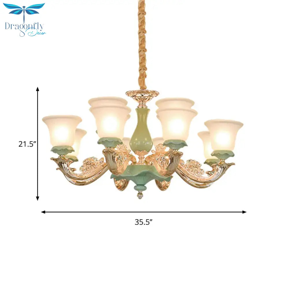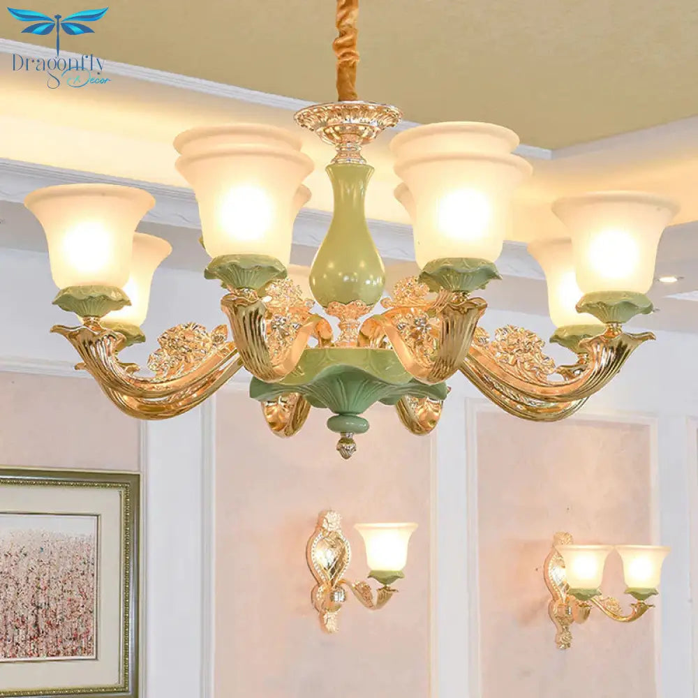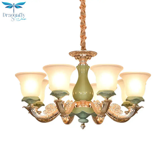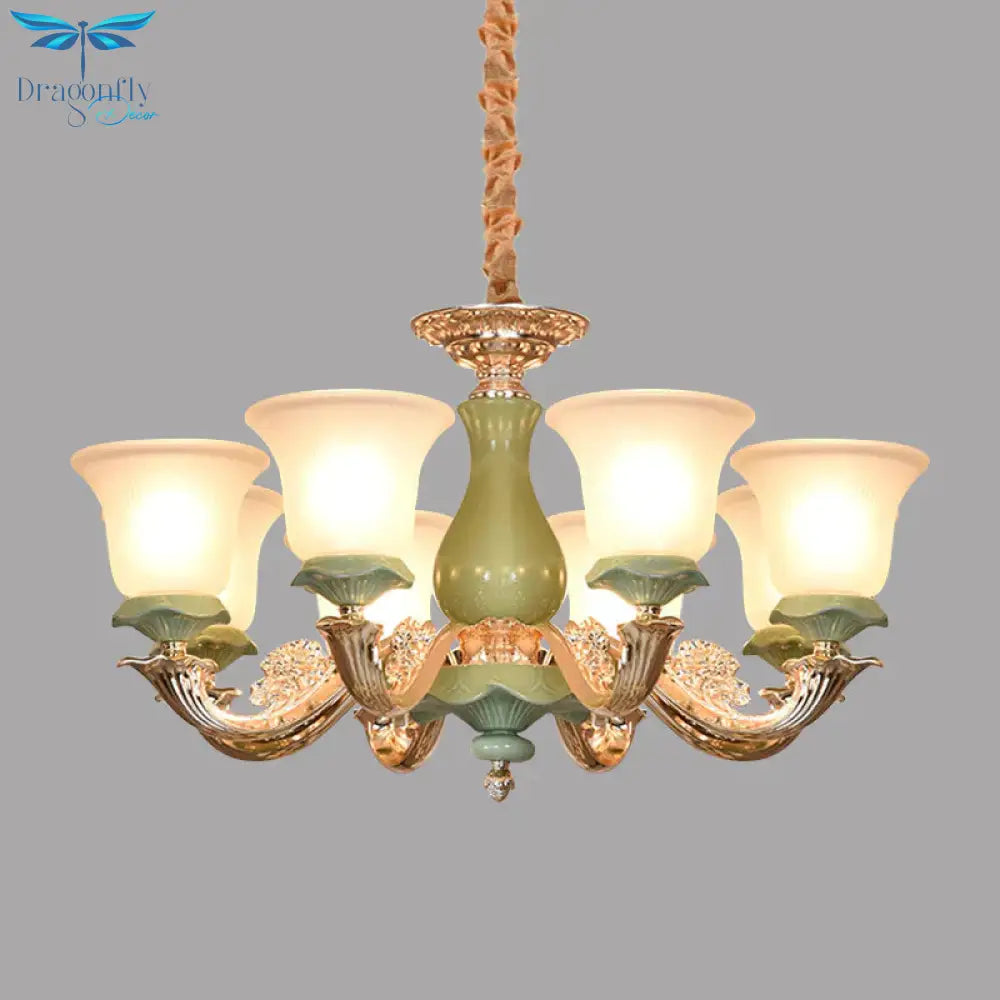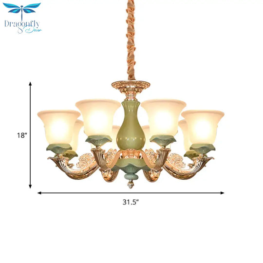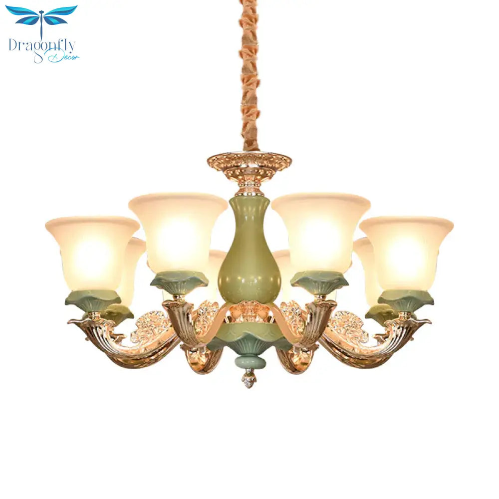 8/12 Lights Flared Shade Suspension Pendant Traditional Style Green Opal Glass Chandelier Lighting