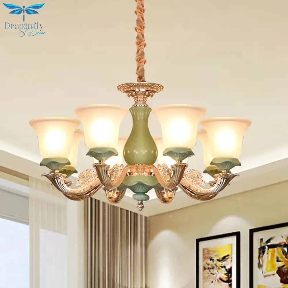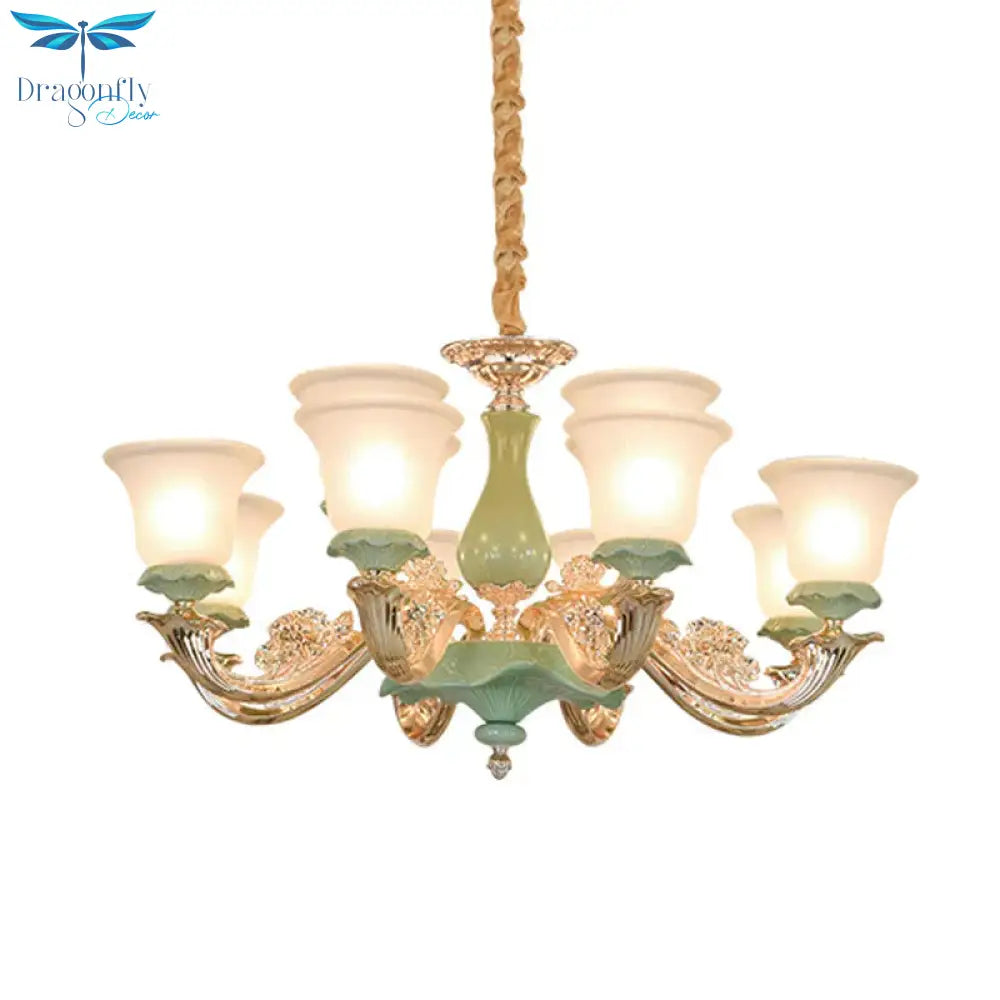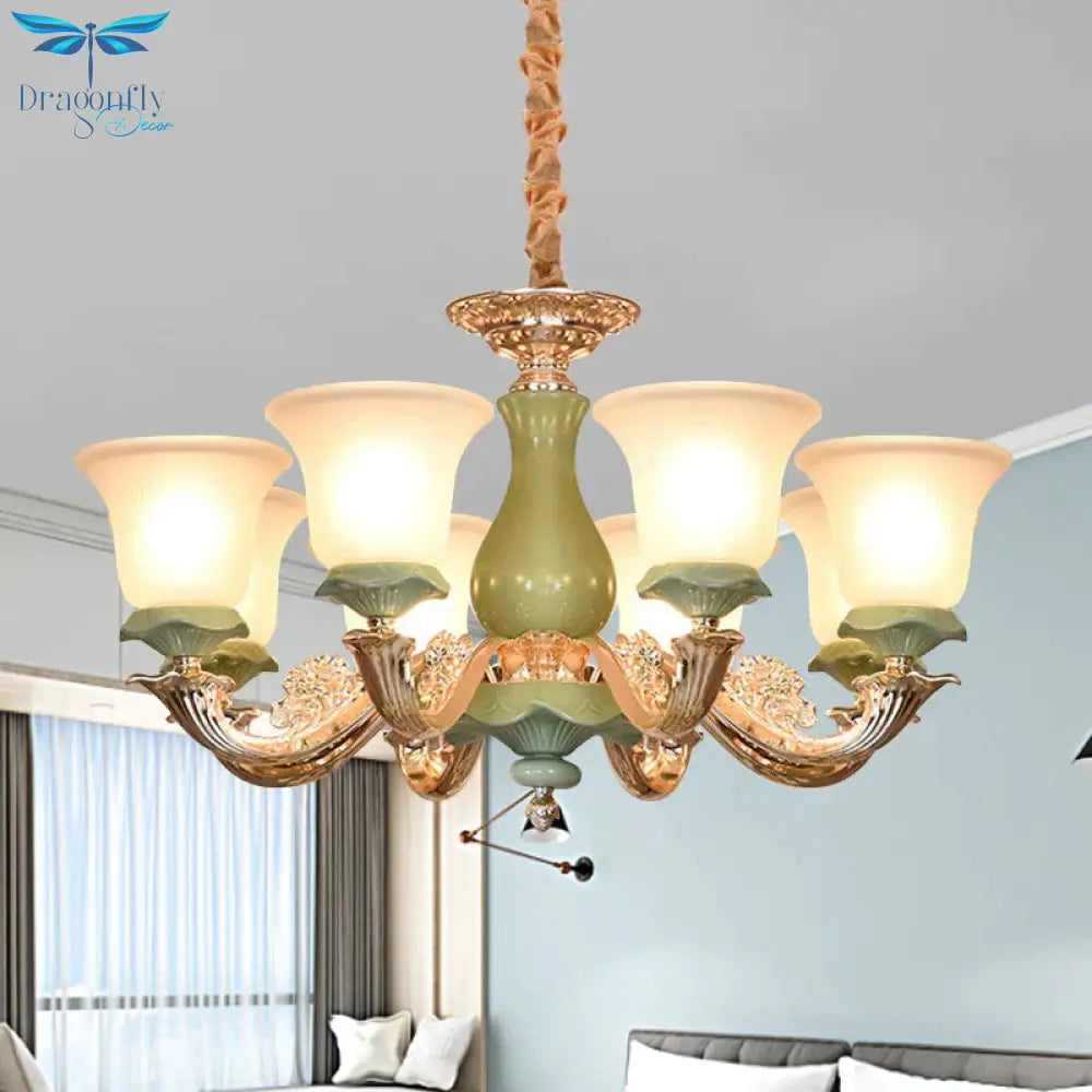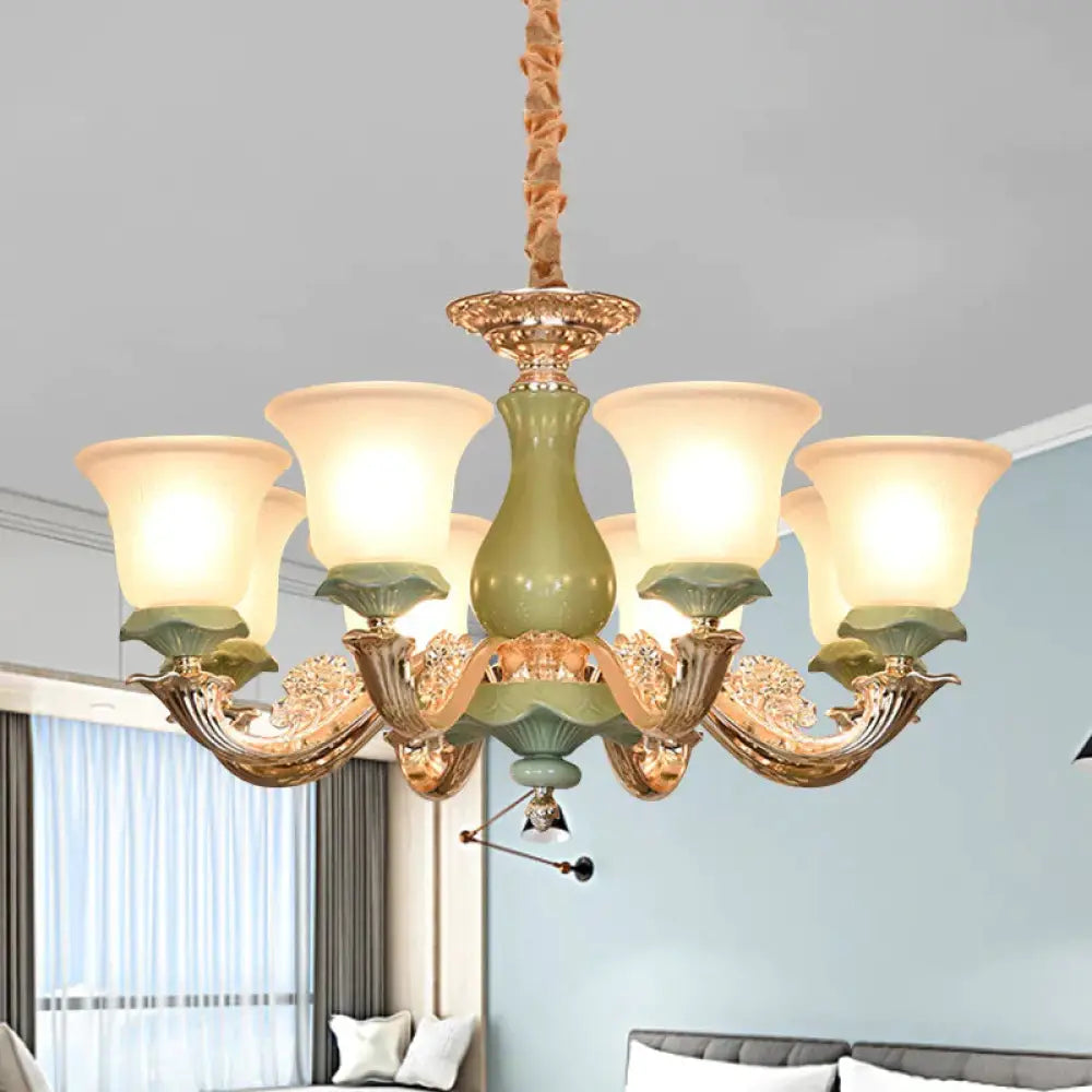 8/12 Lights Flared Shade Suspension Pendant Traditional Style Green Opal Glass Chandelier Lighting