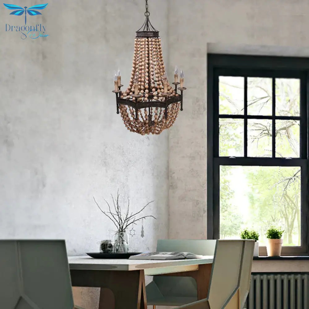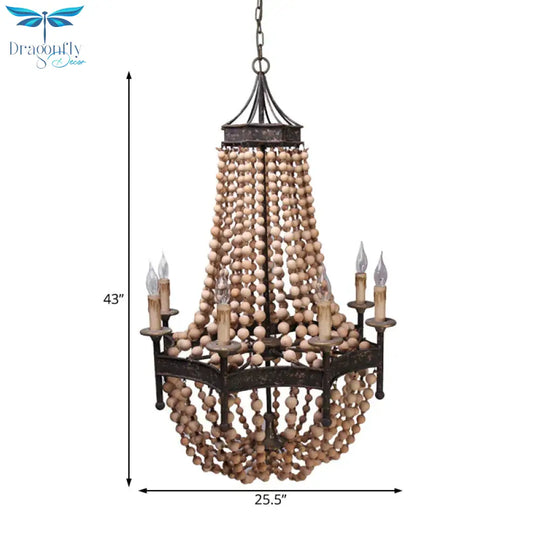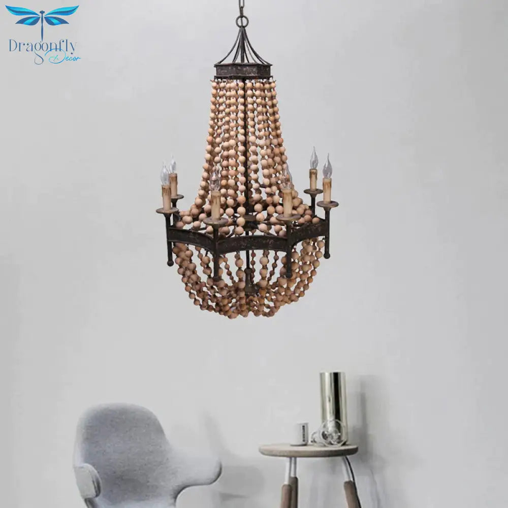 8 Heads Candle Ceiling Chandelier Traditional Wood Suspended Lighting