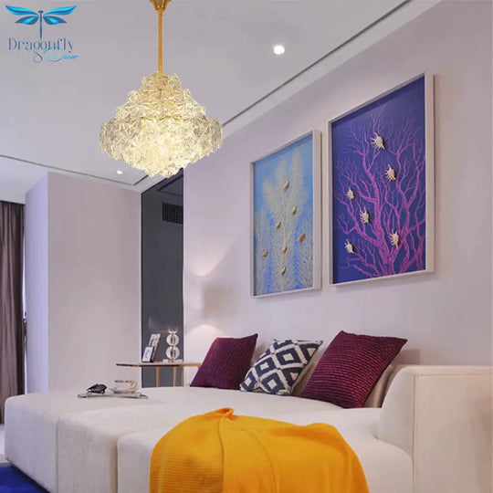 8 Heads Clear Hexagon Glass Suspension Lamp Nordic Gold Top Shape Living Room Hanging Chandelier