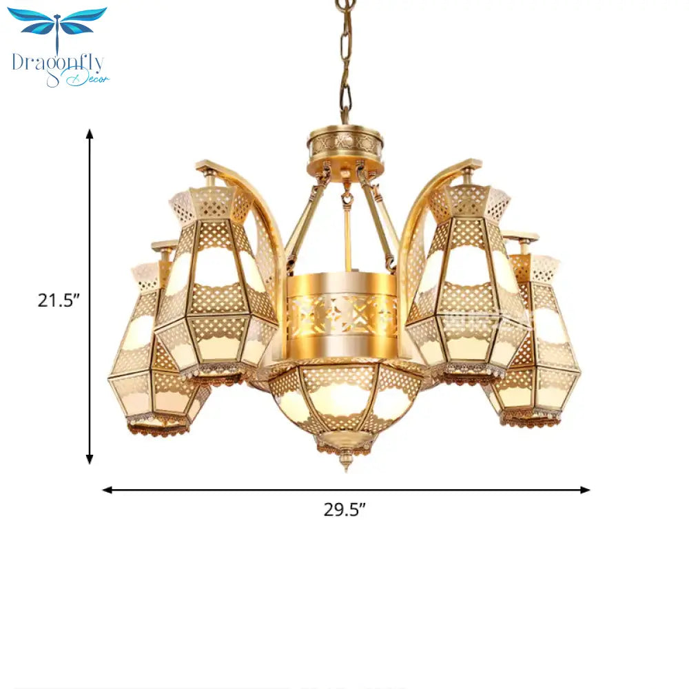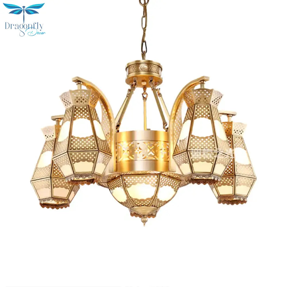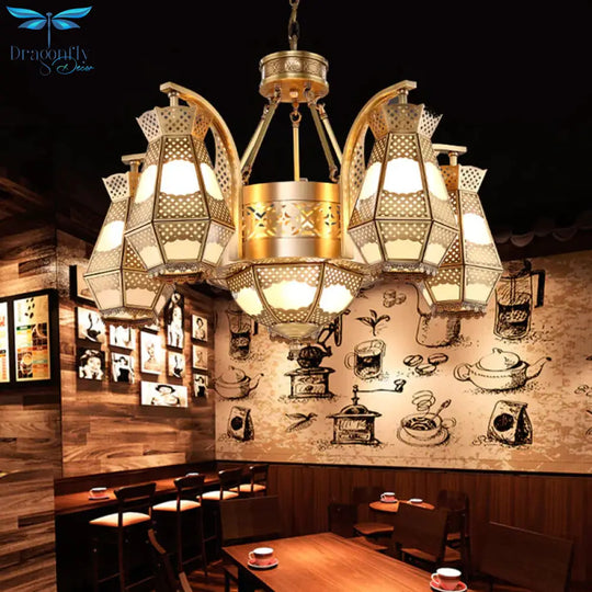 8 Heads Diamond Pendant Chandelier Arab Style Brass Opal Glass Hanging
