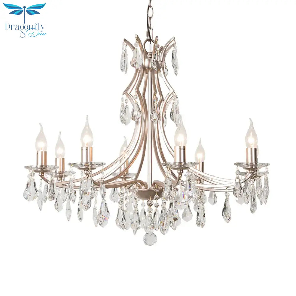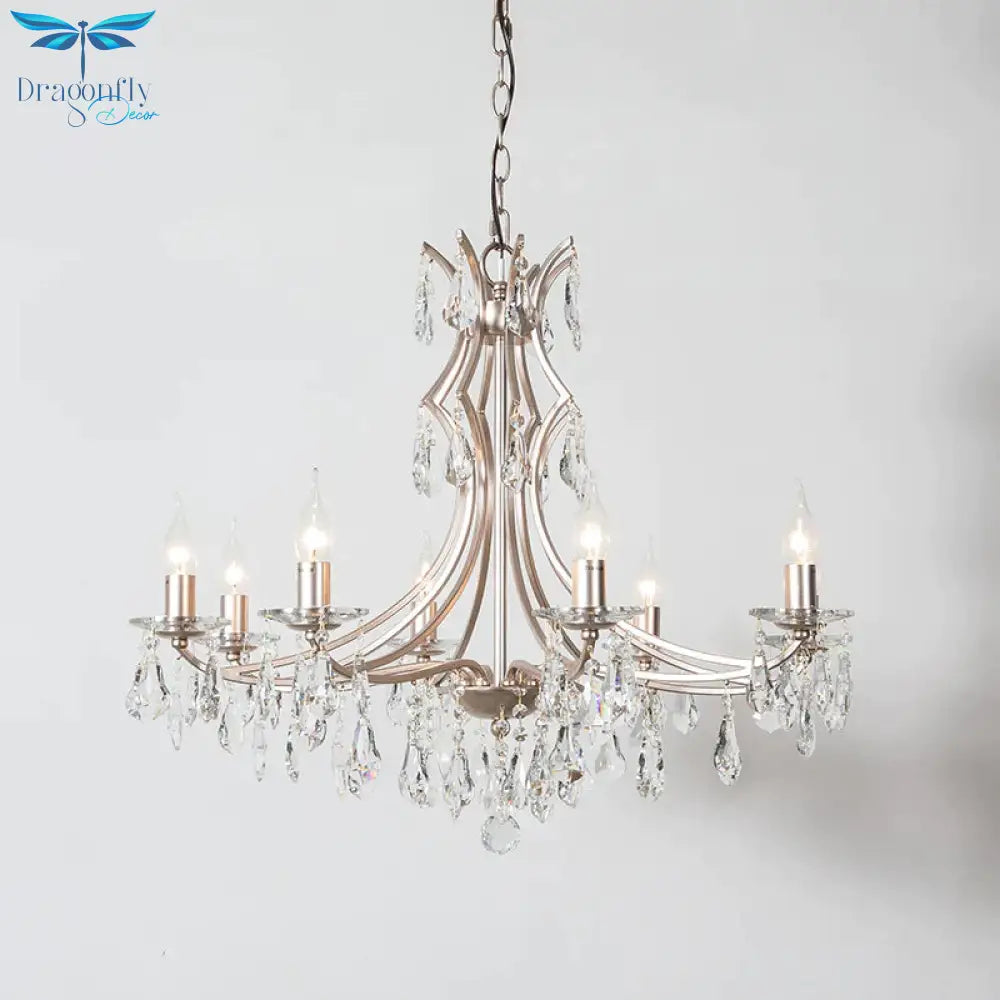 8 Lights Candlestick Chandelier Lighting Lodge Chrome Crystal Suspension Lamp for Living Room