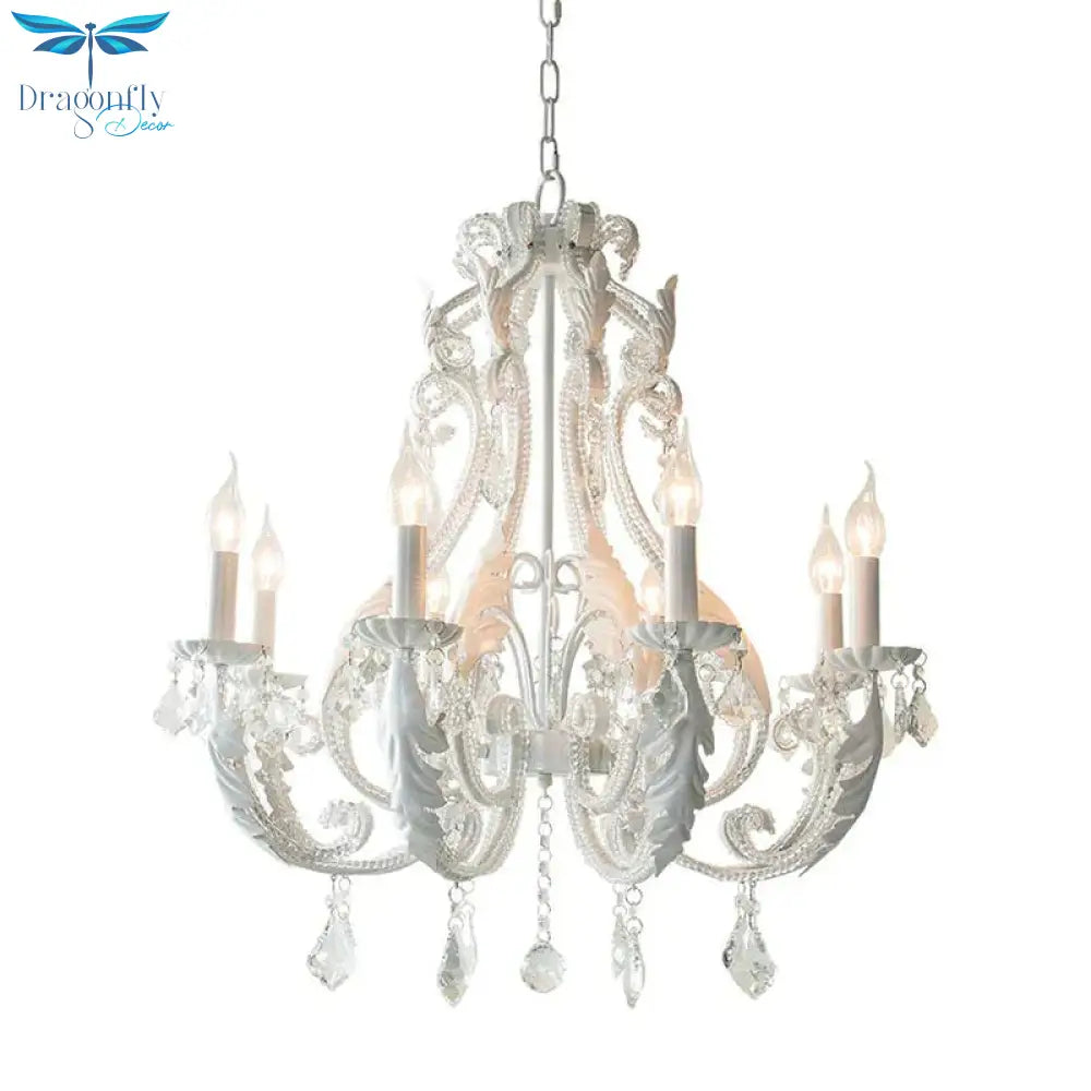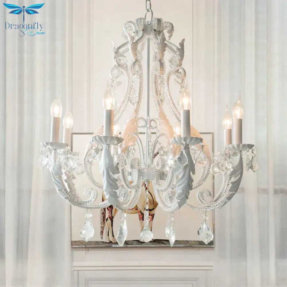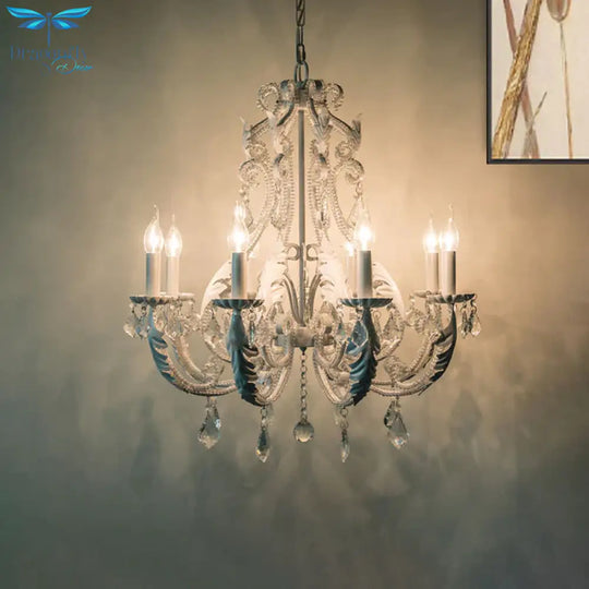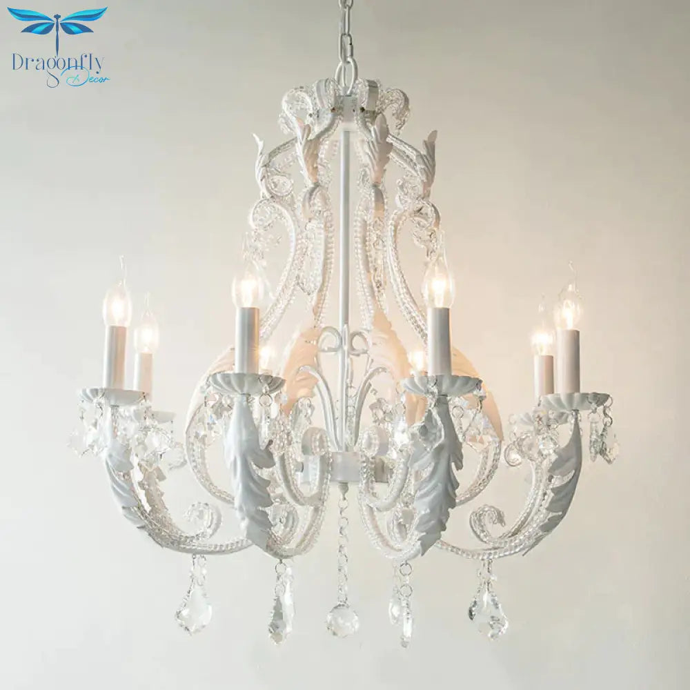 8 Lights Clear Crystal Chandelier Lighting Fixture Rustic Candle Bedroom Suspension Lamp