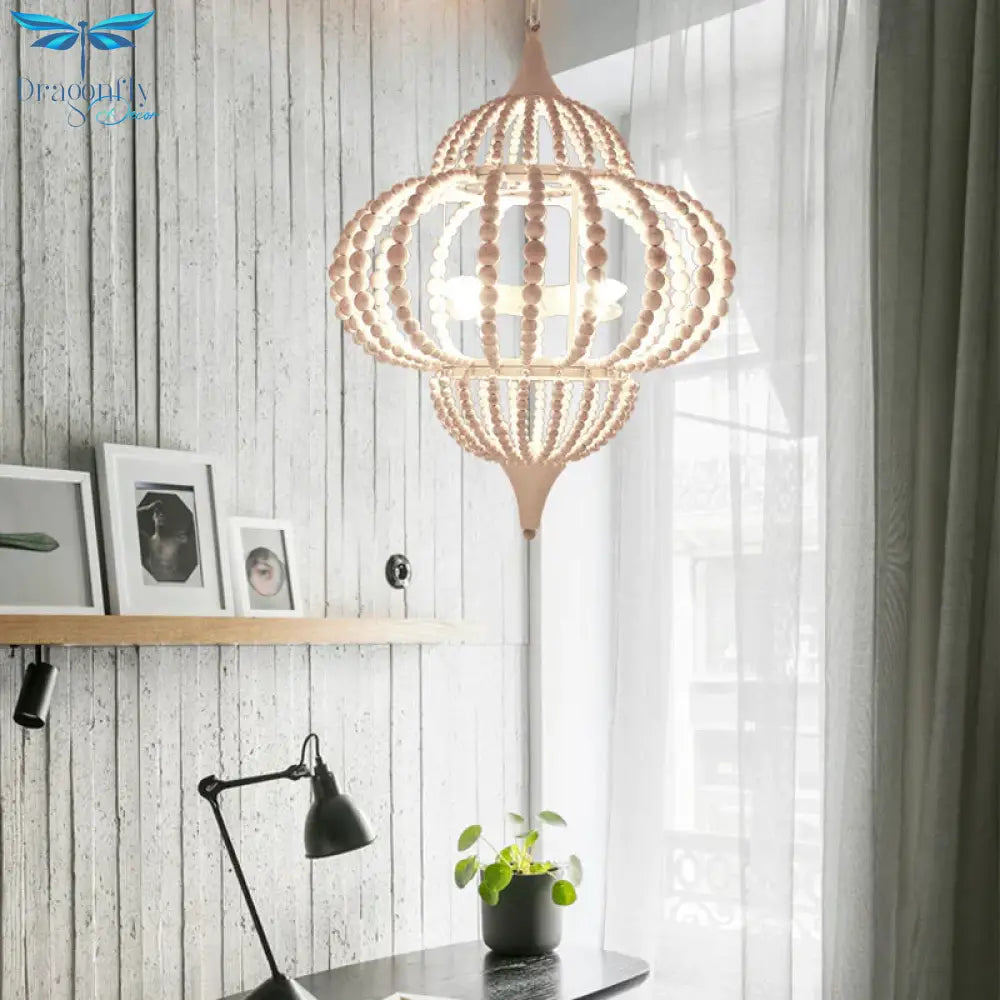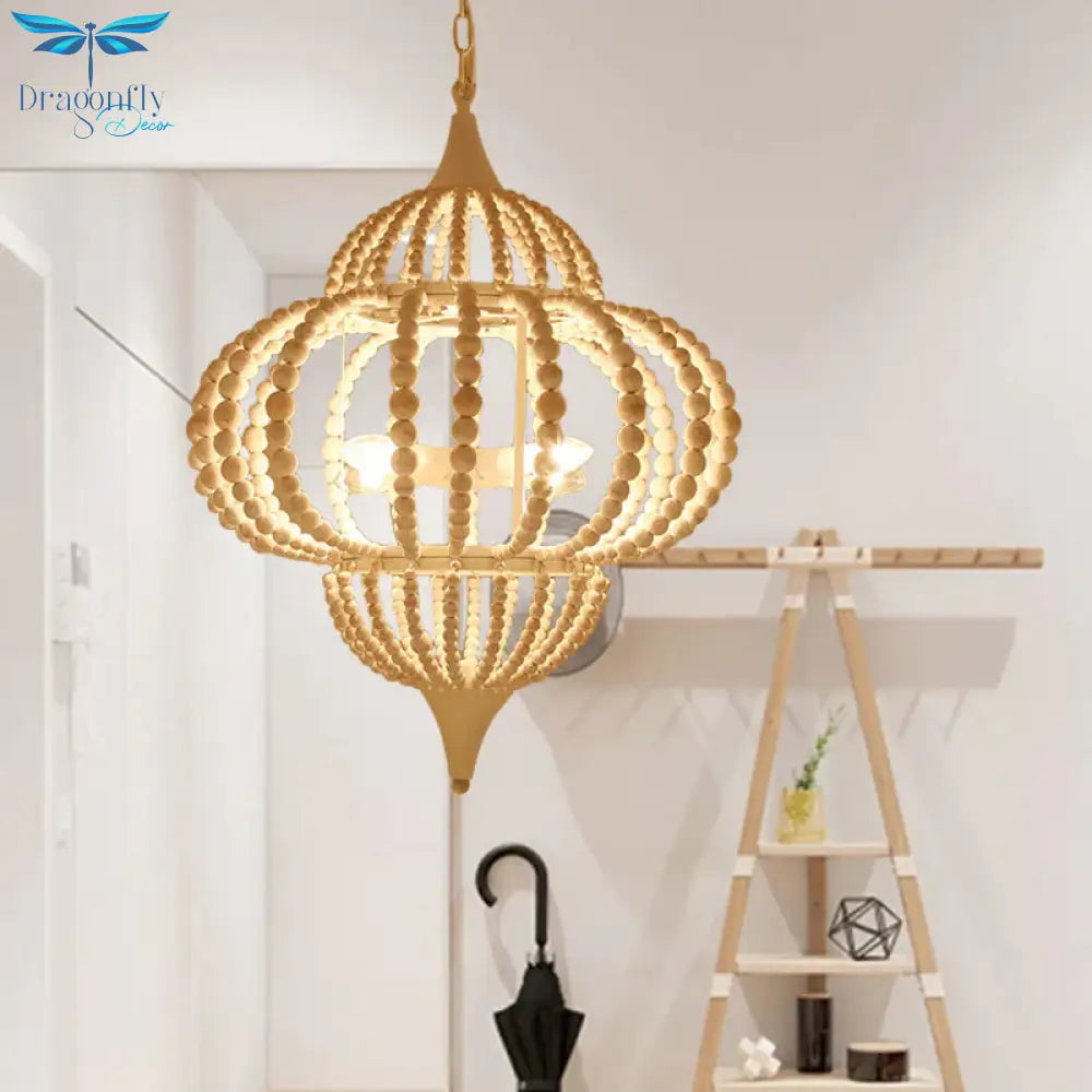 9-Light Chandelier Pendant Cottage Wooden Lantern Ceiling Light Fixtur