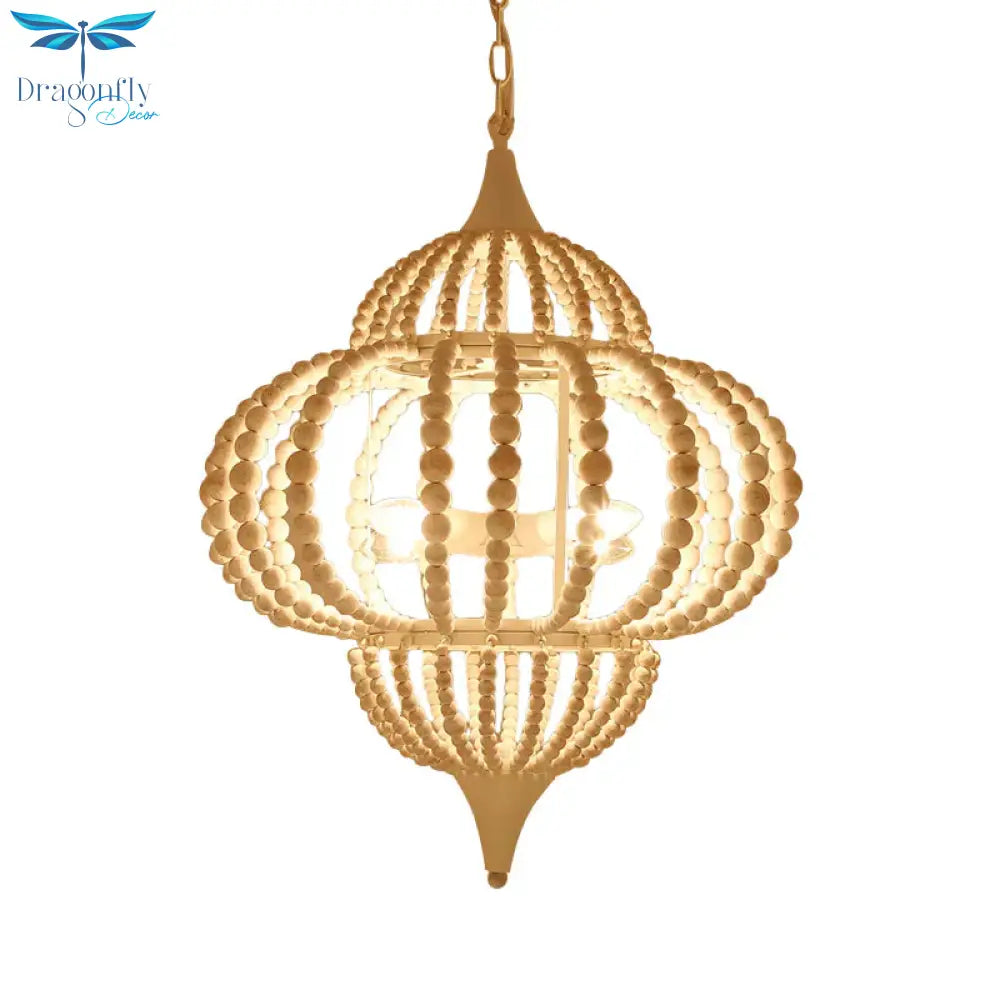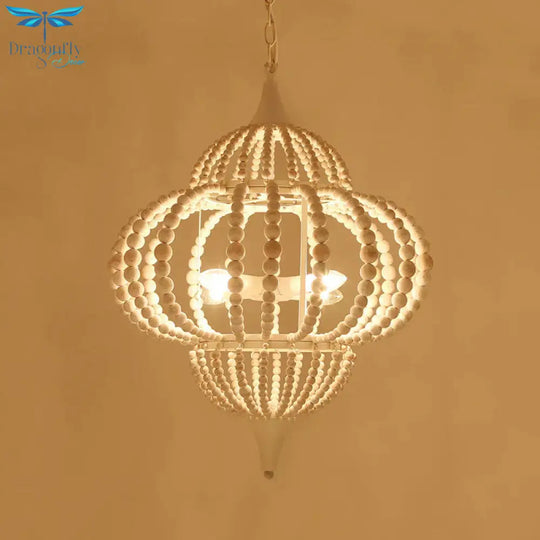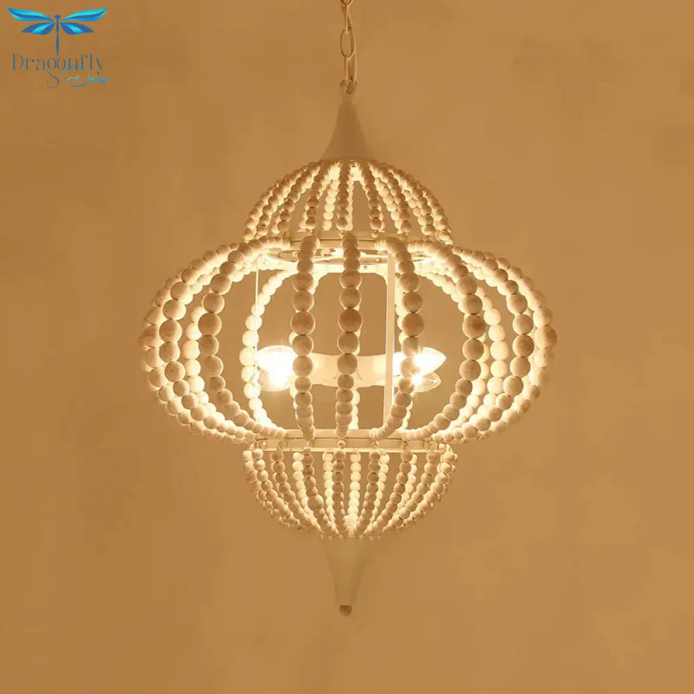 9-Light Chandelier Pendant Cottage Wooden Lantern Ceiling Light Fixture in White