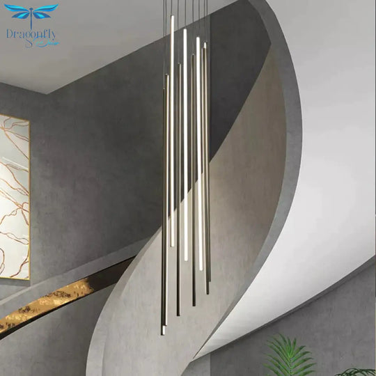 Introducing the Adley - Black Stair Long LED Chandelier, a captivating masterpiece that will transform your home into a haven of elegance and sophistication. This stunning chandelier is not just a lighting fixture, but a true work of art that will become the focal point of your home's architecture.