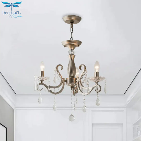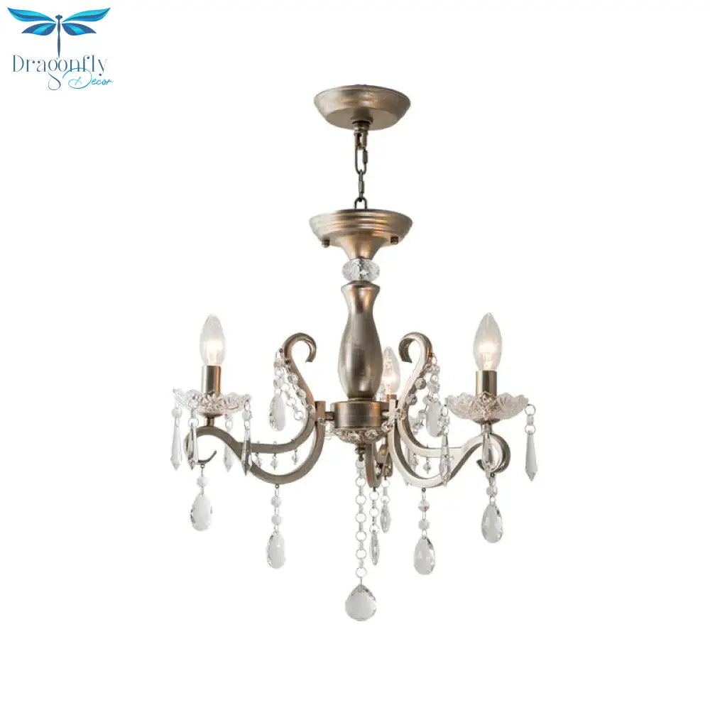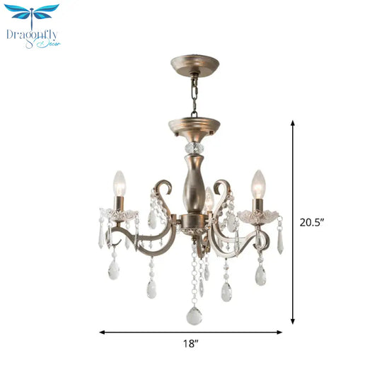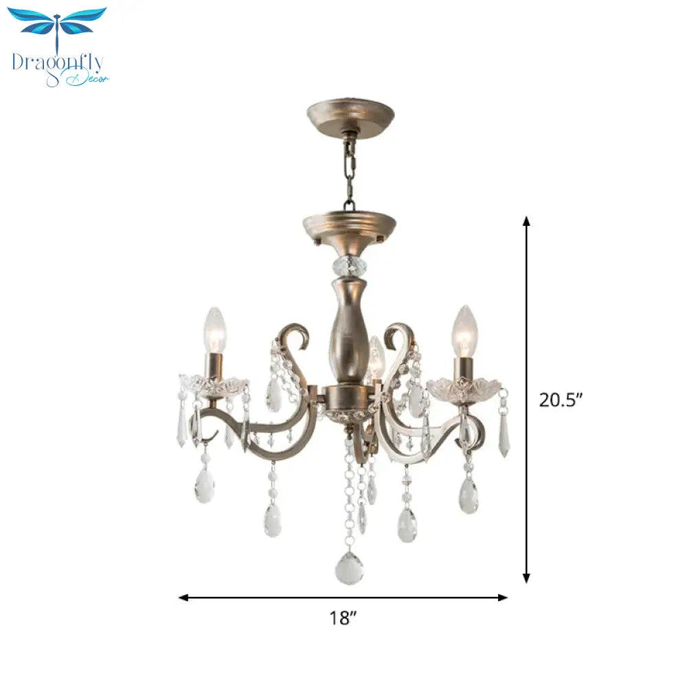 Aged Silver Crystal Suspension Light Candelabra 3-Bulb Traditional Hanging Chandelier