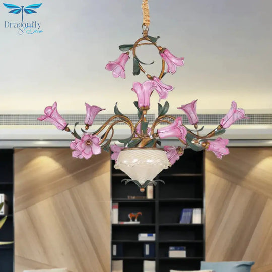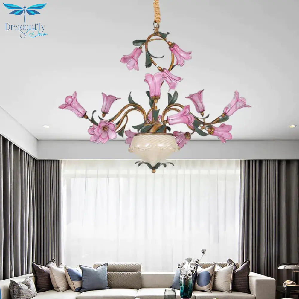 American Garden Lily 15 Heads Metal LED Pendant Ceiling Light in Brass for Living Room